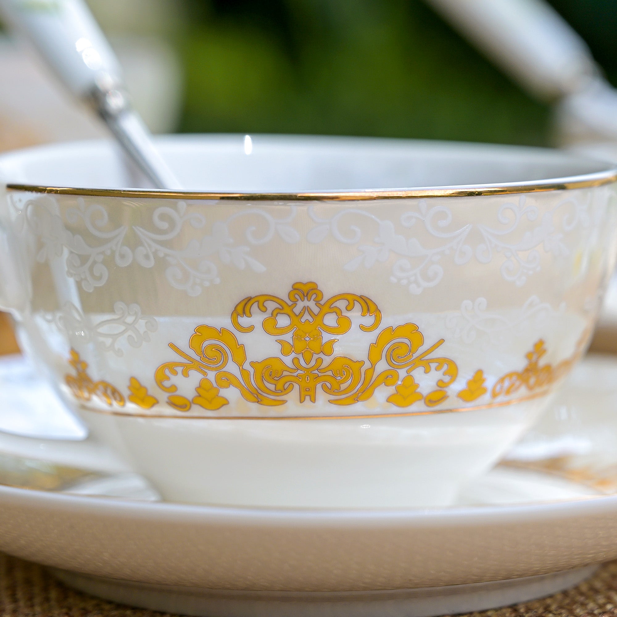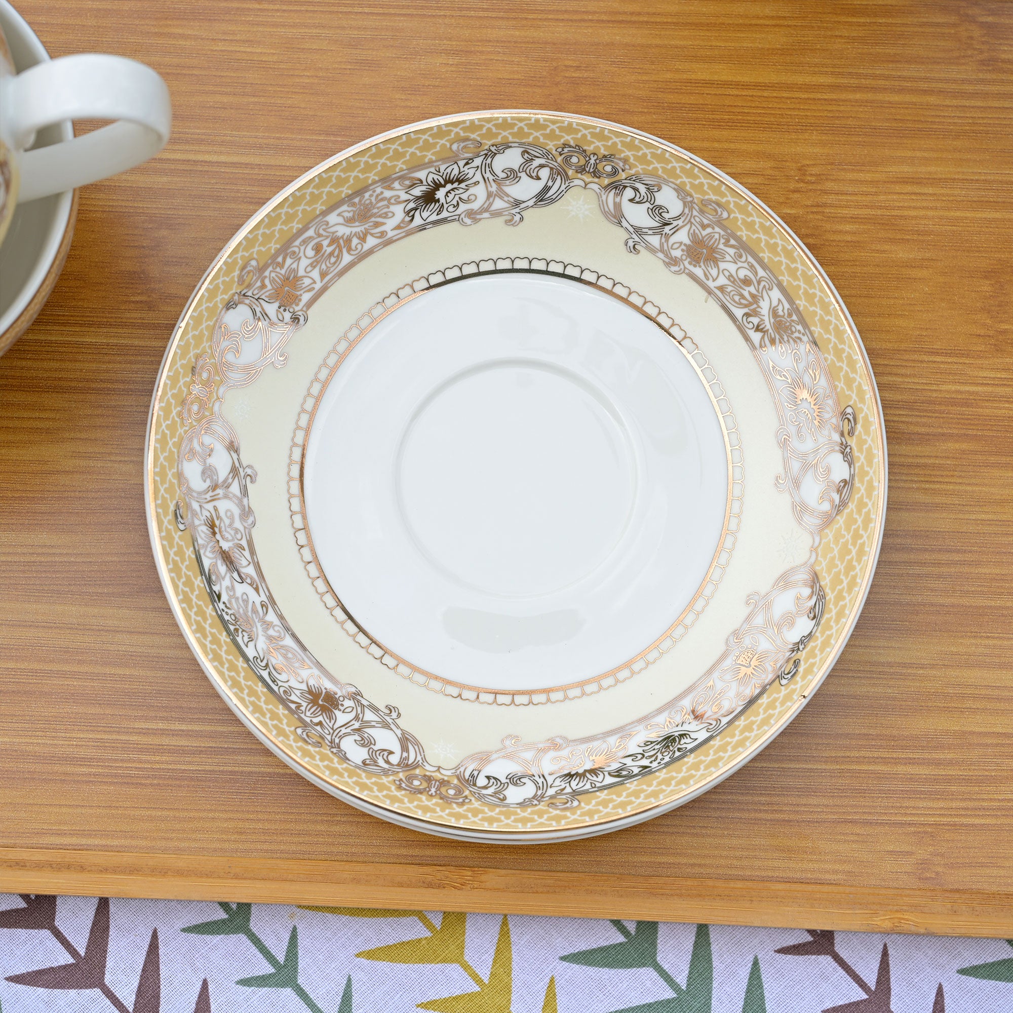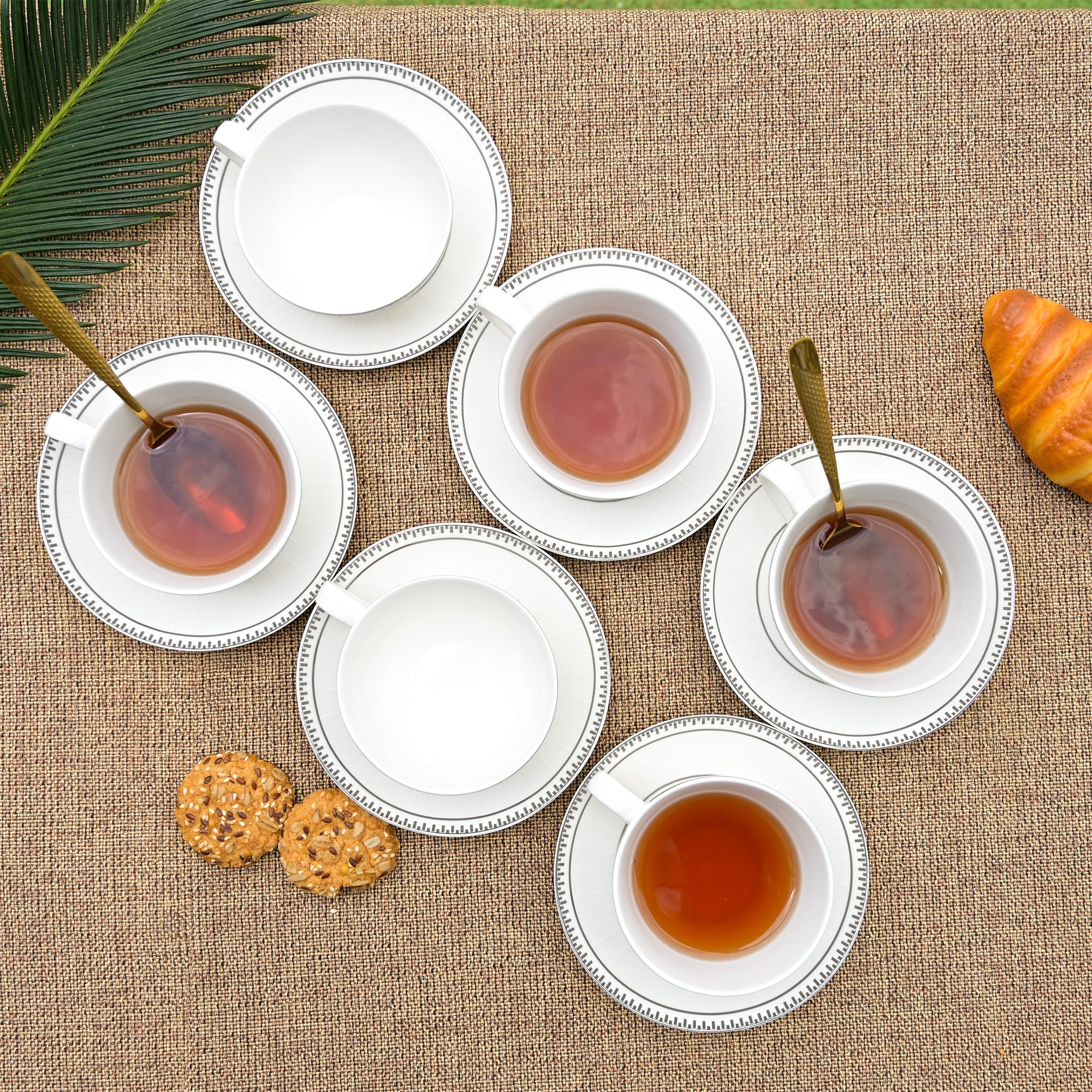 (3)The Orbit: White-Golden New Bone China Tea Cup Set (Set of 6)