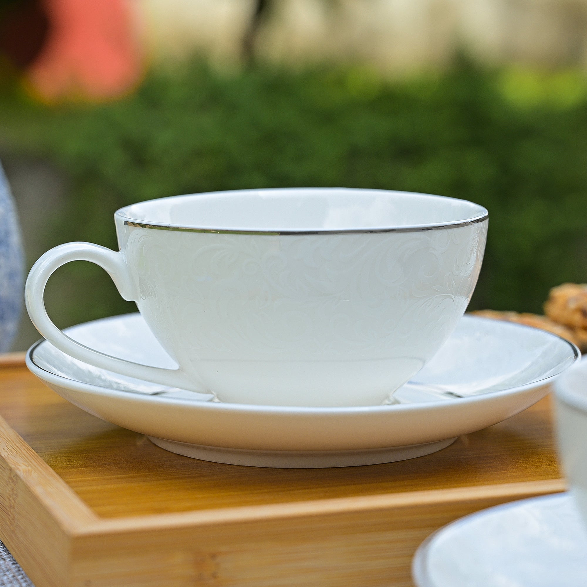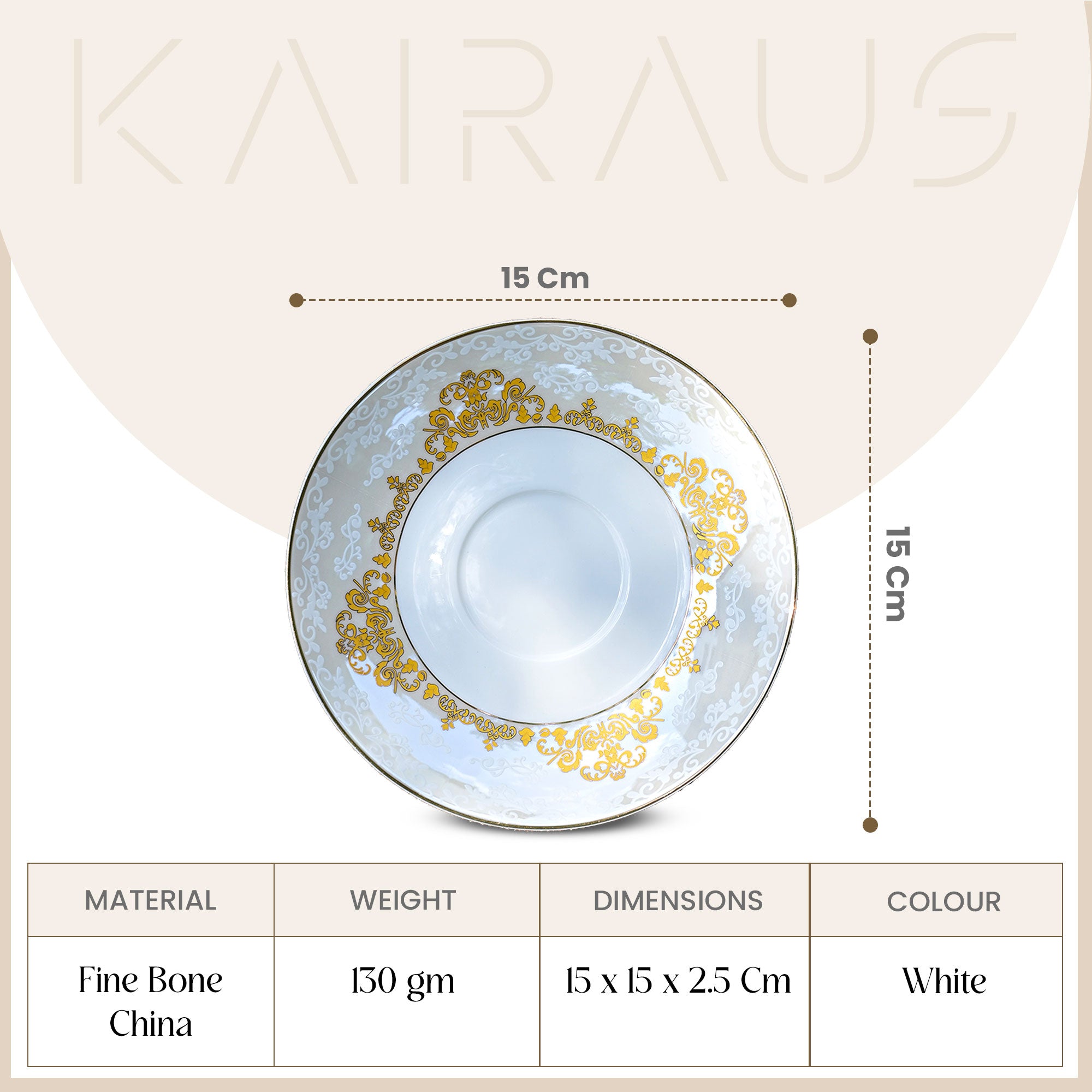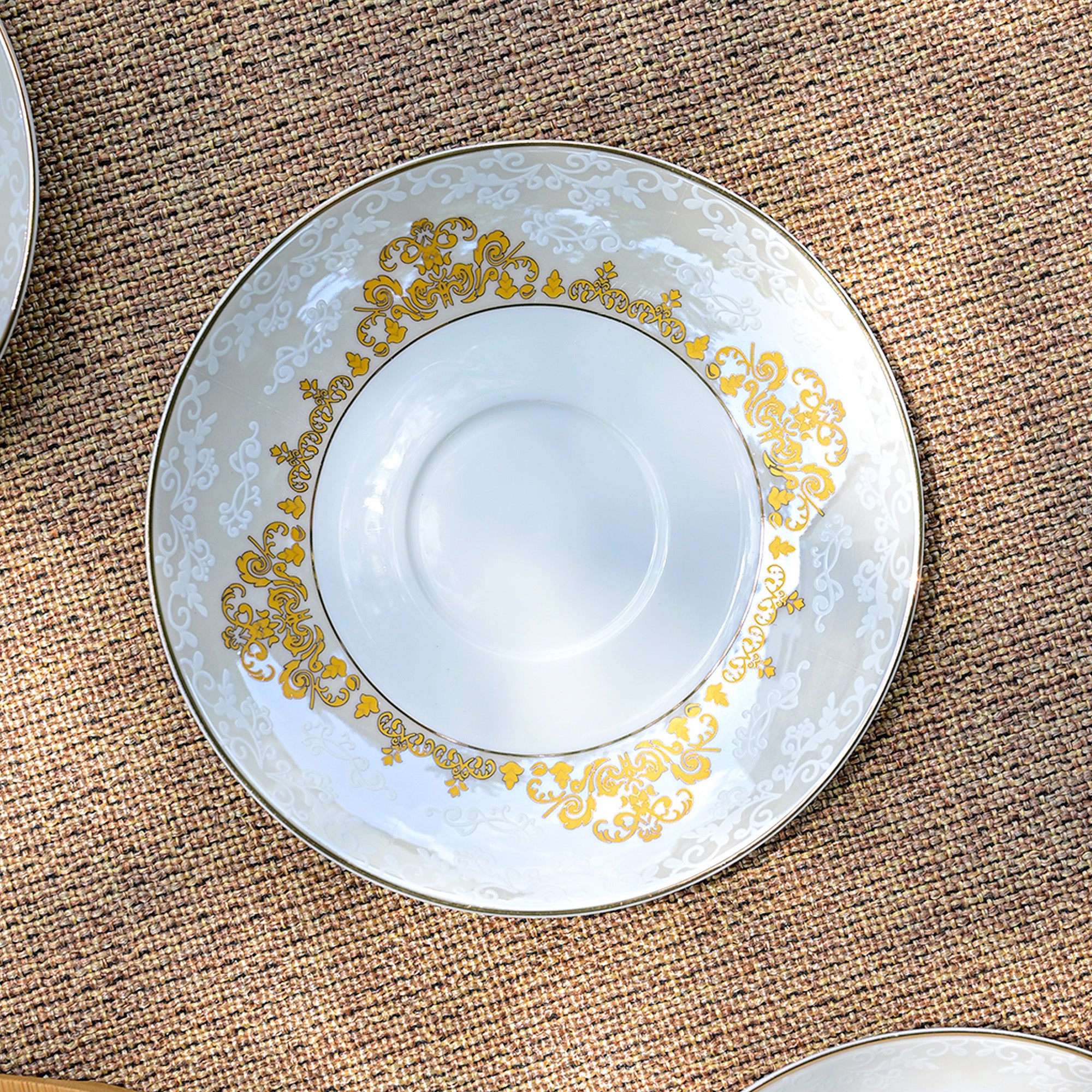 (3)The Orbit: White-Golden New Bone China Tea Cup Set (Set of 6)
