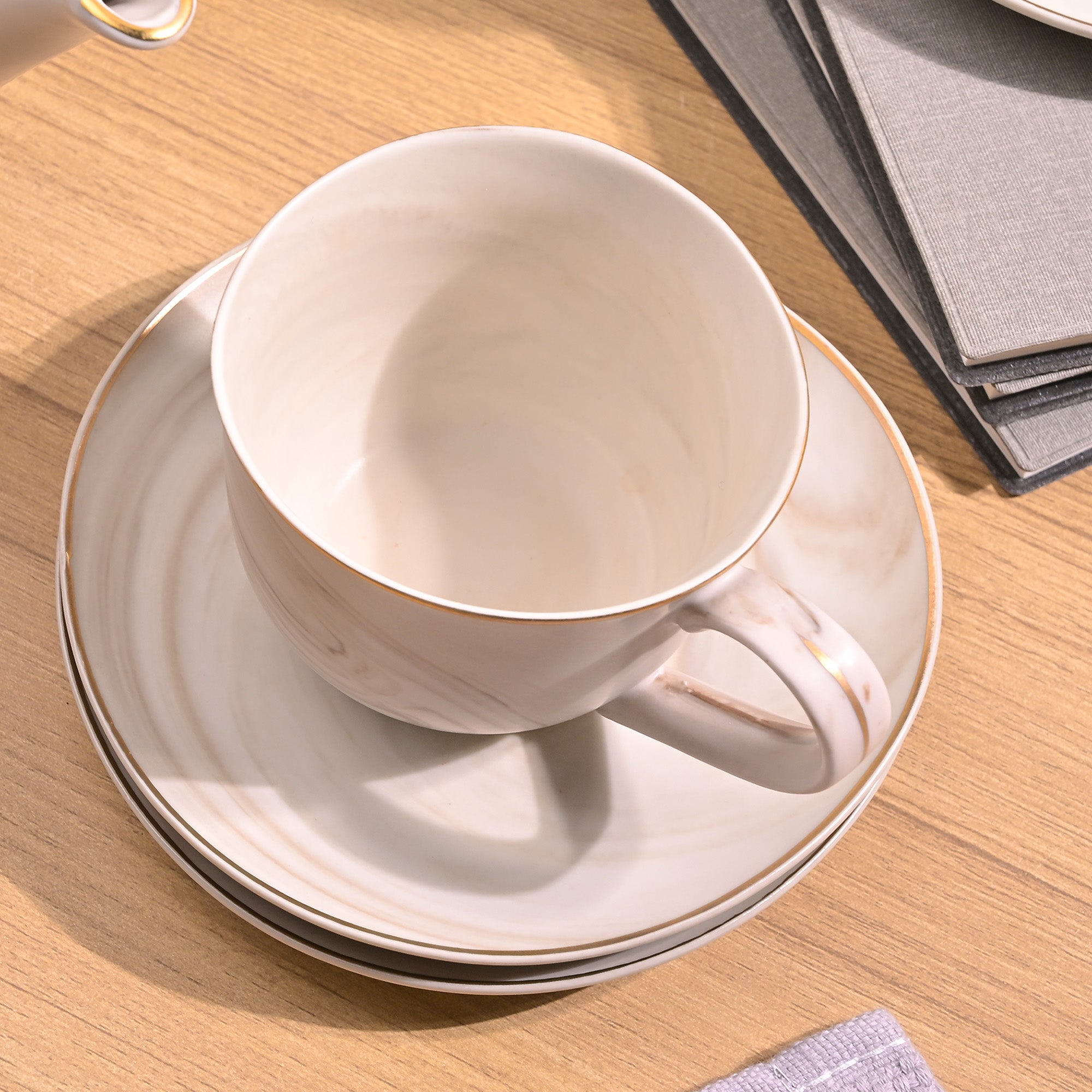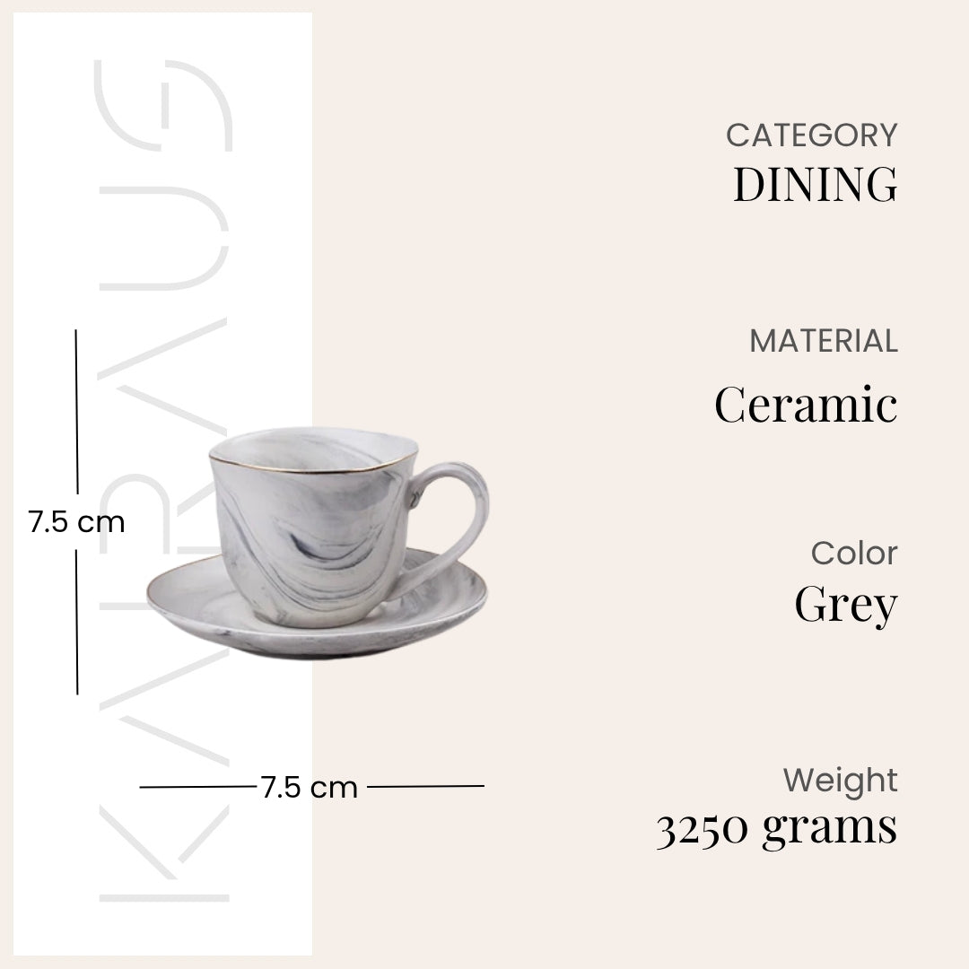 (7)Marble Elegance Coffee Cup and Saucer (Set of 6)