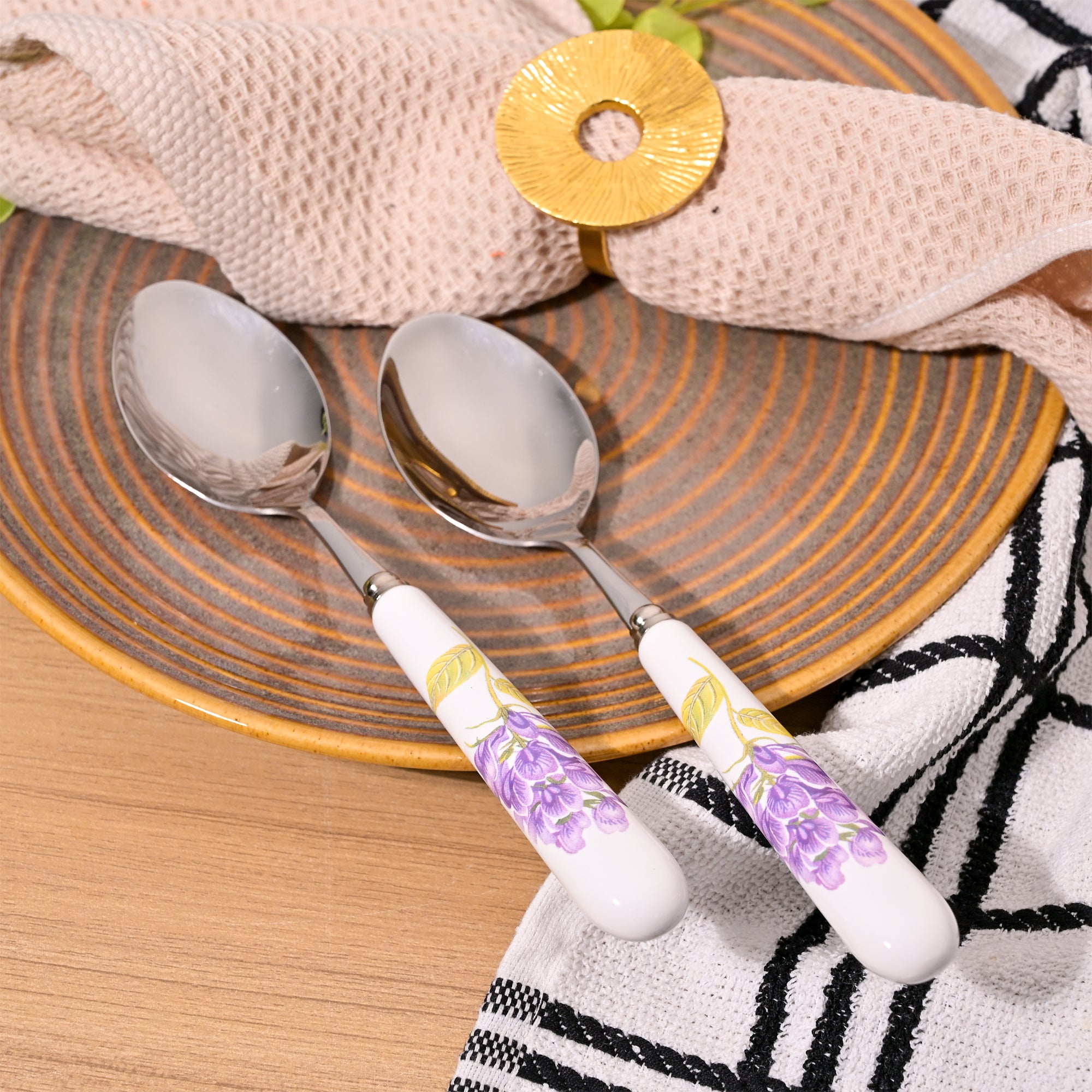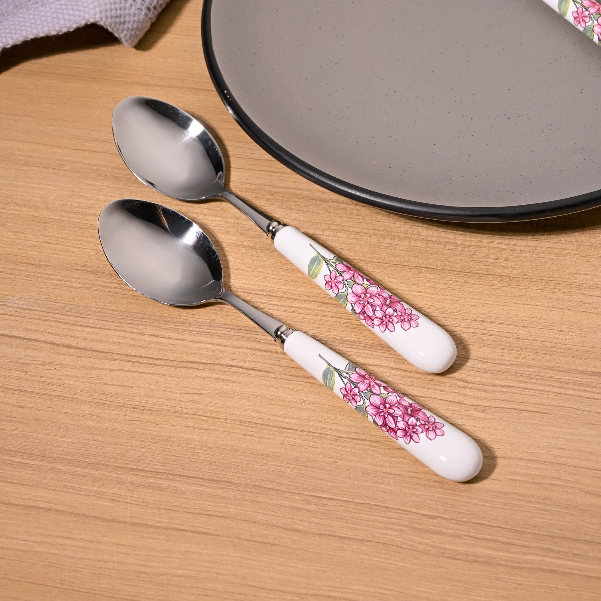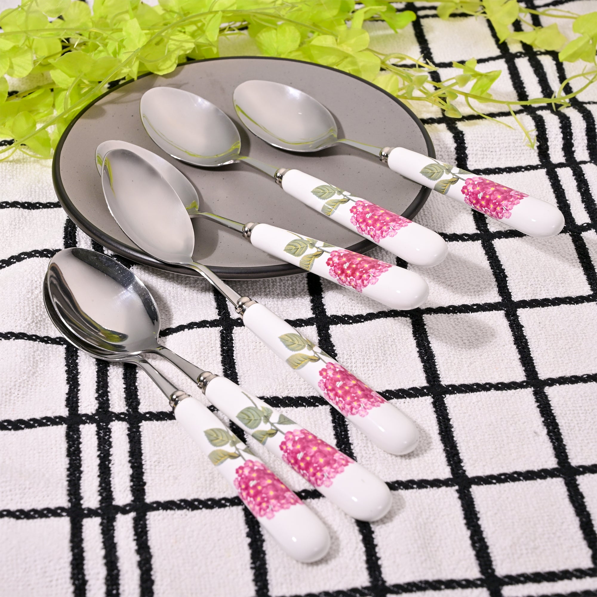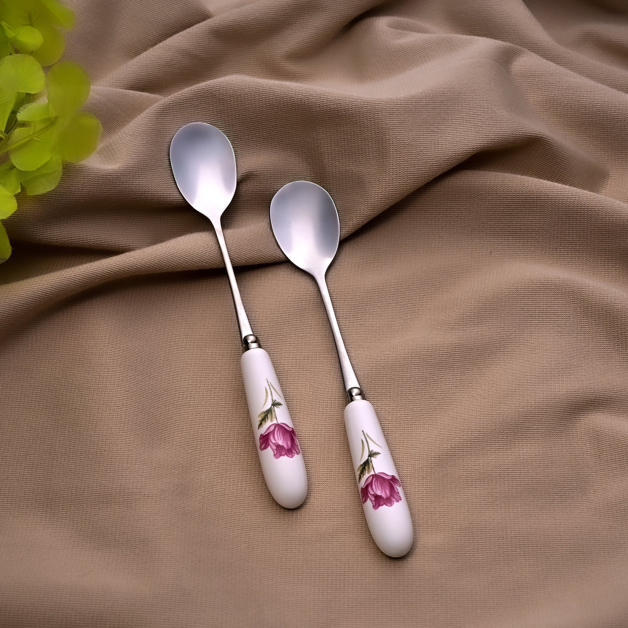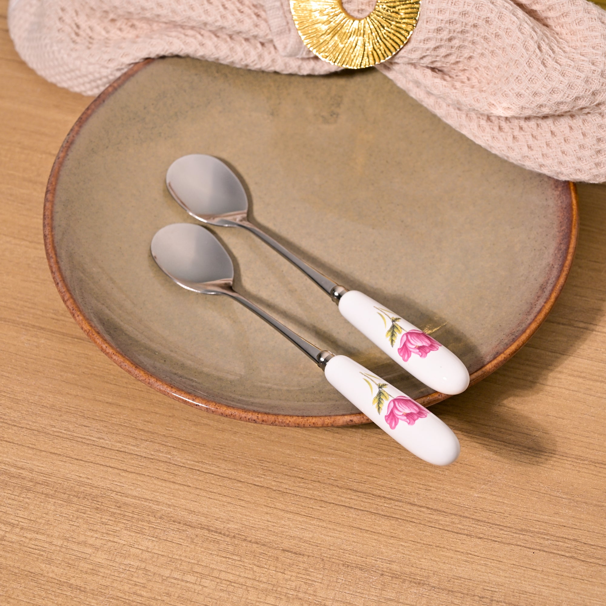 (6)Elegant Ruffled Pink Ceramic-Handled Spoons (Set of 6)