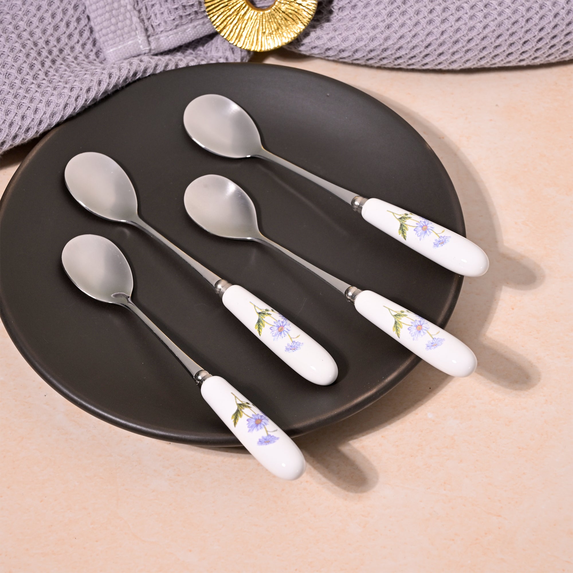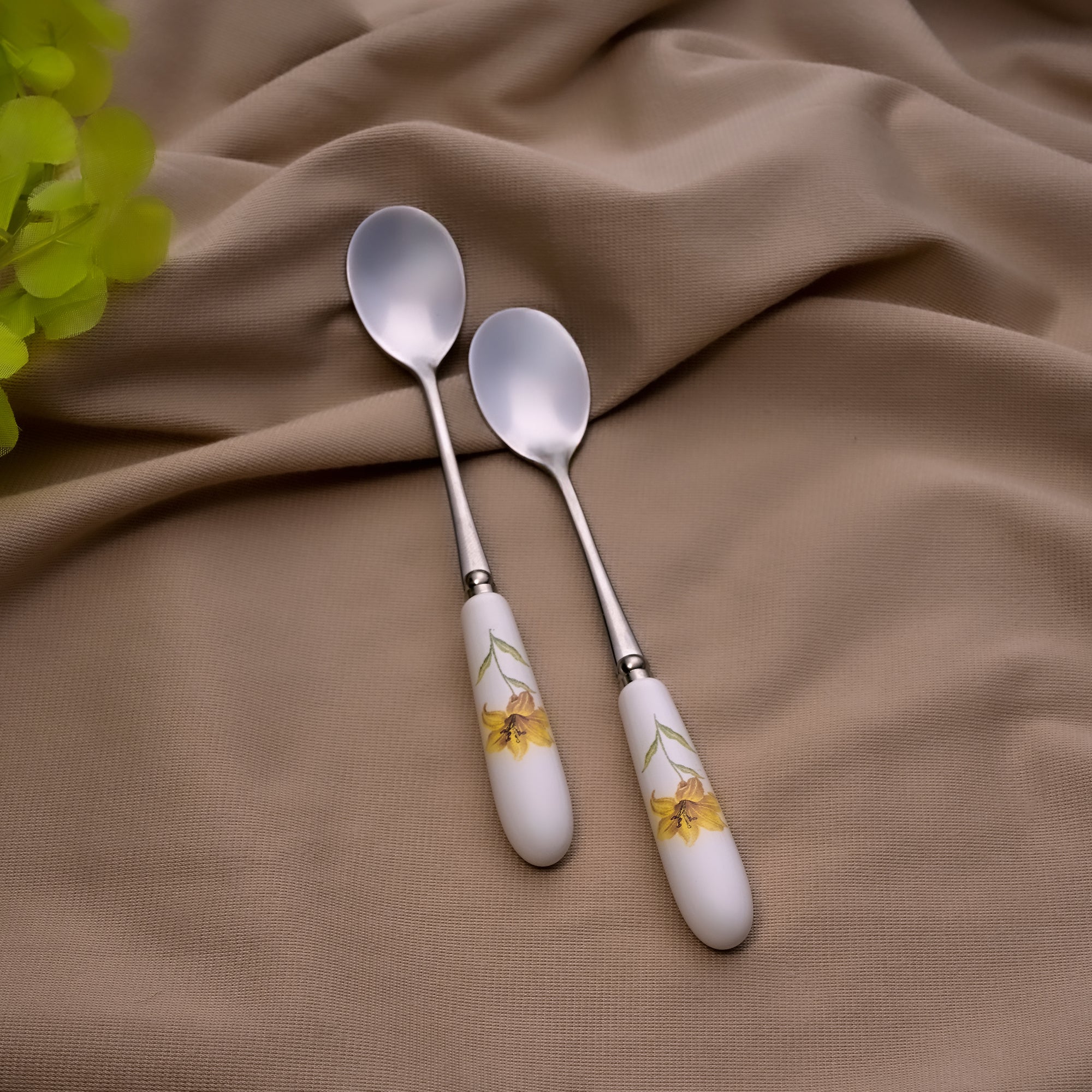 (5)Daffodil Print Stainless Steel Dessert Spoons (Set of 2)