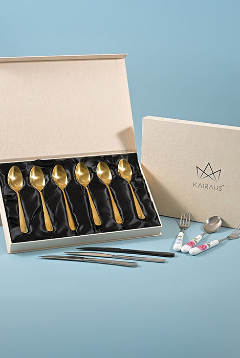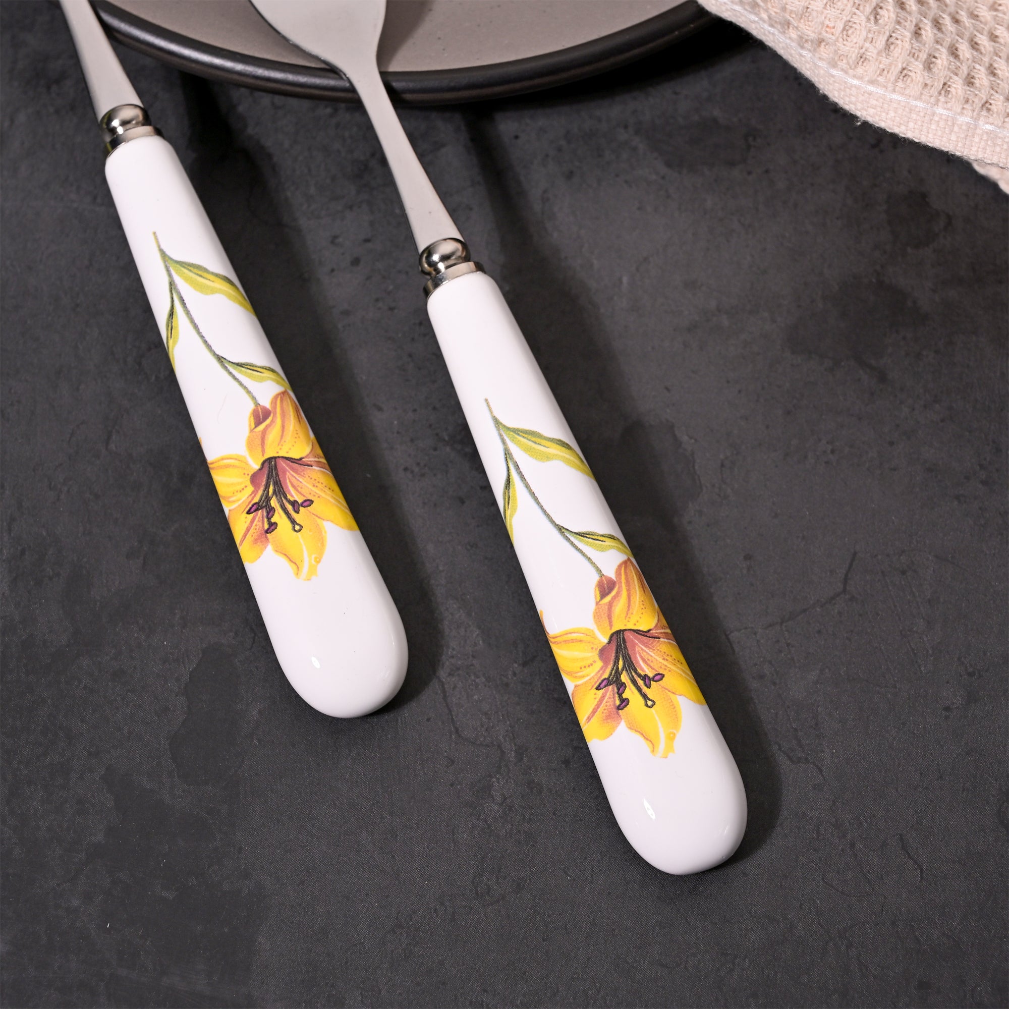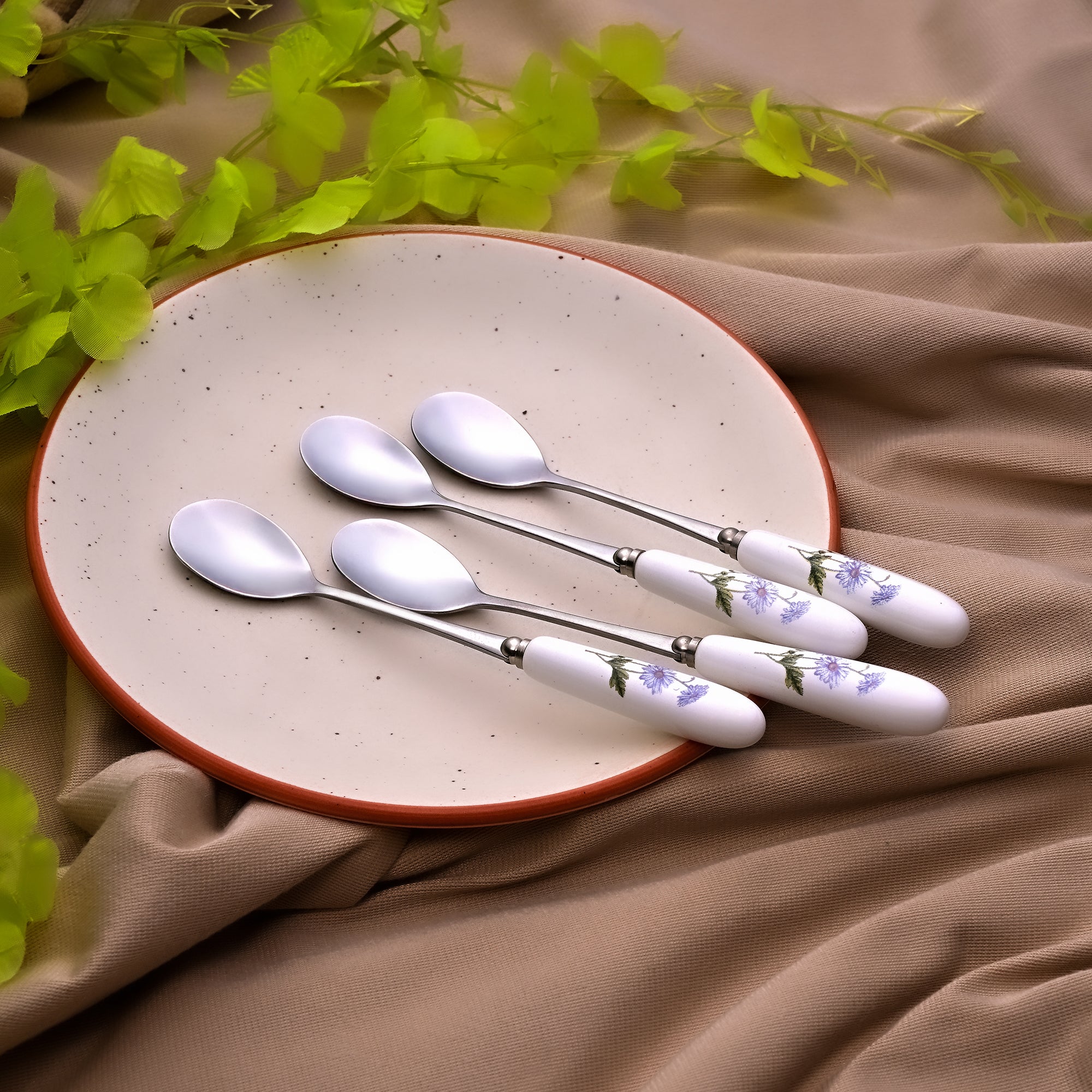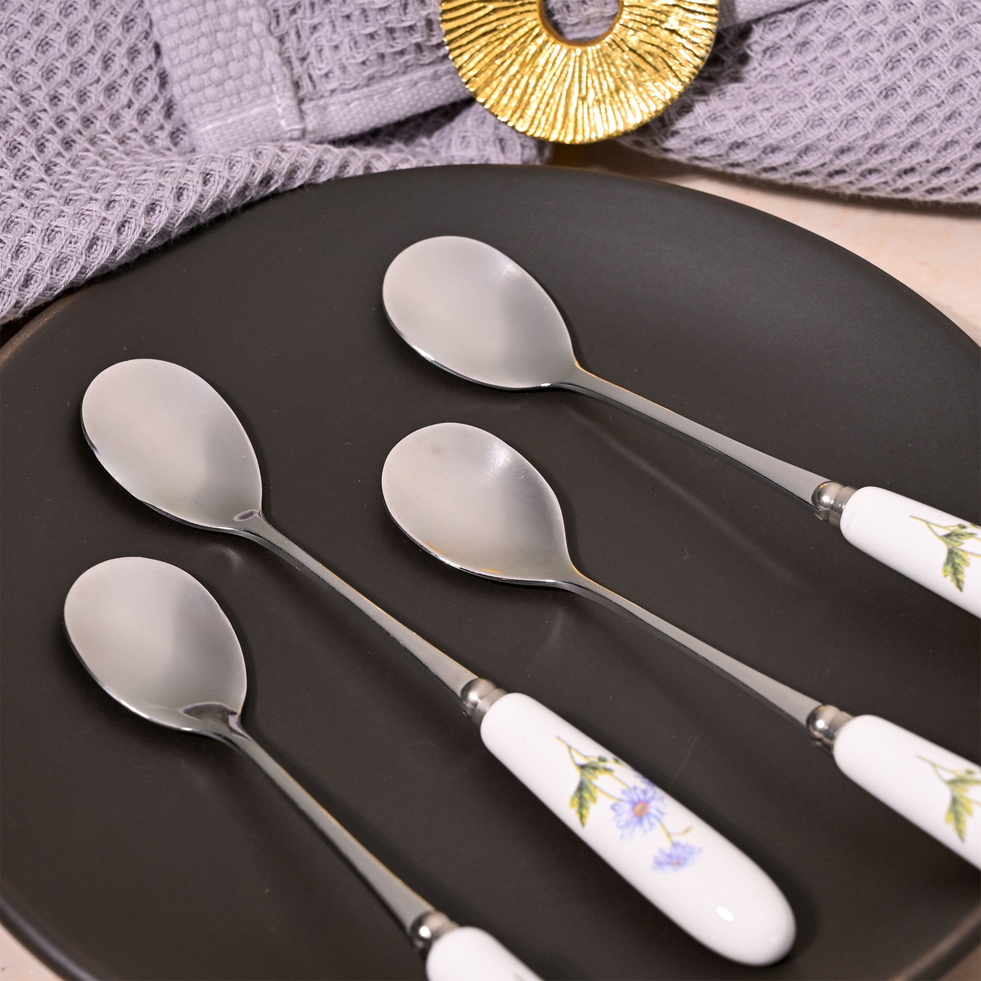 (6)Daffodil Print Stainless Steel Dessert Spoons (Set of 4)