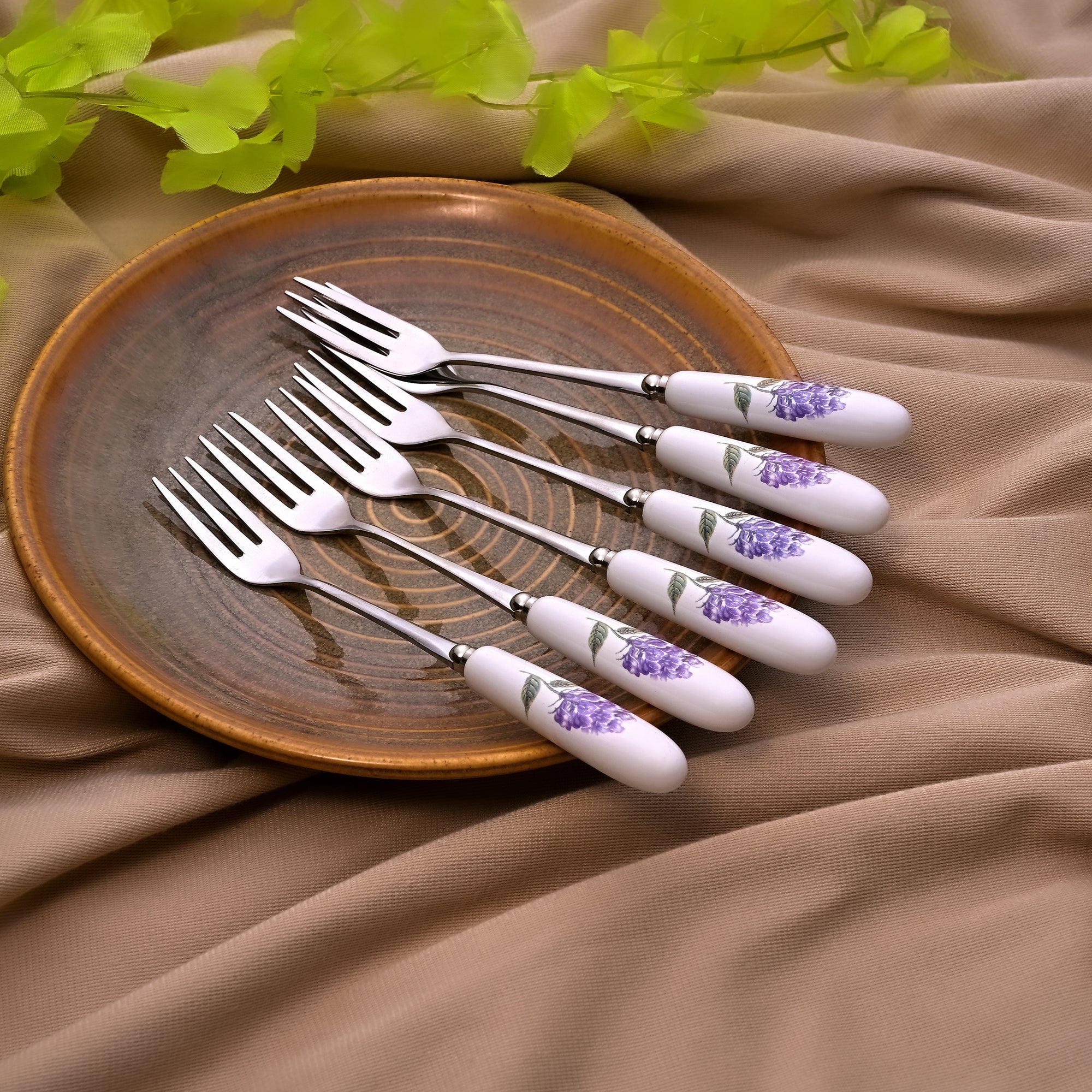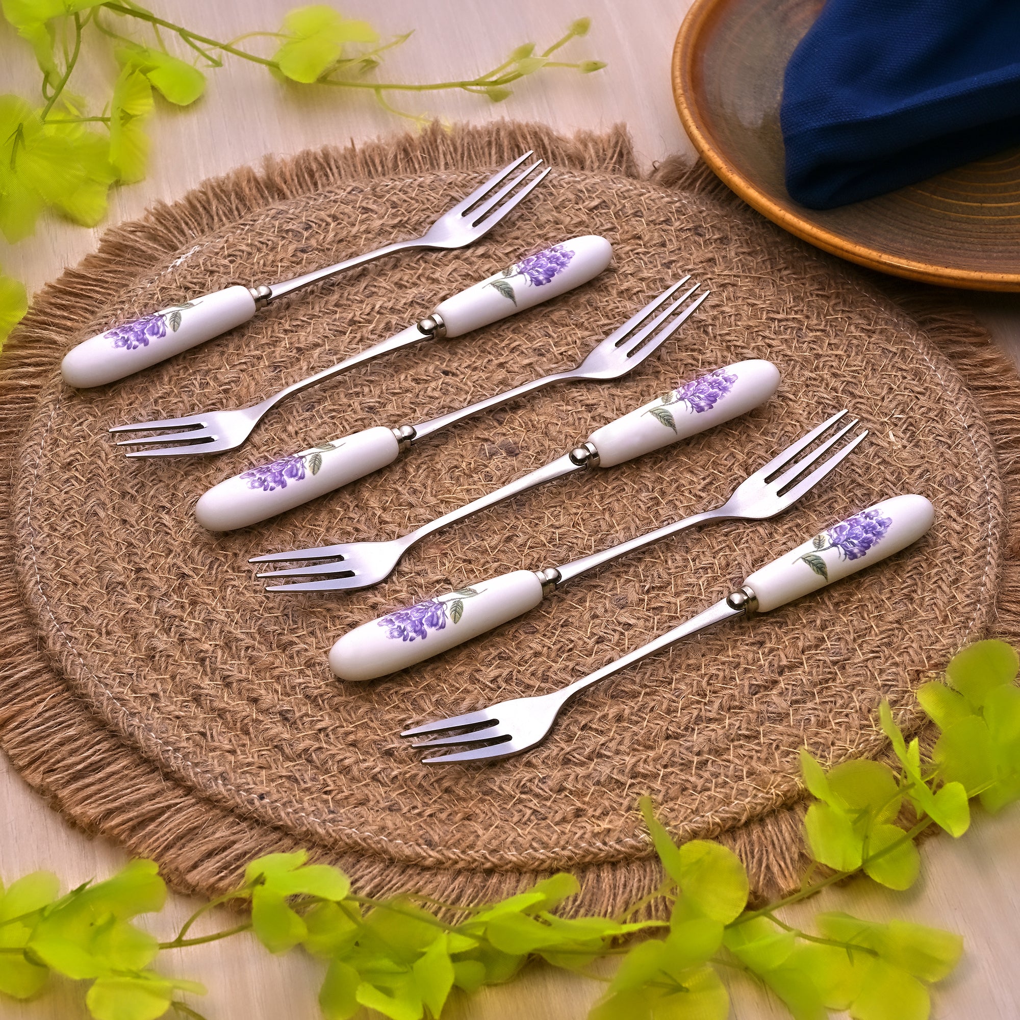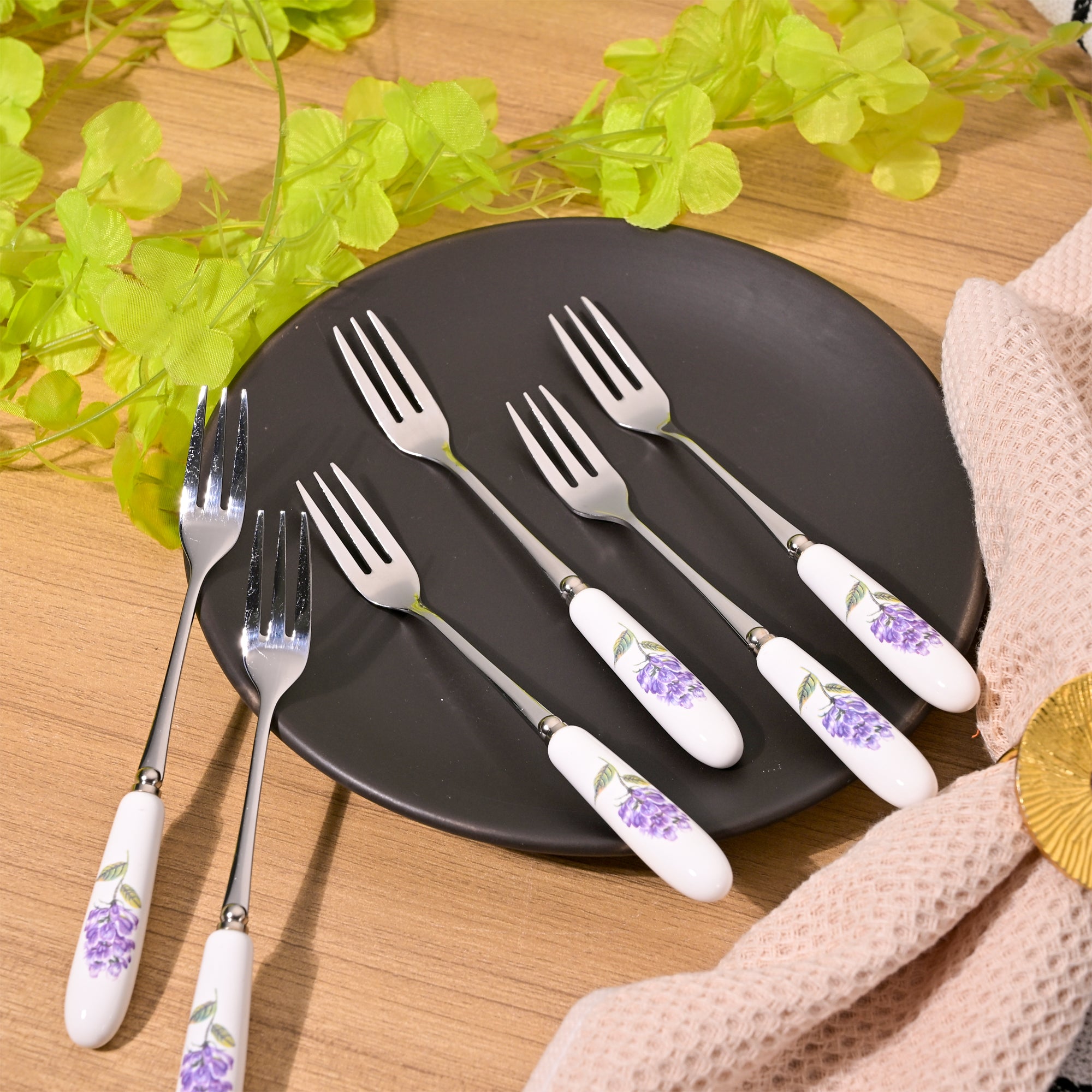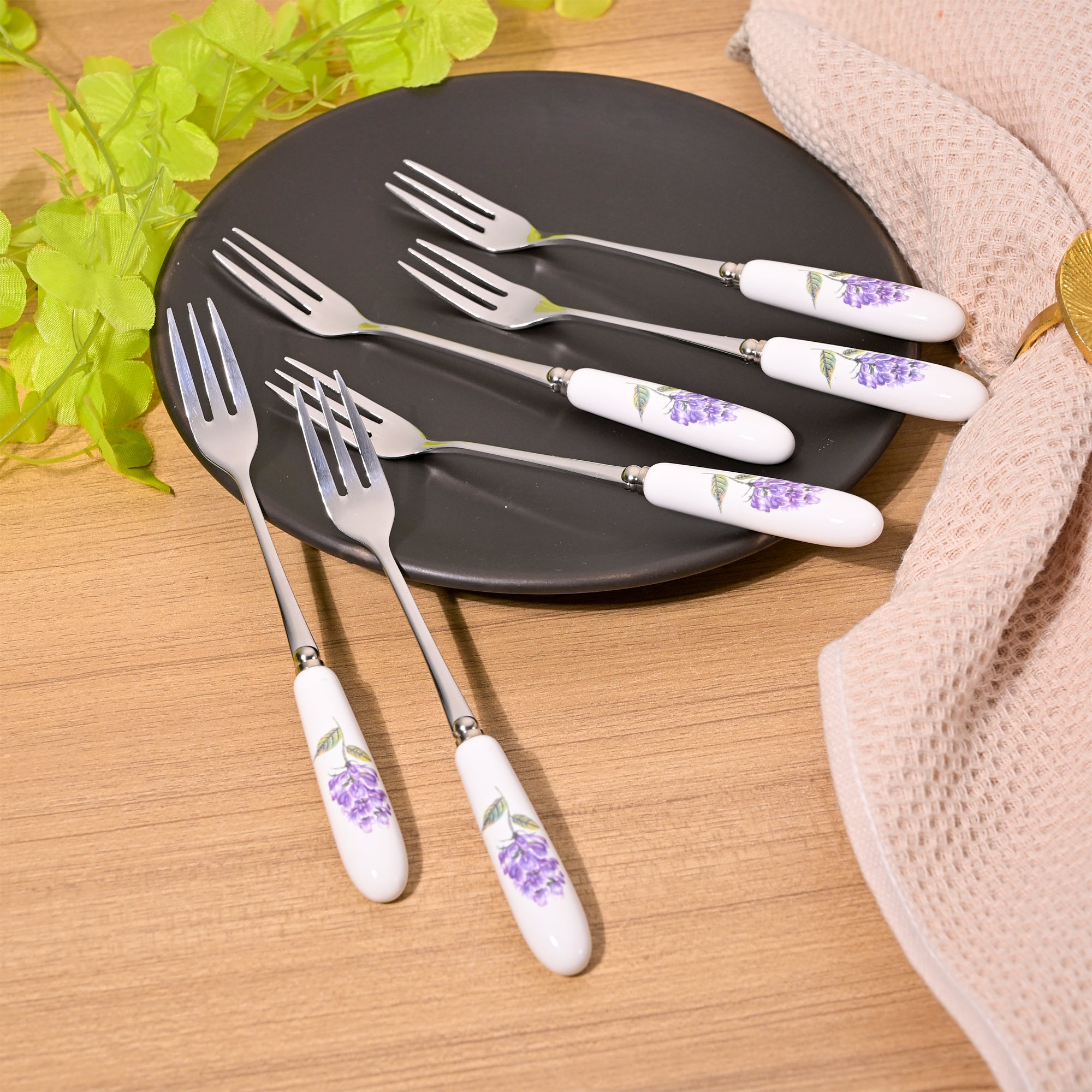 Timeless Serene Lavender Print Dessert Forks (Set of 6)