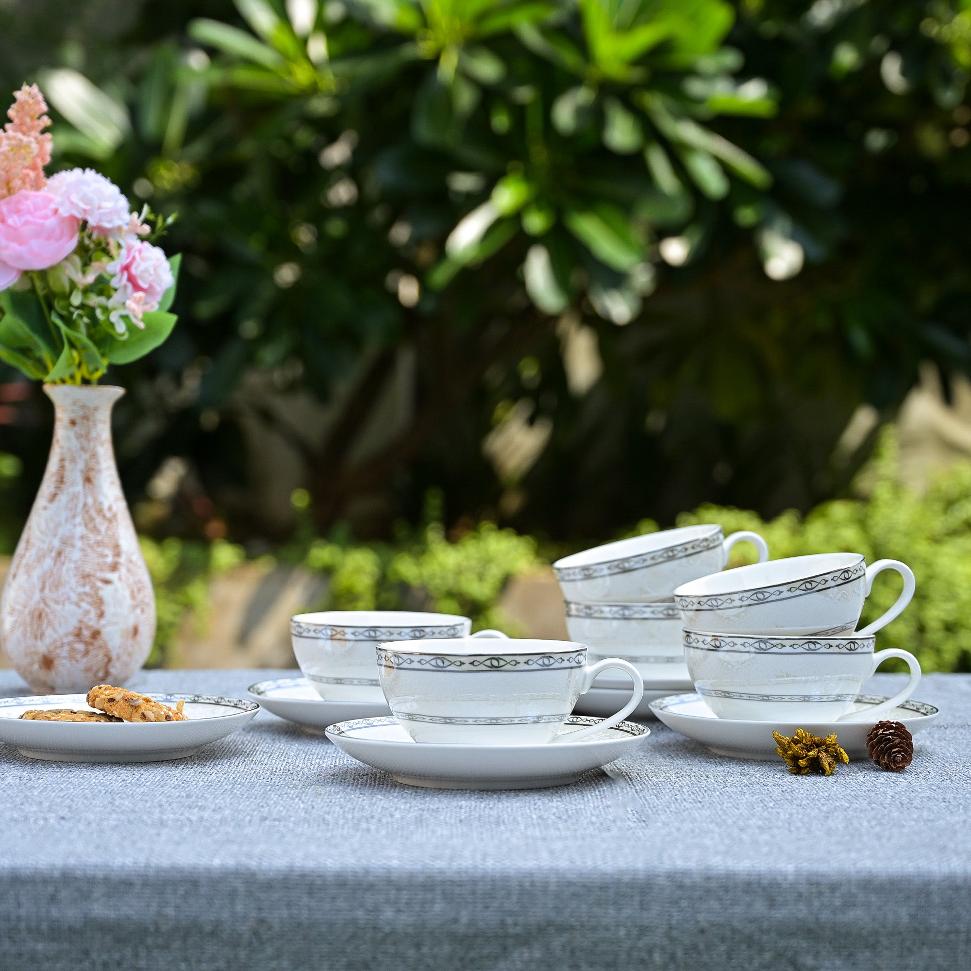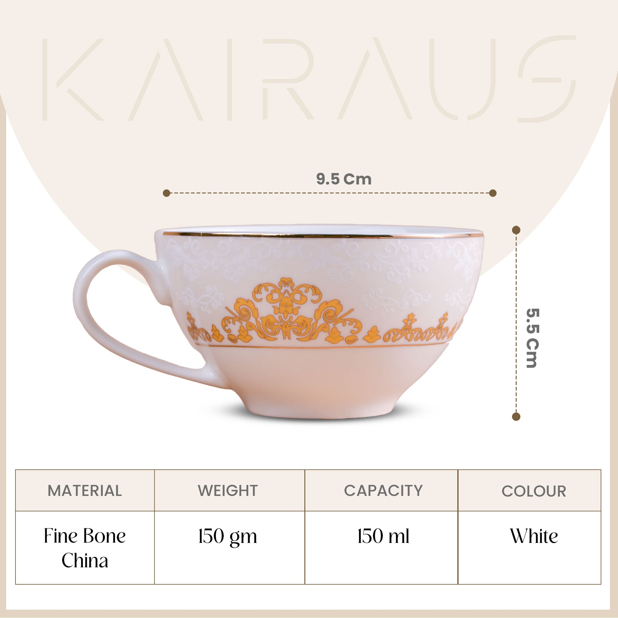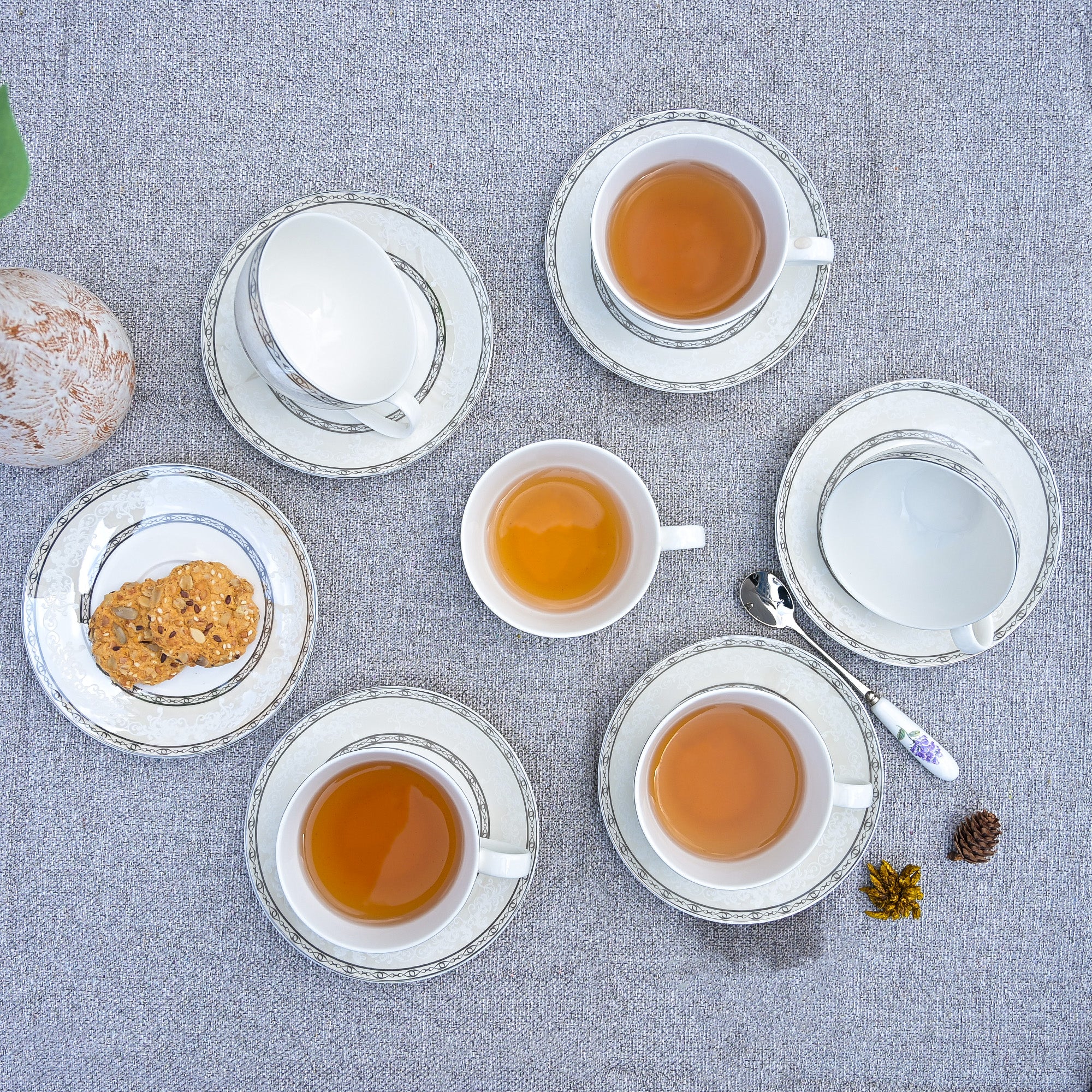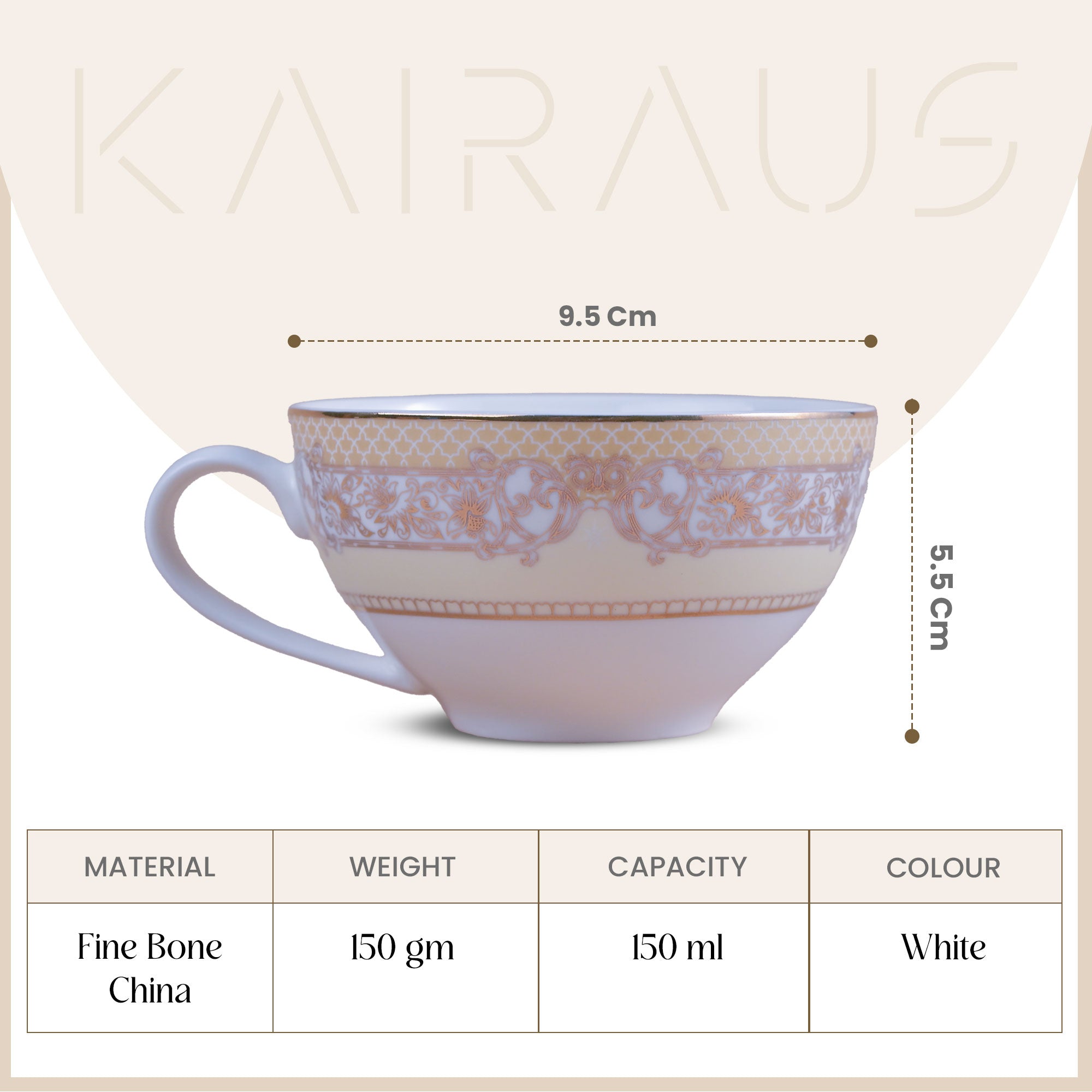 (5)Auric: Ethereal Bone China Tea Cup Set (Set of 6)