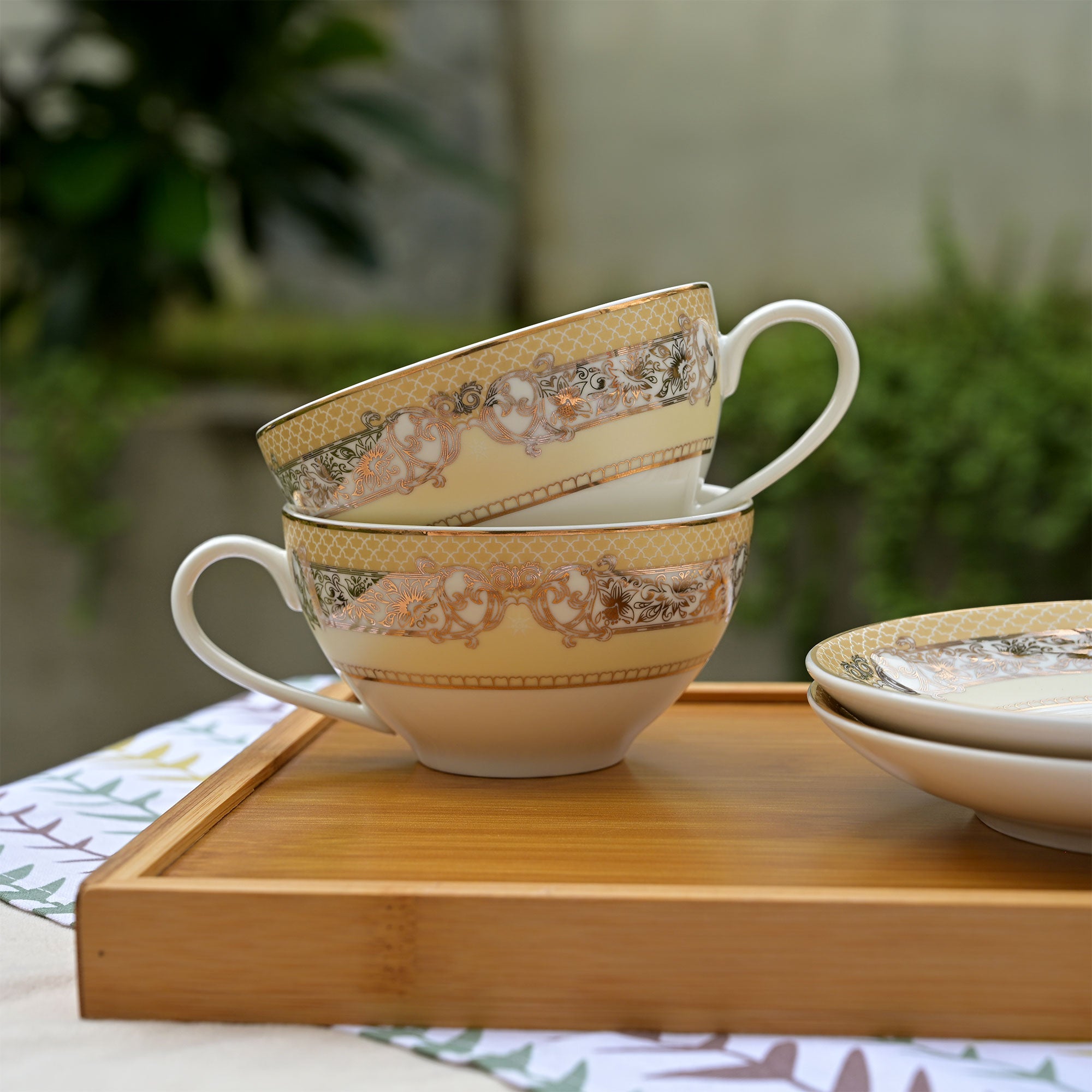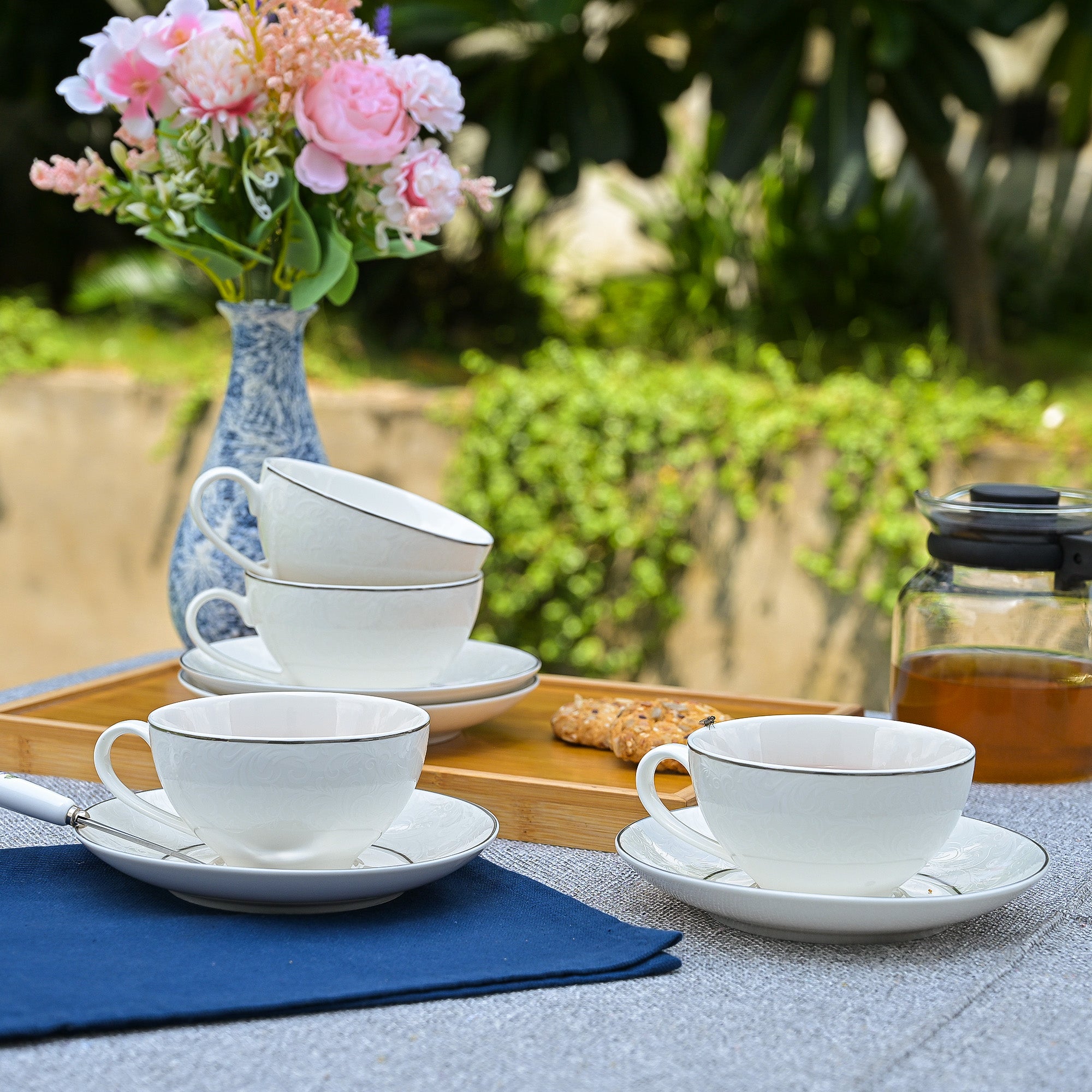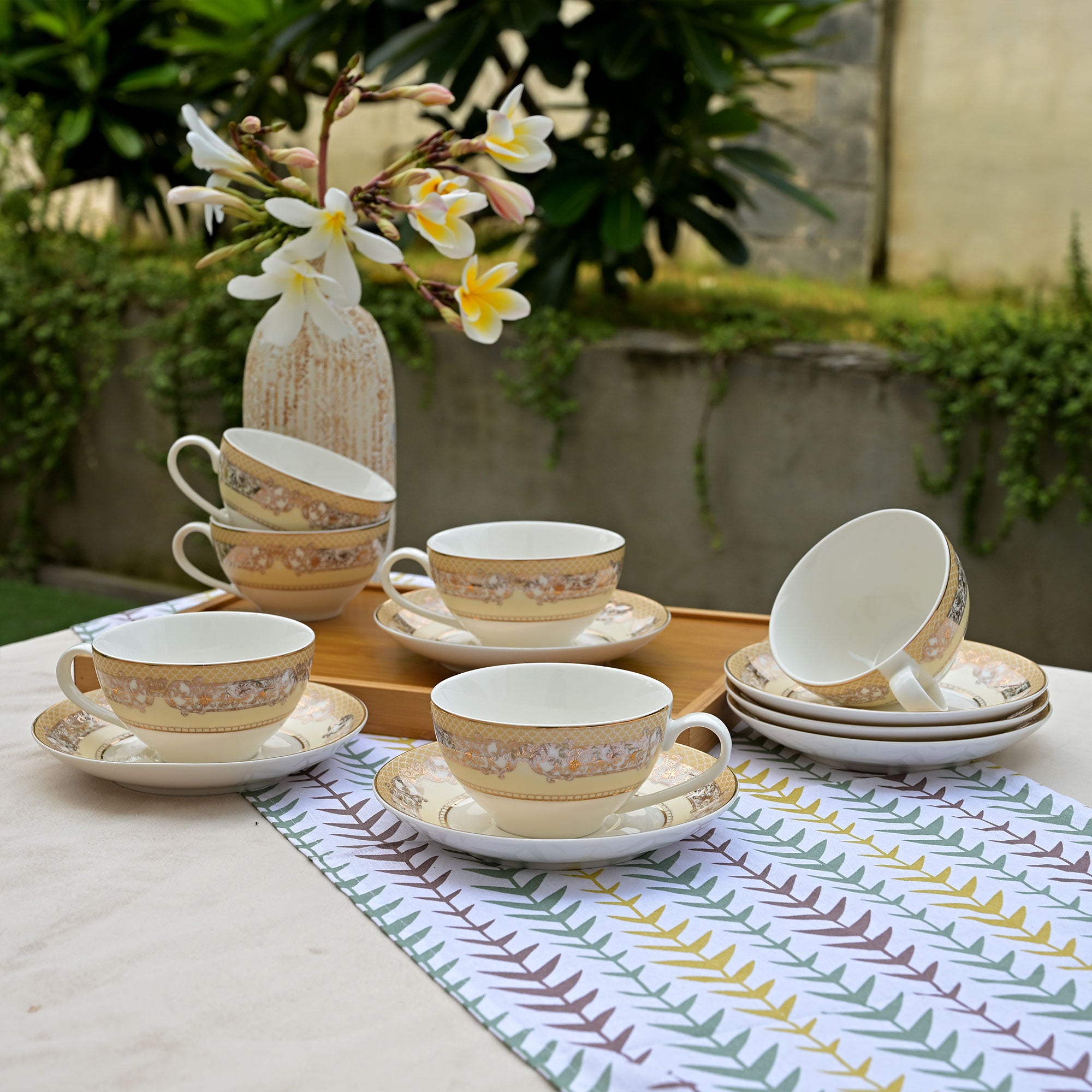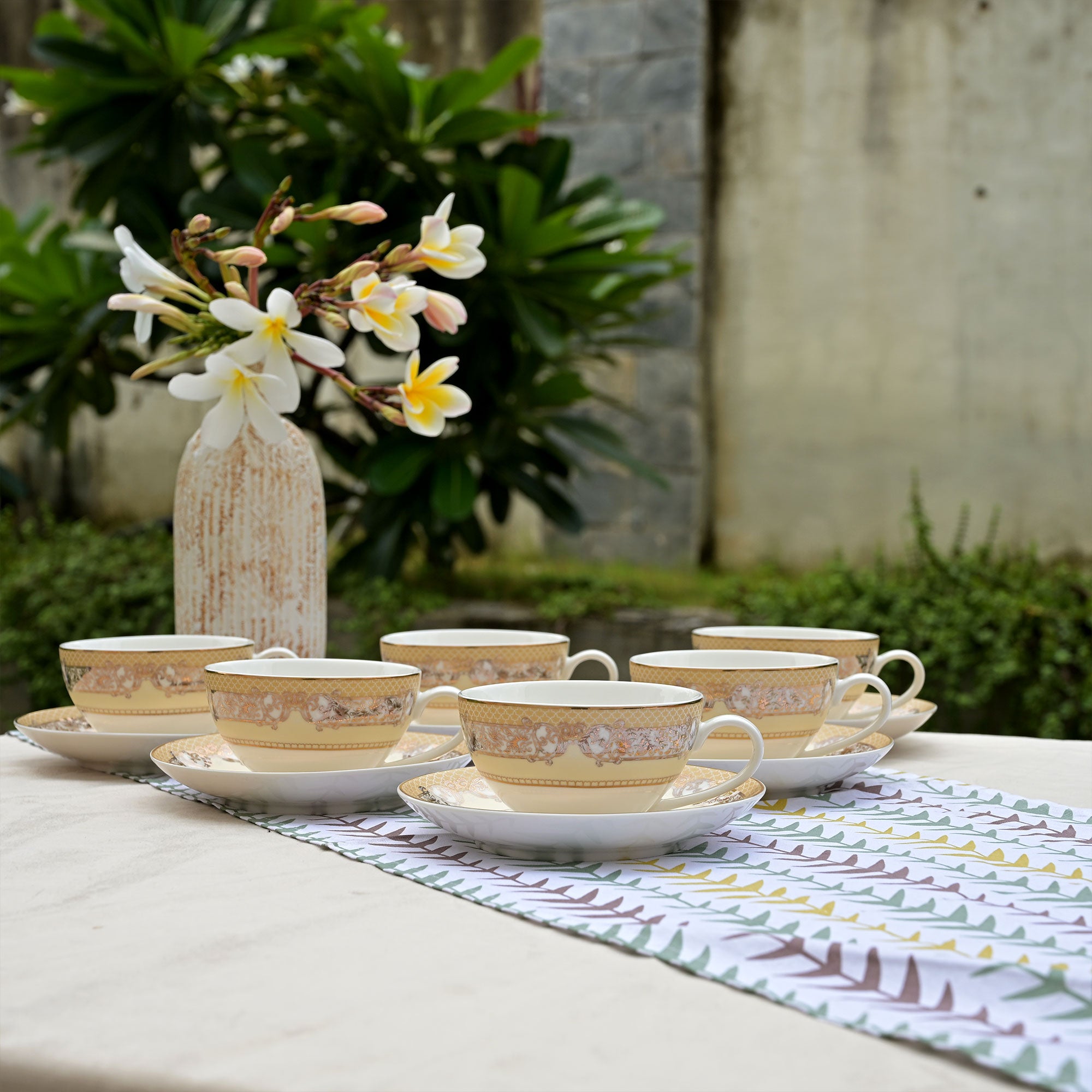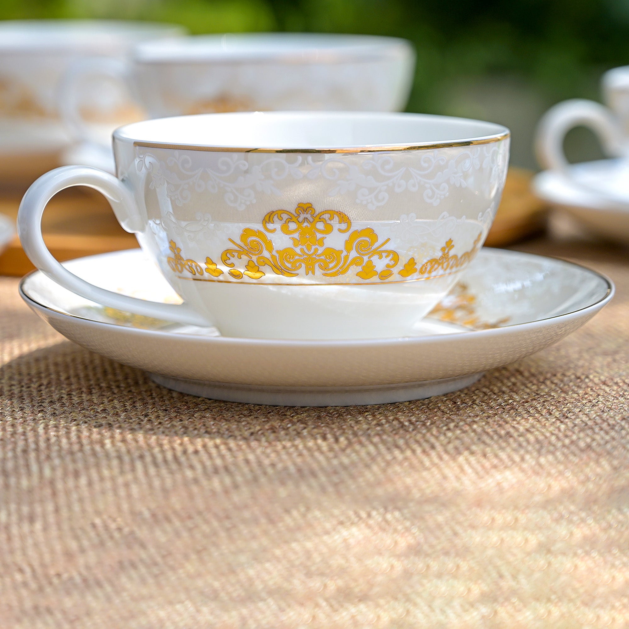 (5)Auric: Ethereal Bone China Tea Cup Set (Set of 6)