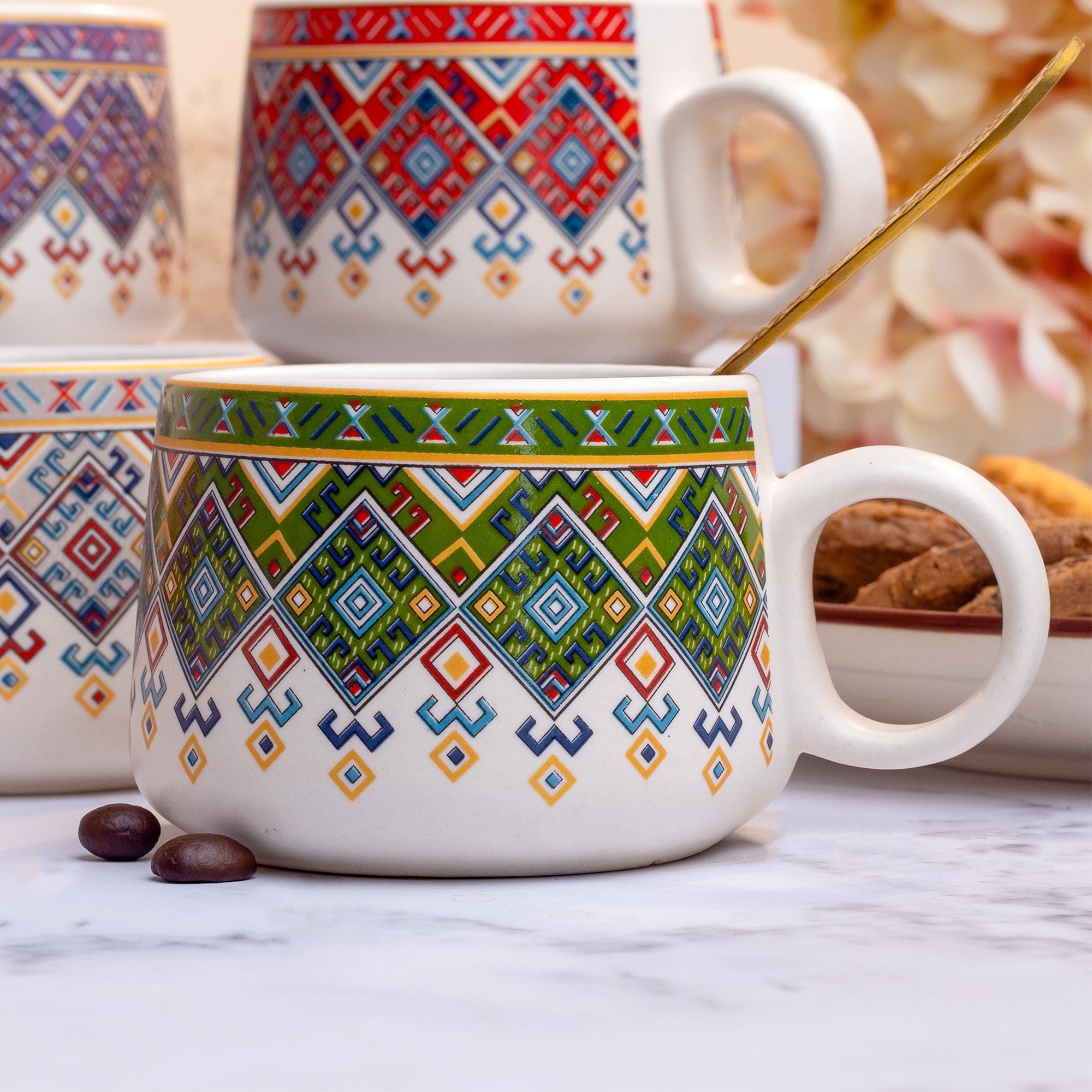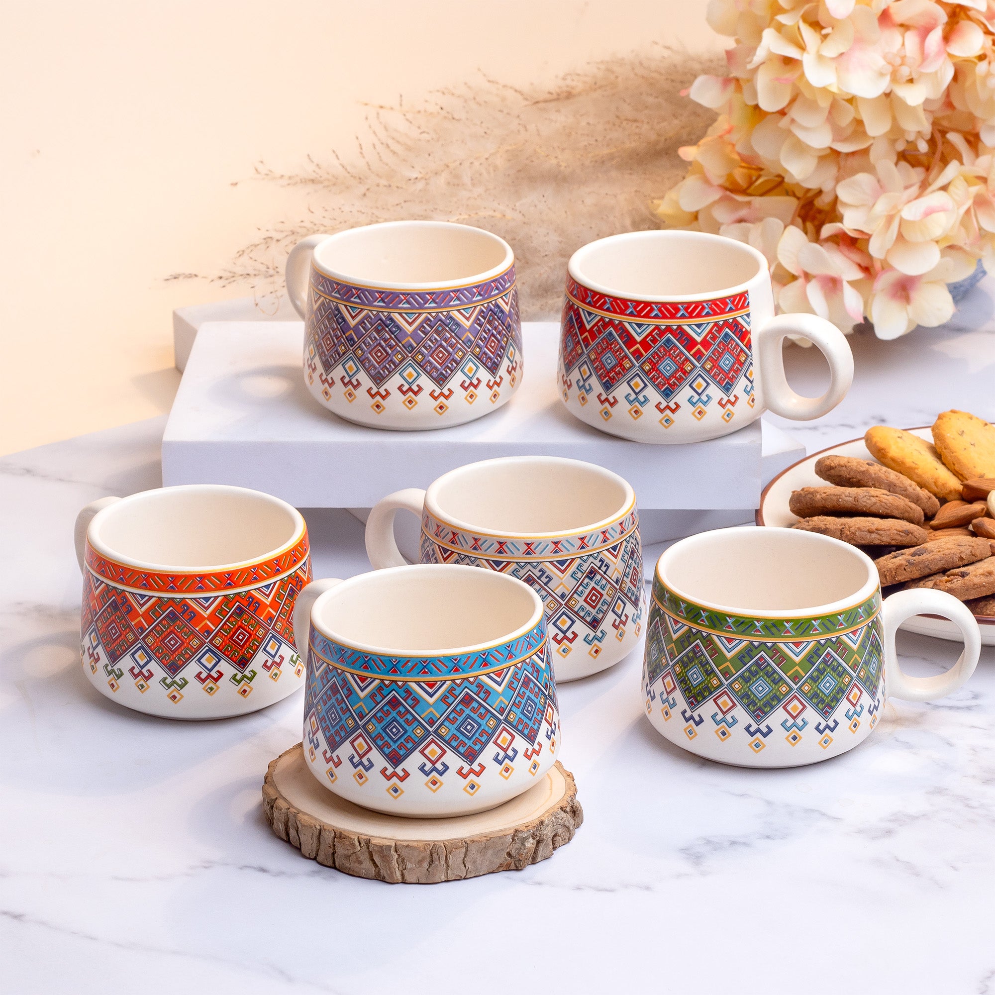 (4)Dinara: Vintage New Fine Bone China Cup Set (Set of 6)