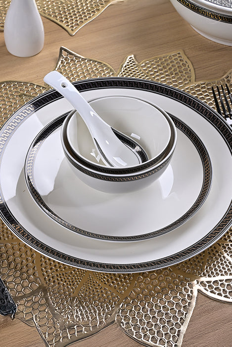 This dinner set 35 Pcs White and Gold Dinner Set offers a beautifully coordinated design across all items from the elegant plates and bowls .The color or pattern gives it a modern, minimalist feel that fits perfectly with any dining setup. The smooth finish and vibrant colors make it look stylish while being versatile enough for both casual and formal occasions.