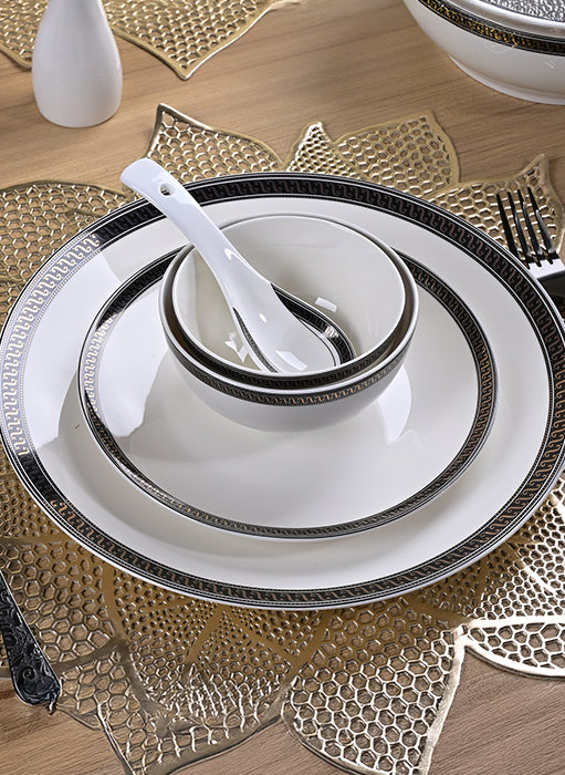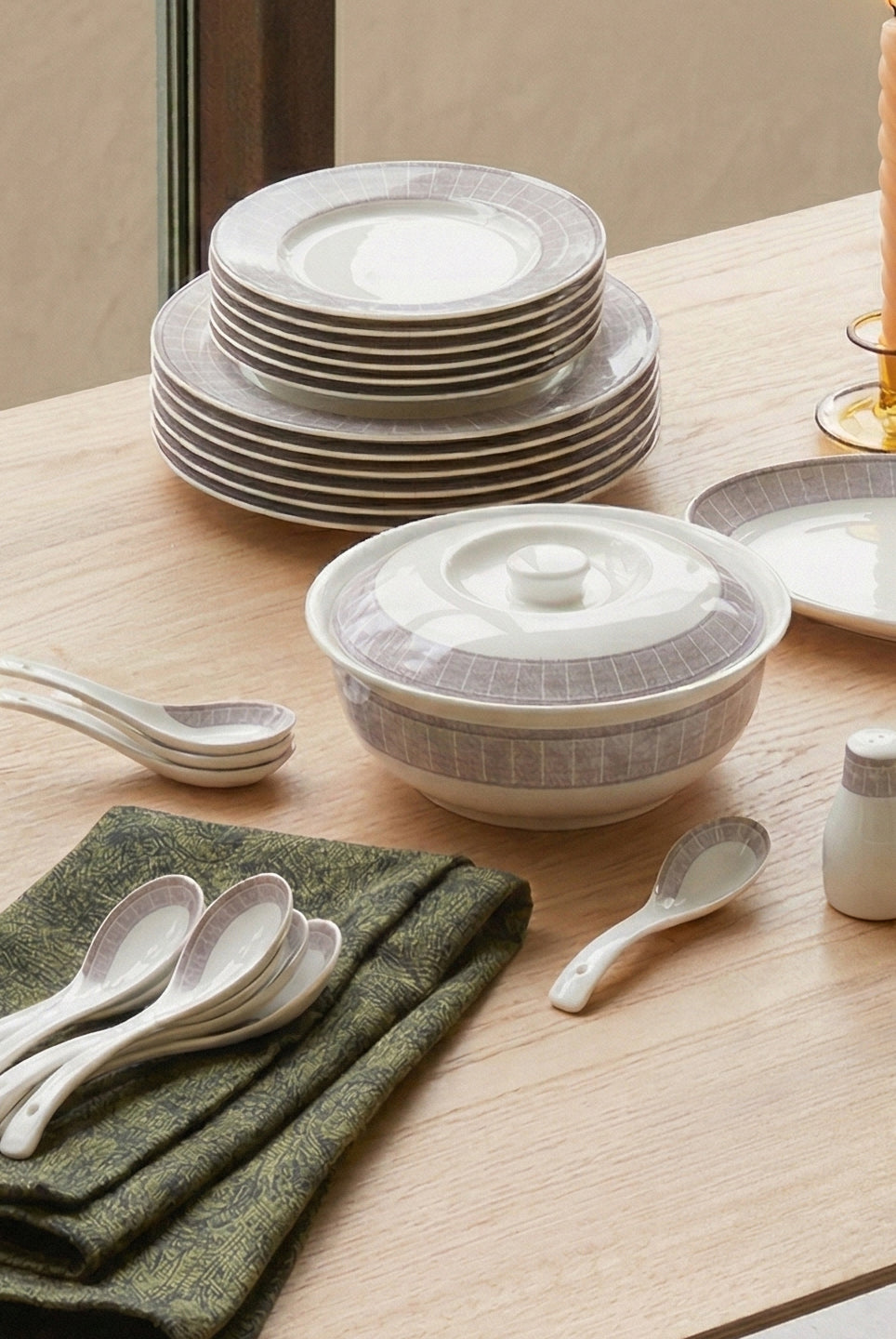 This dinner set 35 Pcs White and Gold Dinner Set offers a beautifully coordinated design across all items from the elegant plates and bowls .The color or pattern gives it a modern, minimalist feel that fits perfectly with any dining setup. The smooth finish and vibrant colors make it look stylish while being versatile enough for both casual and formal occasions.