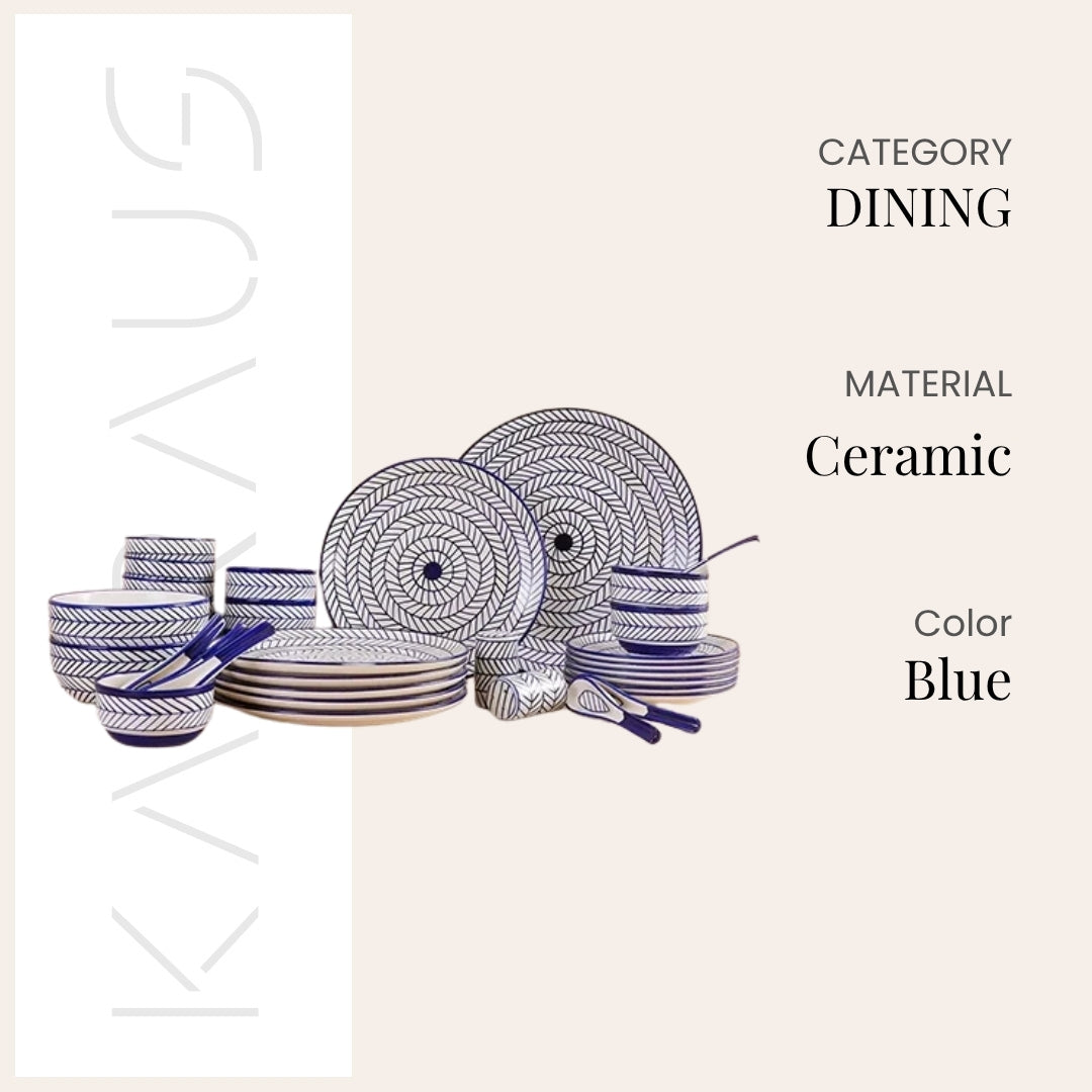 37 Pcs Blue Stripes Ceramic Dinner Set