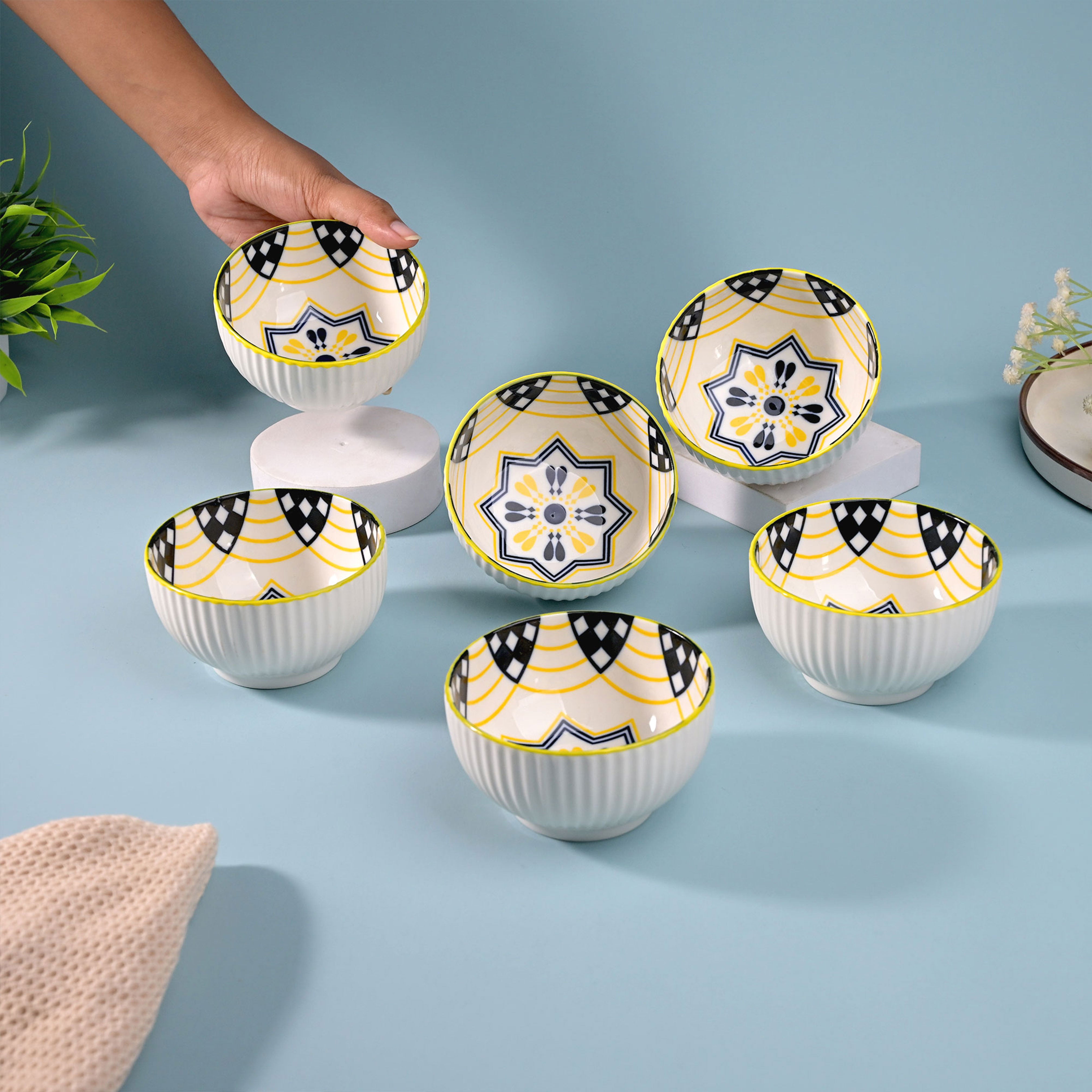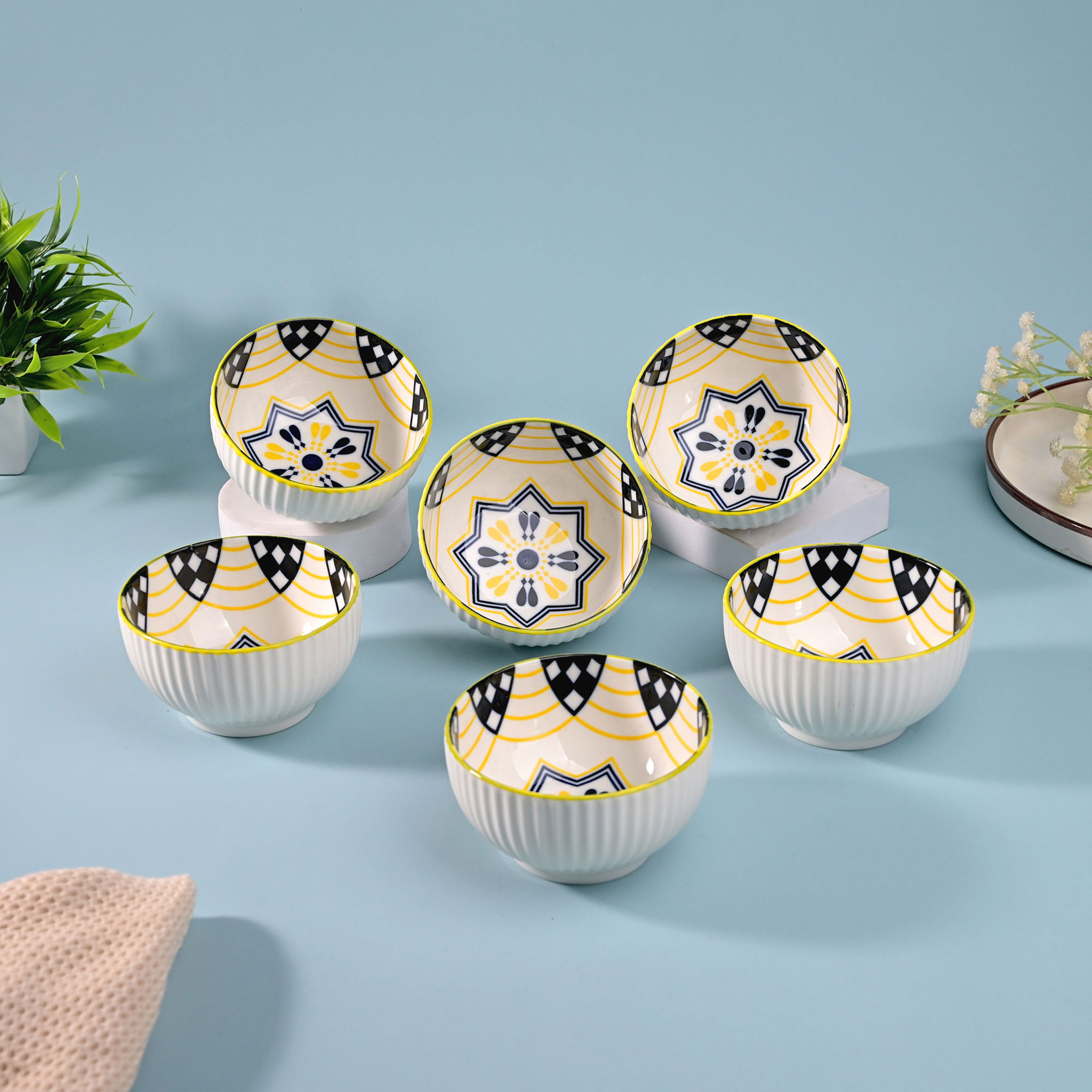 Artistic Porcelain Shiny Bowls (Set of 6)