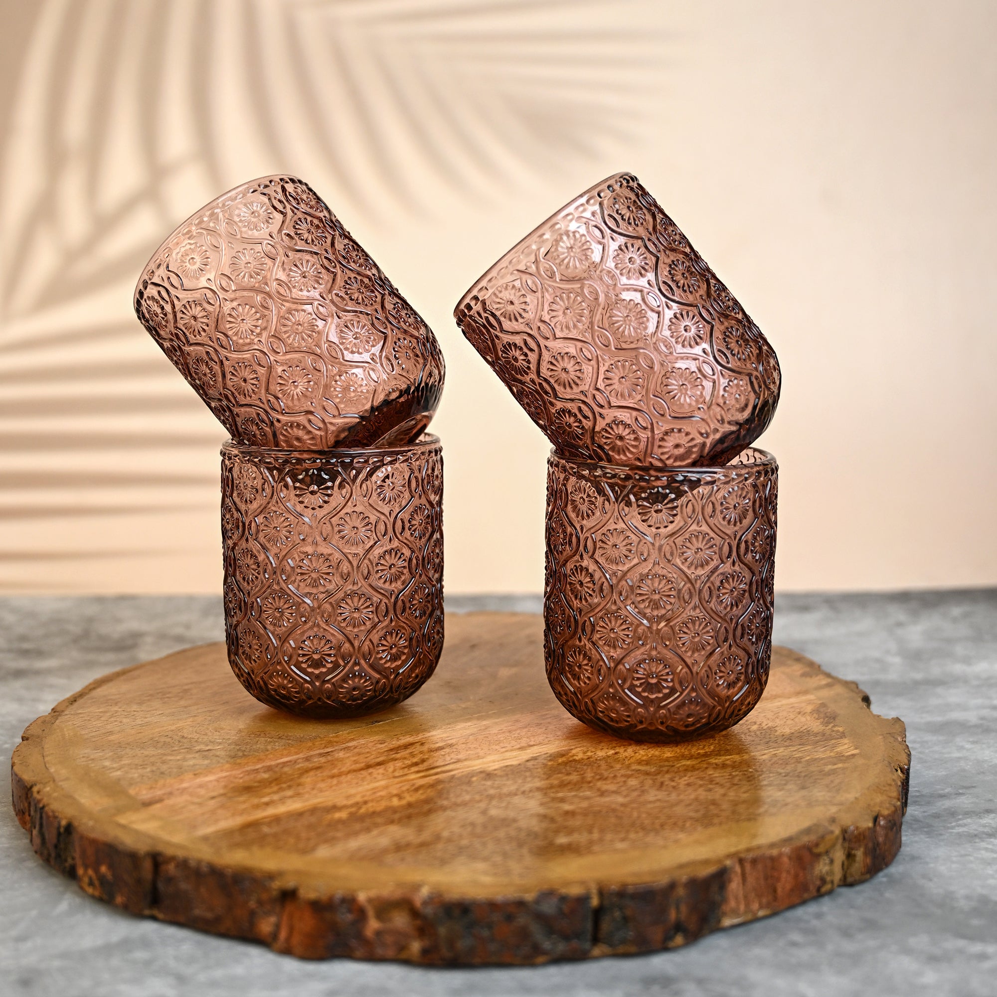 COD availableDimmed with playful, deep purple hue and vintage patterns, ATARA is a blessing to your culinary shelves. Perfect for glorifying your taste in tableware, this exquisite glass offers a sensory experience with its embossed curves, giving a rich touch to your fingertips. Moreover, ATARA's dimensions are designed to capture your attention; while its smooth, wide rim adds a touch of comfort, the overall silhouette is carved to gently hug both your hands. Perfect for your dine-dining manifestations!