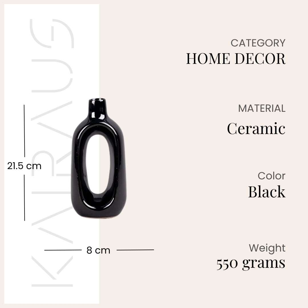 COD availableRevamp your home decor with our 'Black Hollow Minimalist Vase', a sleek and contemporary piece made to add sophistication to your home. This ceramic flower vase uses high-quality ceramic finished in a glossy pure black shade. The minimalist look and clean lines allow you to fit it seamlessly into any modern or traditional home setting. Place it near a sofa in your living room, entryway table, or hallway corners to achieve a brilliant look.