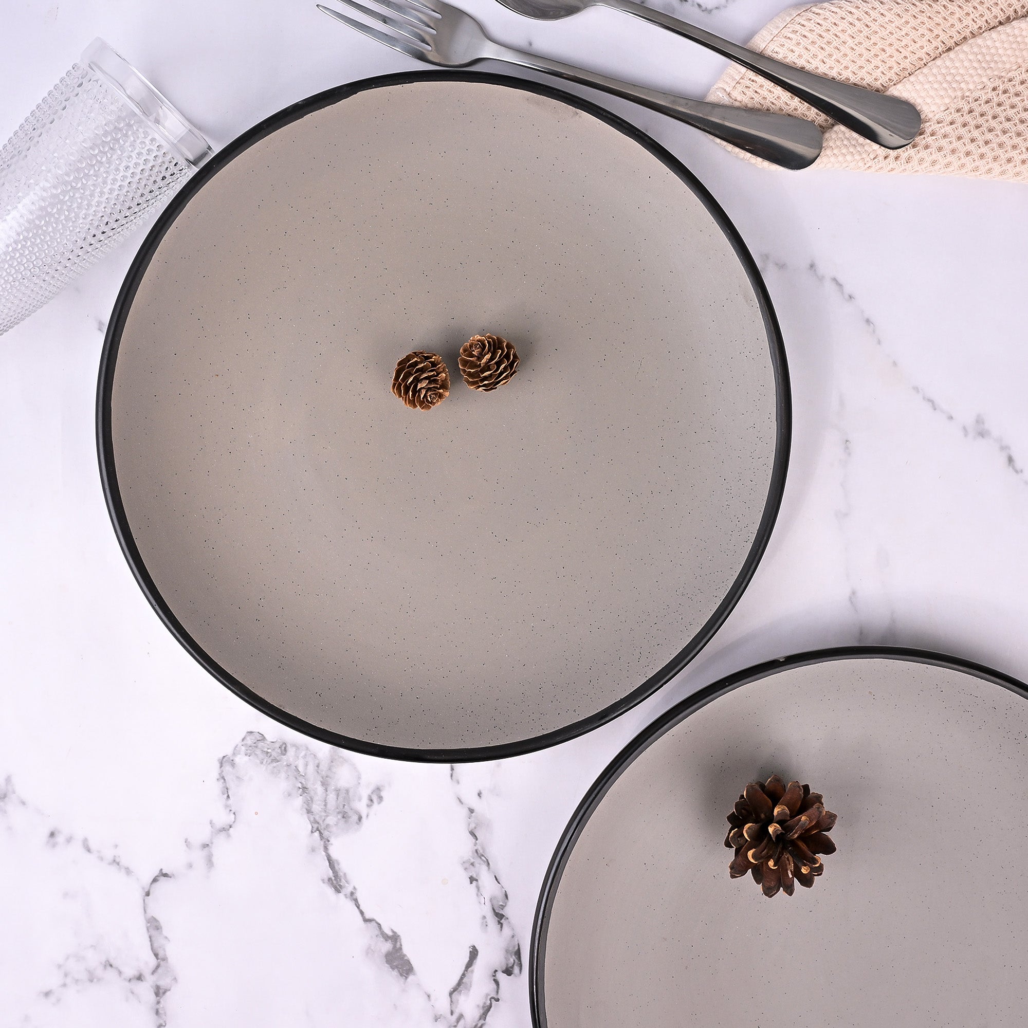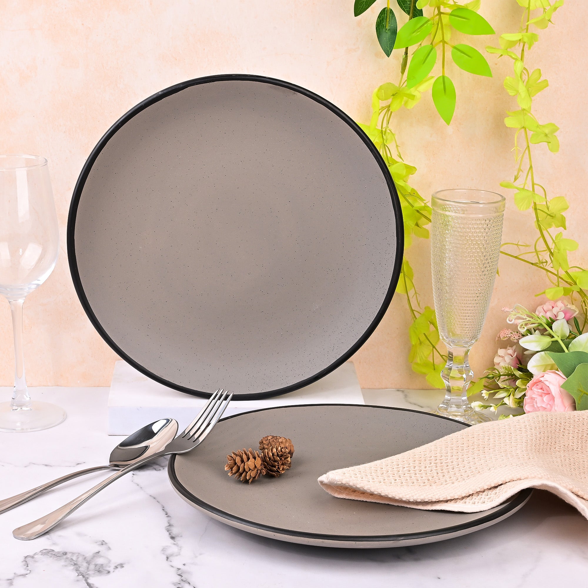 COD availableWant something that feels elegant? Here’s the Kairaus Black-Rimmed Grey Dinner Plate set. These plates are designed with the simple thought of making mealtime feel more special while adding a touch of timeless elegance. Crafted from durable ceramic, they not only offer lasting quality but will also be your best friends for a long time. The matte finish gives them a modern and natural style, while the colour combination of grey and black enhances the overall look, making it perfect for showing off your meal’s original colours. Don’t think twice; your dining table needs this nature-inspired piece of art.