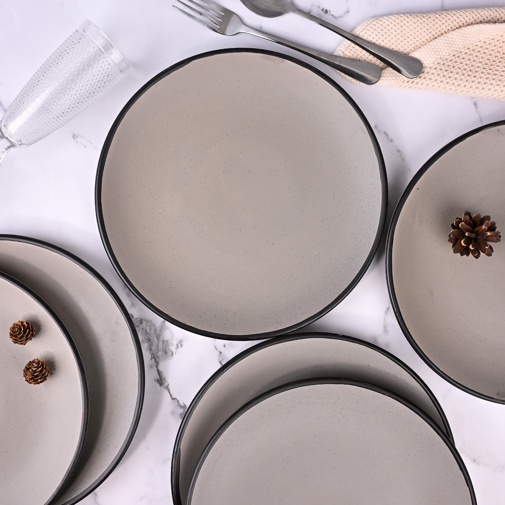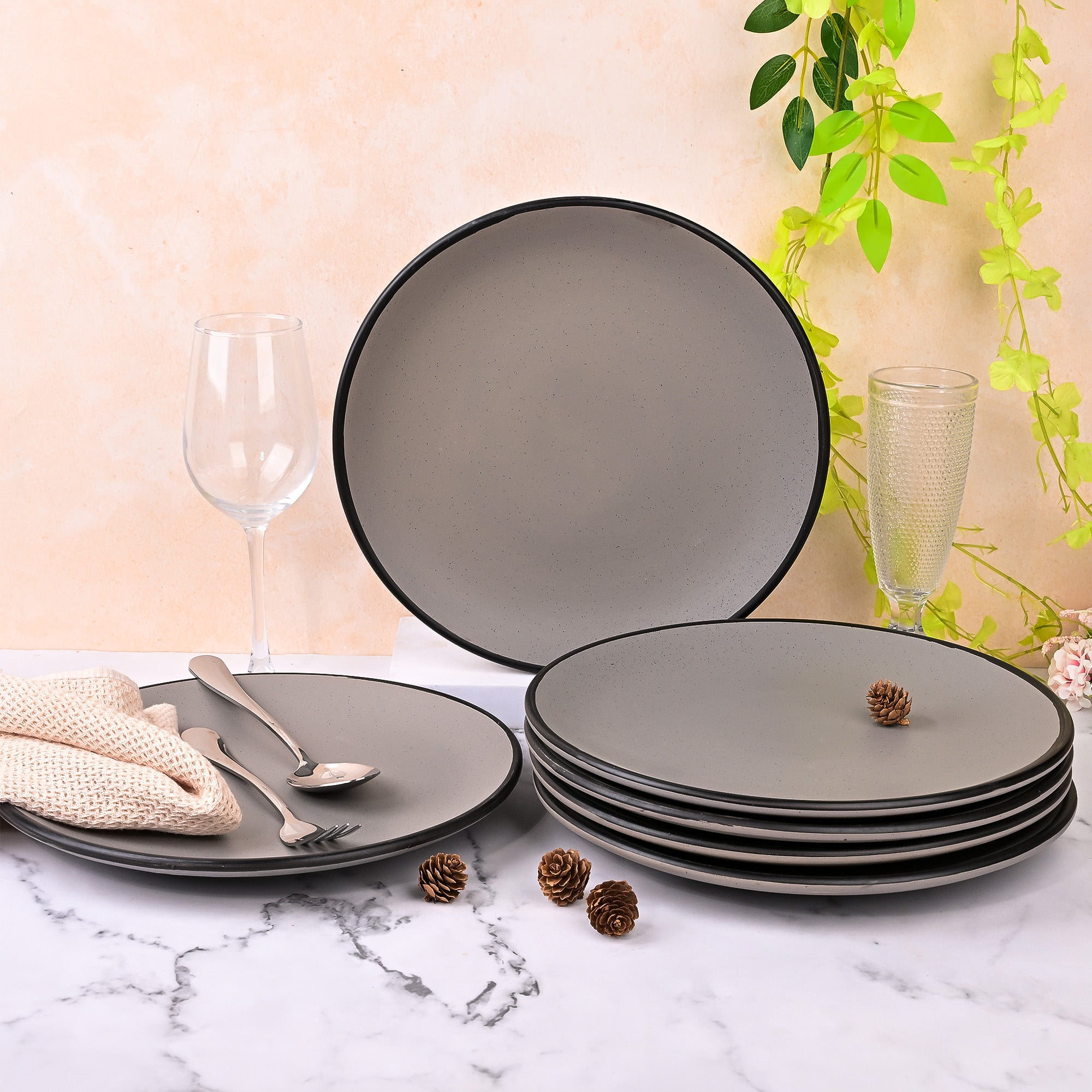 Black-Rimmed Grey Dinner Plate Set of 6 (10.5 Inch)