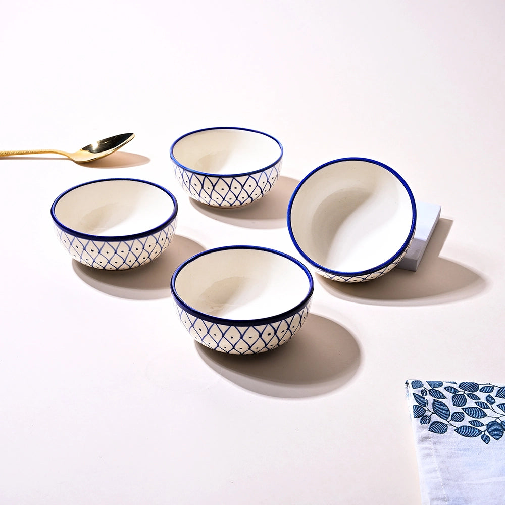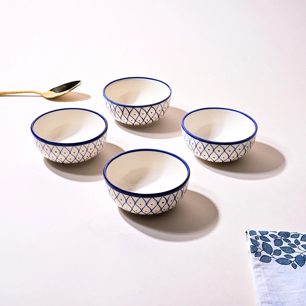 Blue Abstract Printed Ceramic Glossy Bowls (Set of 4)