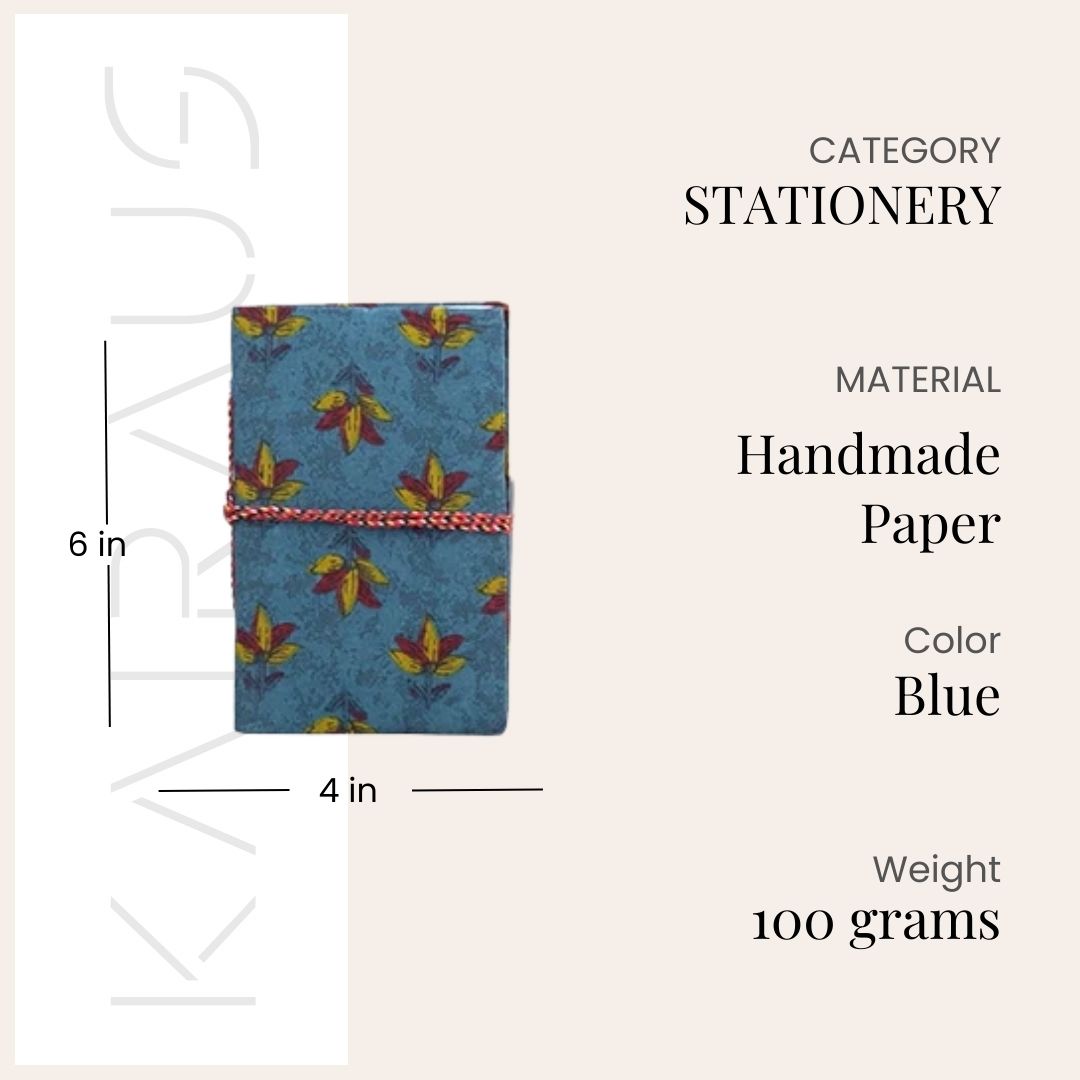 Blue Fabric Covered Handmade Diary (6x4inch)
