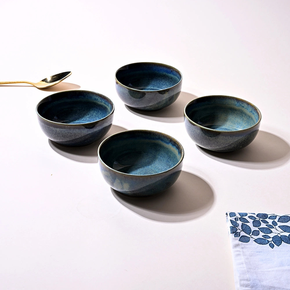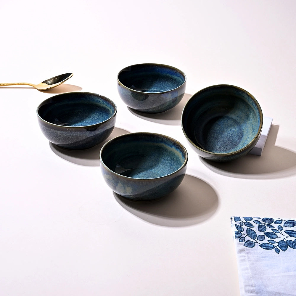 Blue Lagoon Glossy Porcelain Bowl (Set of 4)