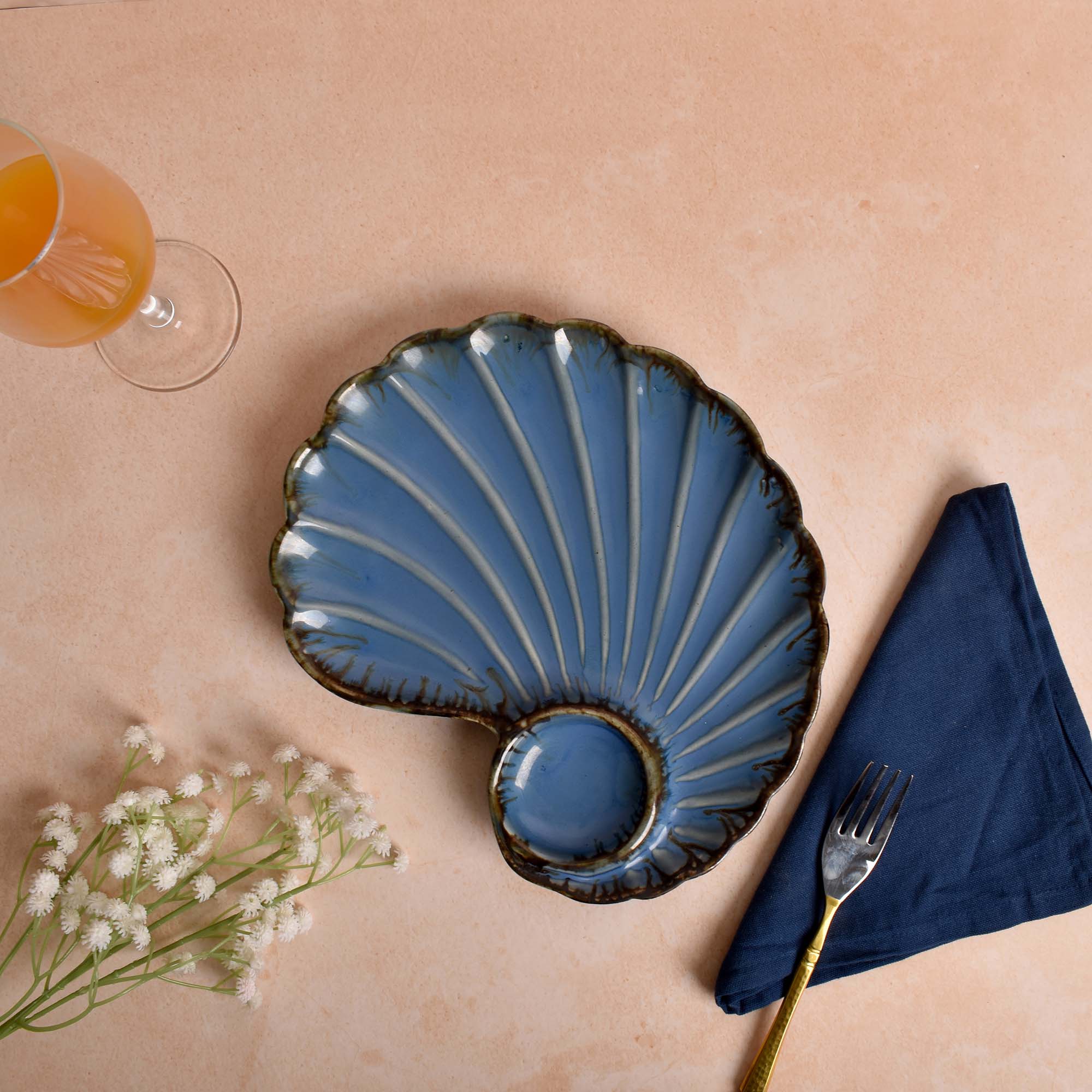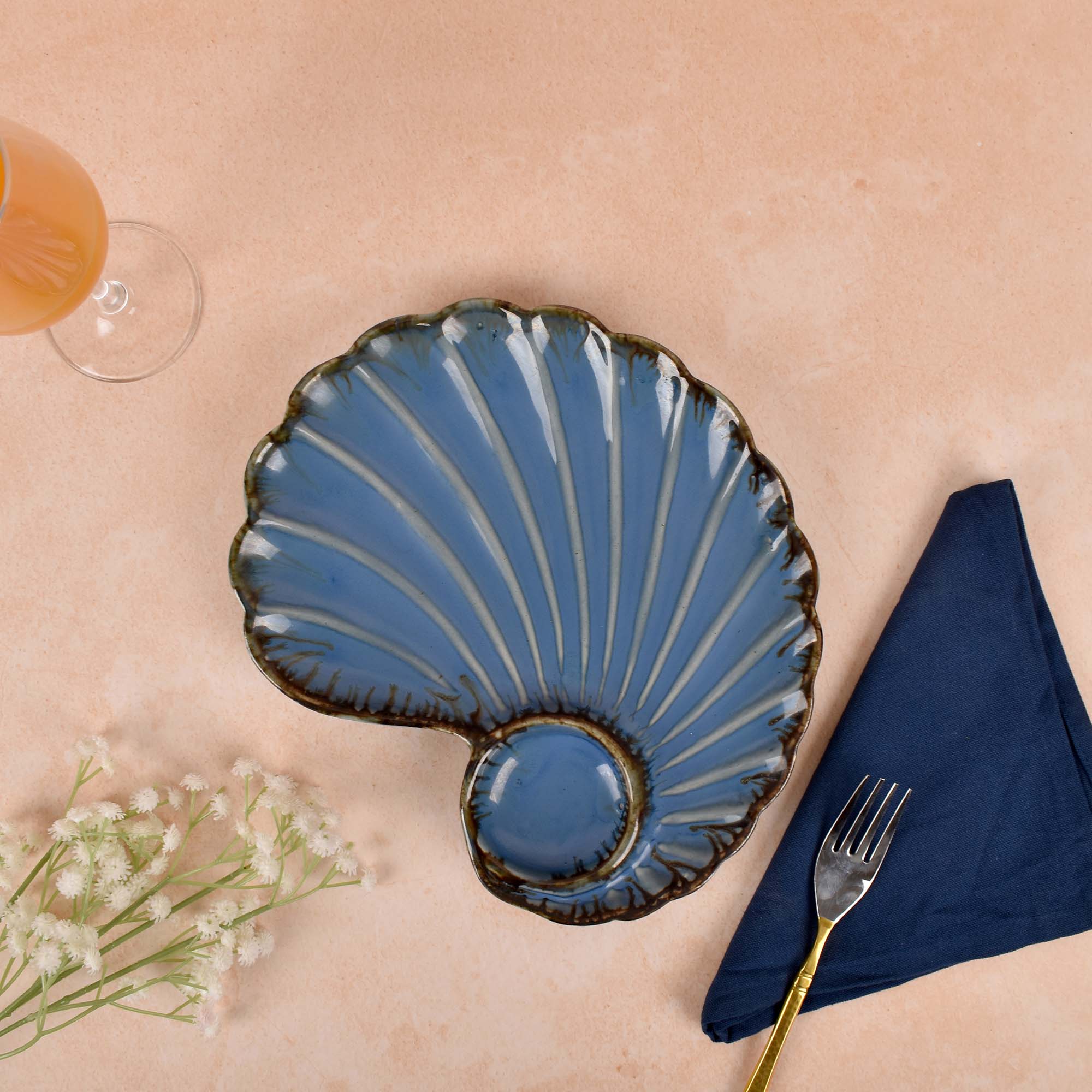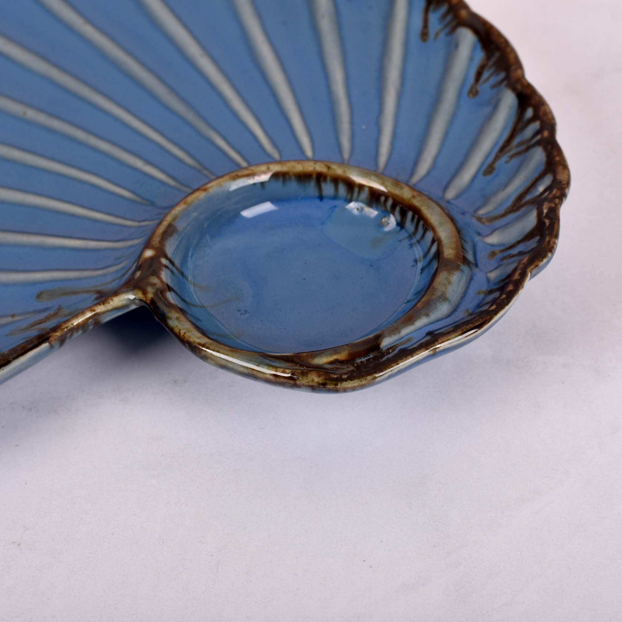 COD availablePresent your staters on something that is just as special as the moment itself. This precisely handcrafted Blue Shell Serving Platter features a deep blue glaze with bronze-brown edges that create depth in every curvature. The result? A colour palette that feels both class and rich, perfect for modern spaces that are earthy but not quite rustic. Not only does its flowing leaf-like form add charm to the dining set, but it also offers the perfect amount of space to serve dry snacks, mithai, cookies, or fruit. This platter is going to make your bites worthy of styling whether you're hosting guests or indulging in quiet nights.