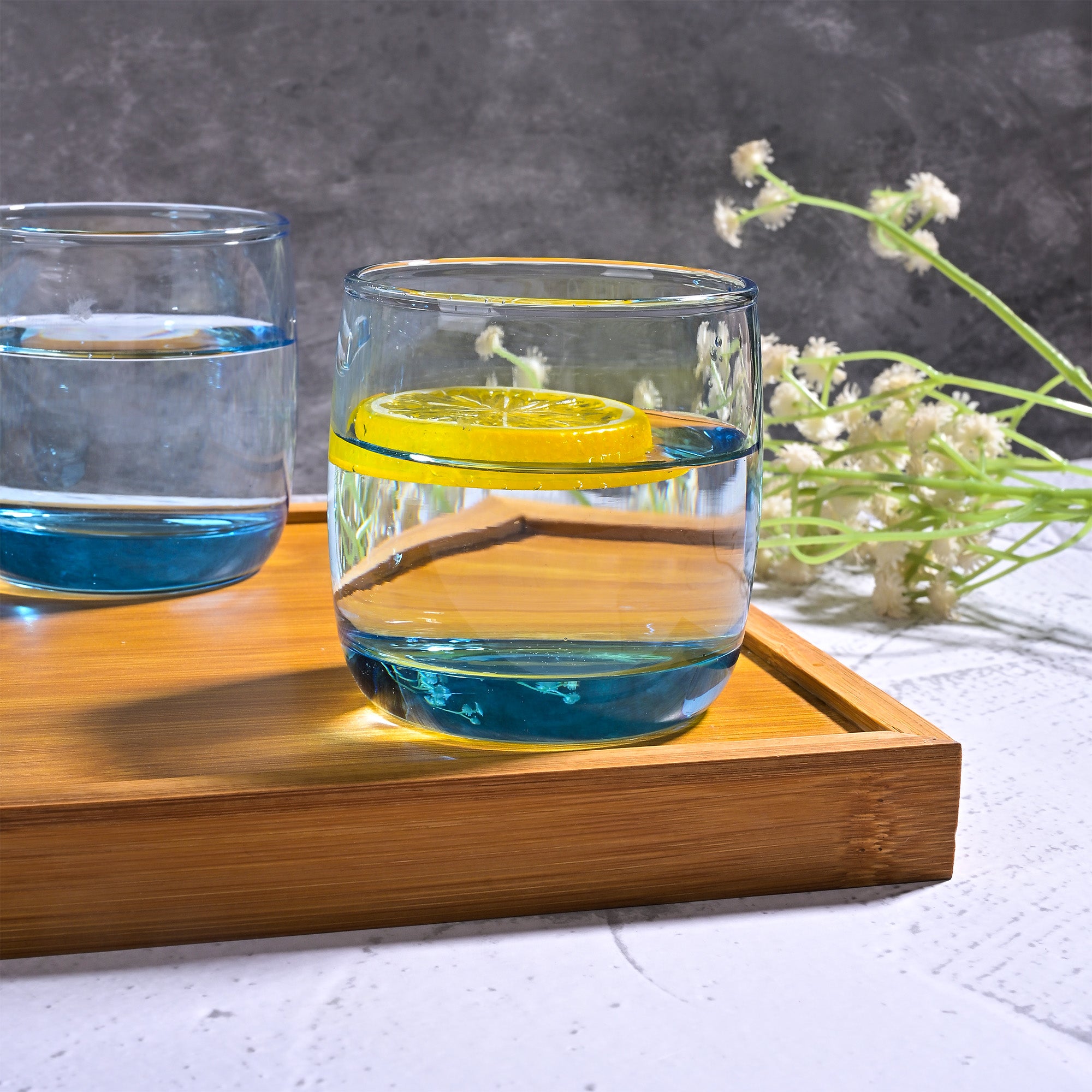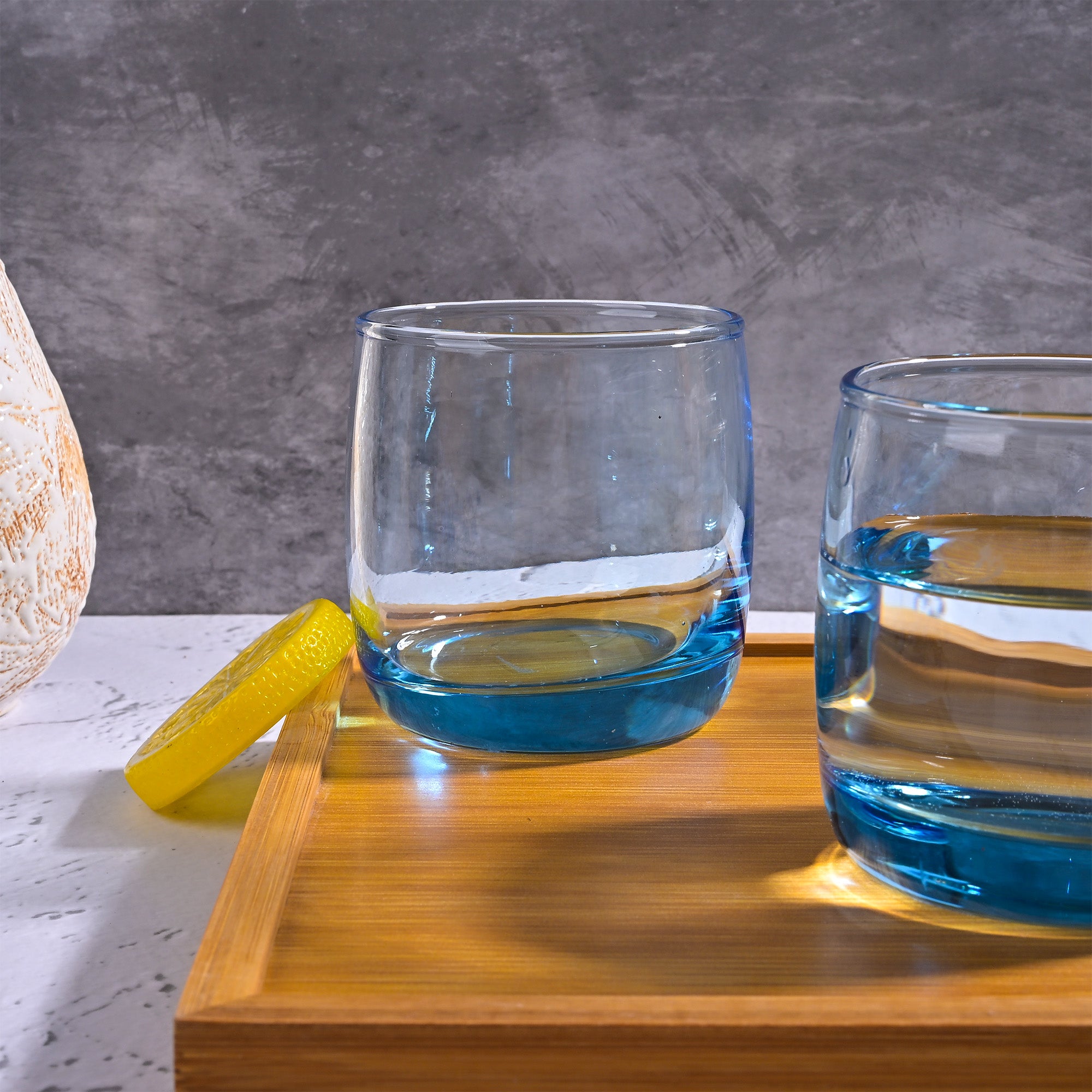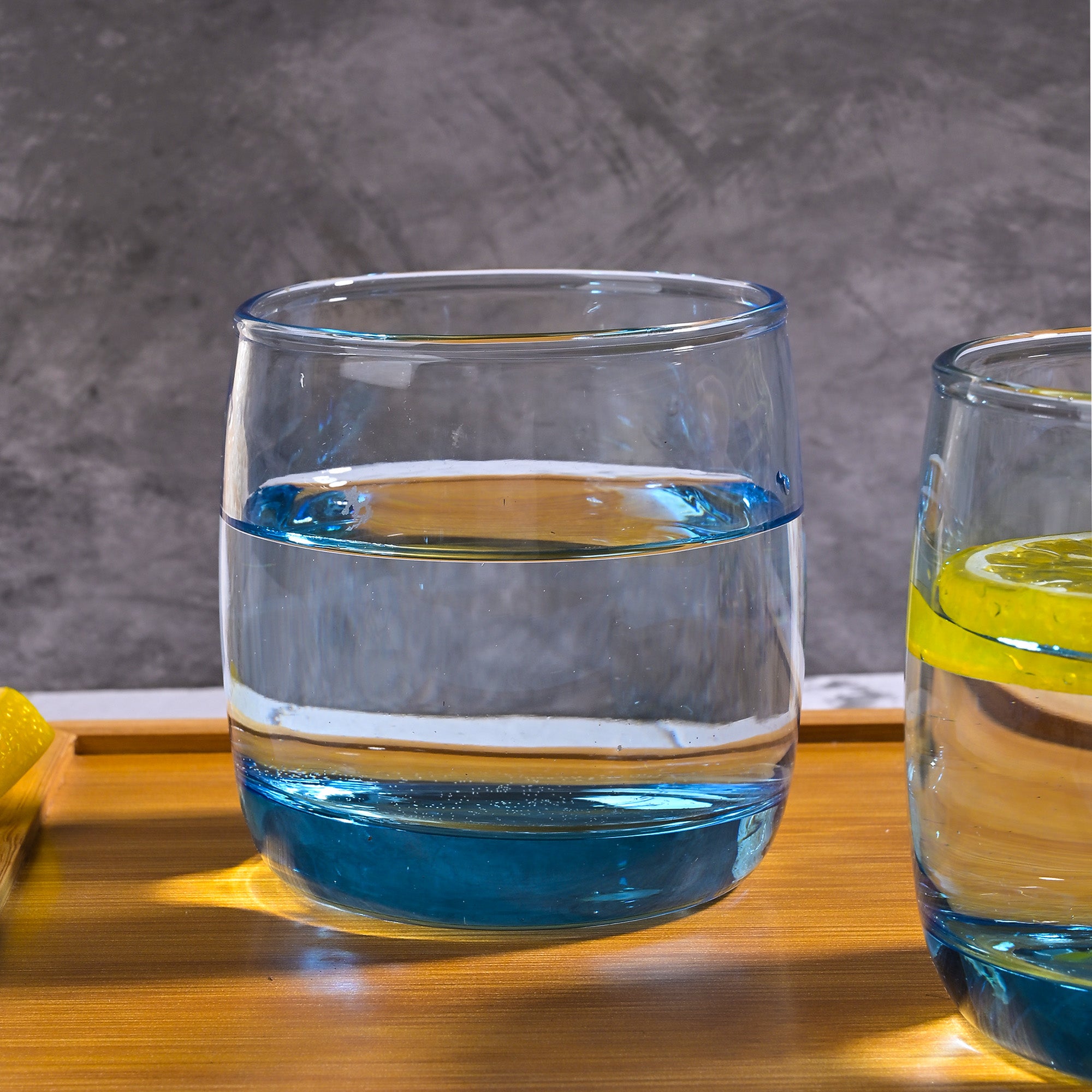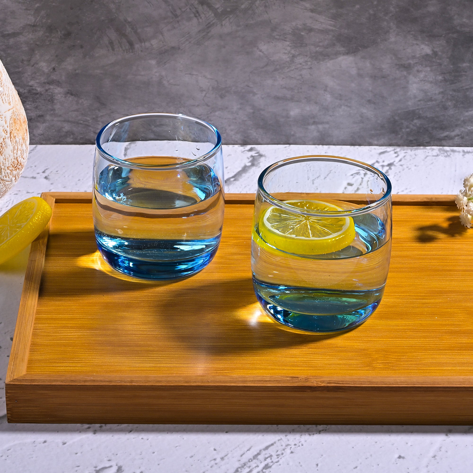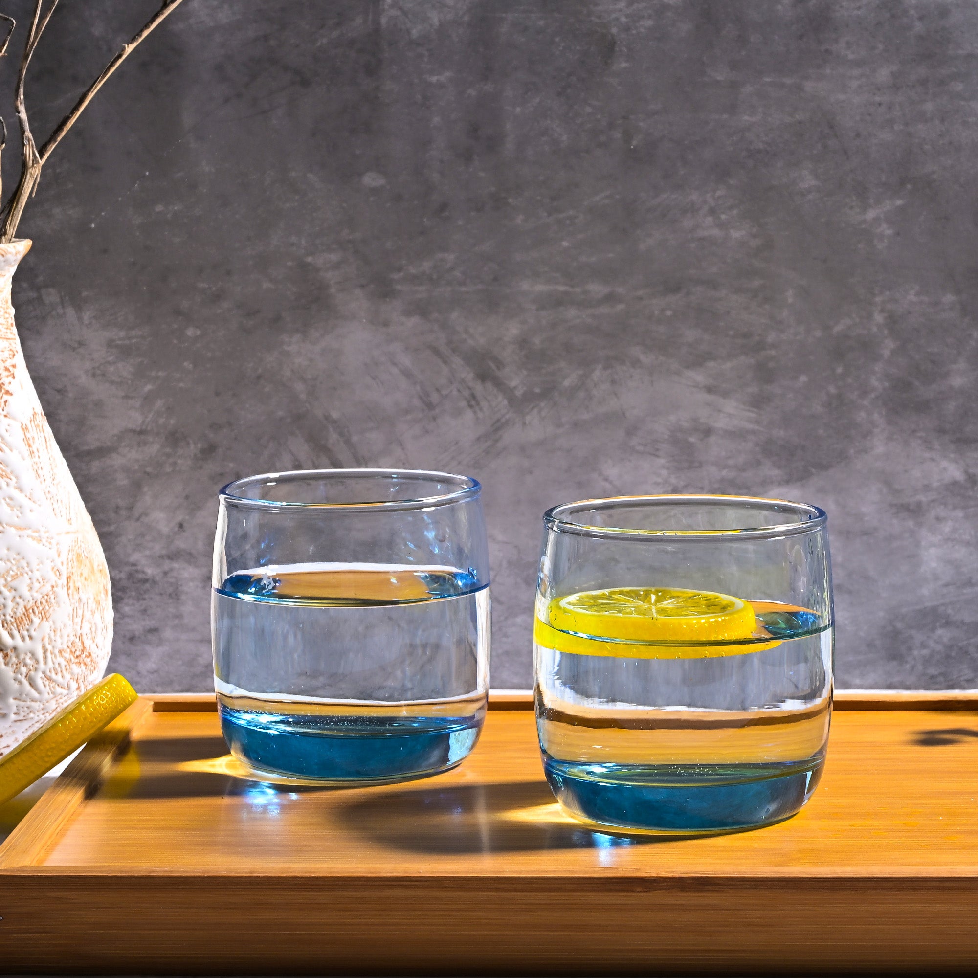 COD availableAdd a splash of fun to your dining experience with this 'Blue Tinted Glass Set of 2.' Each glass features a sturdy, clear bowl with a base tinted in Ocean blue so that every sip feels like a beach celebration. These glasses are perfect for serving juices, mocktails, or refreshing beverages. Their simple, colourful design will add a playful touch to your table.