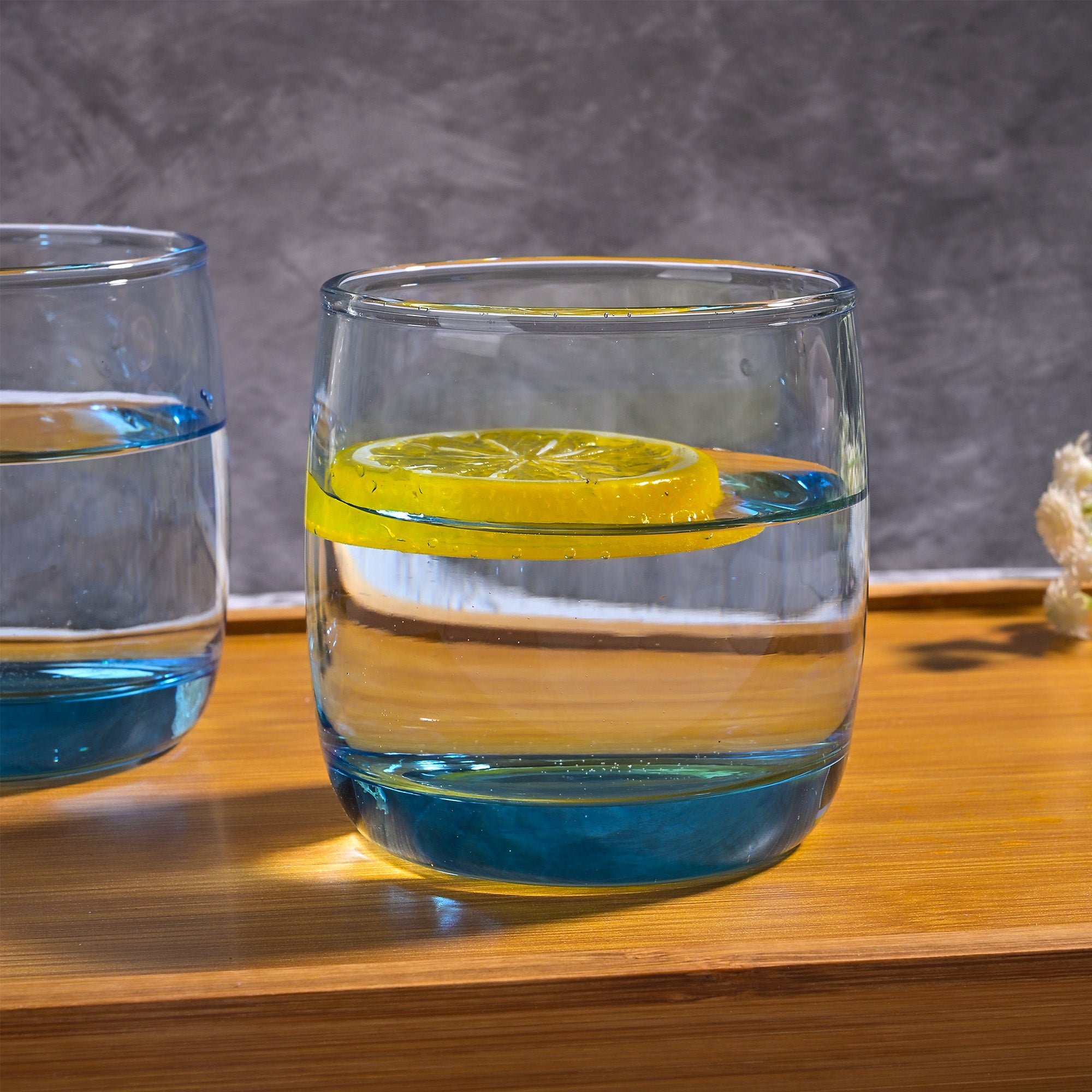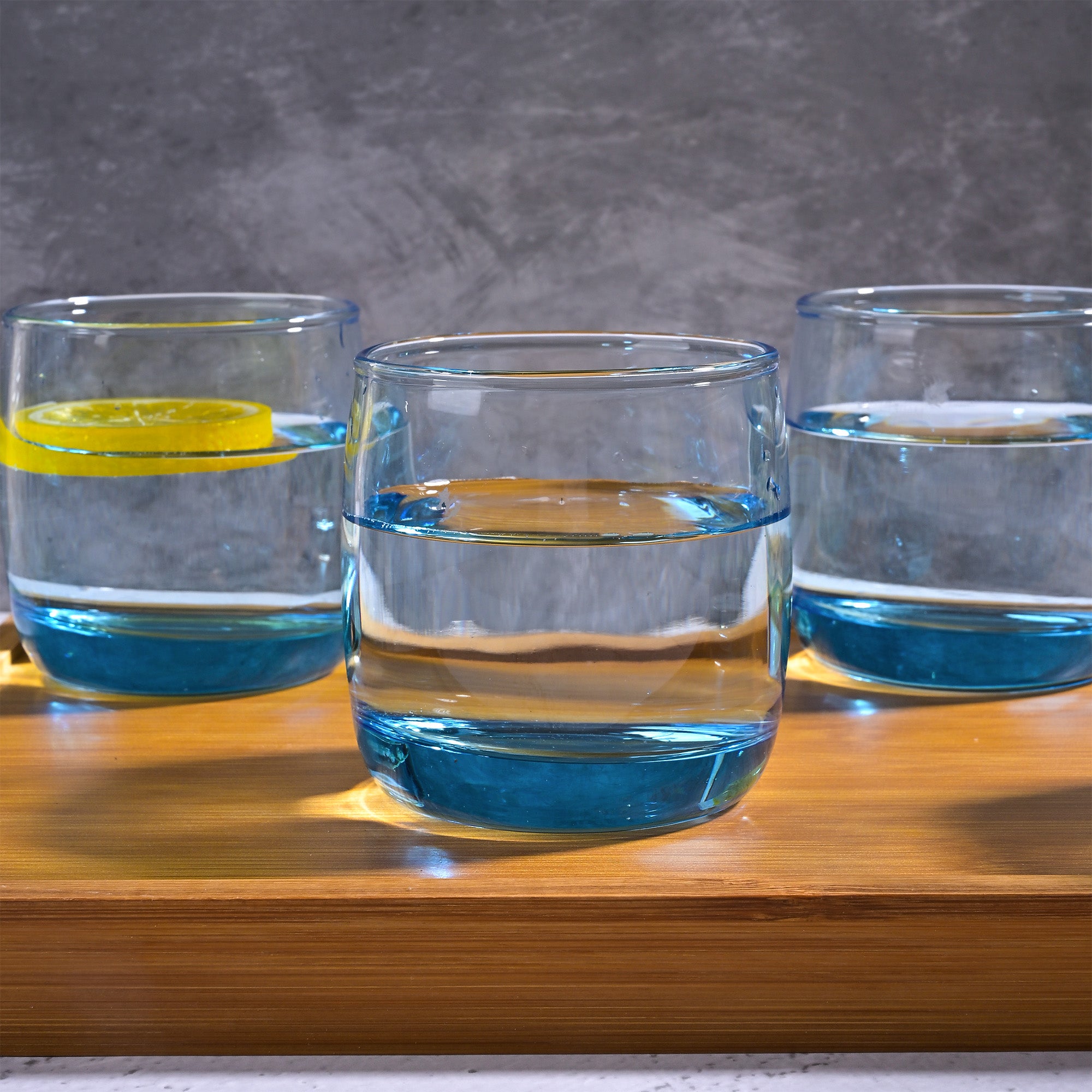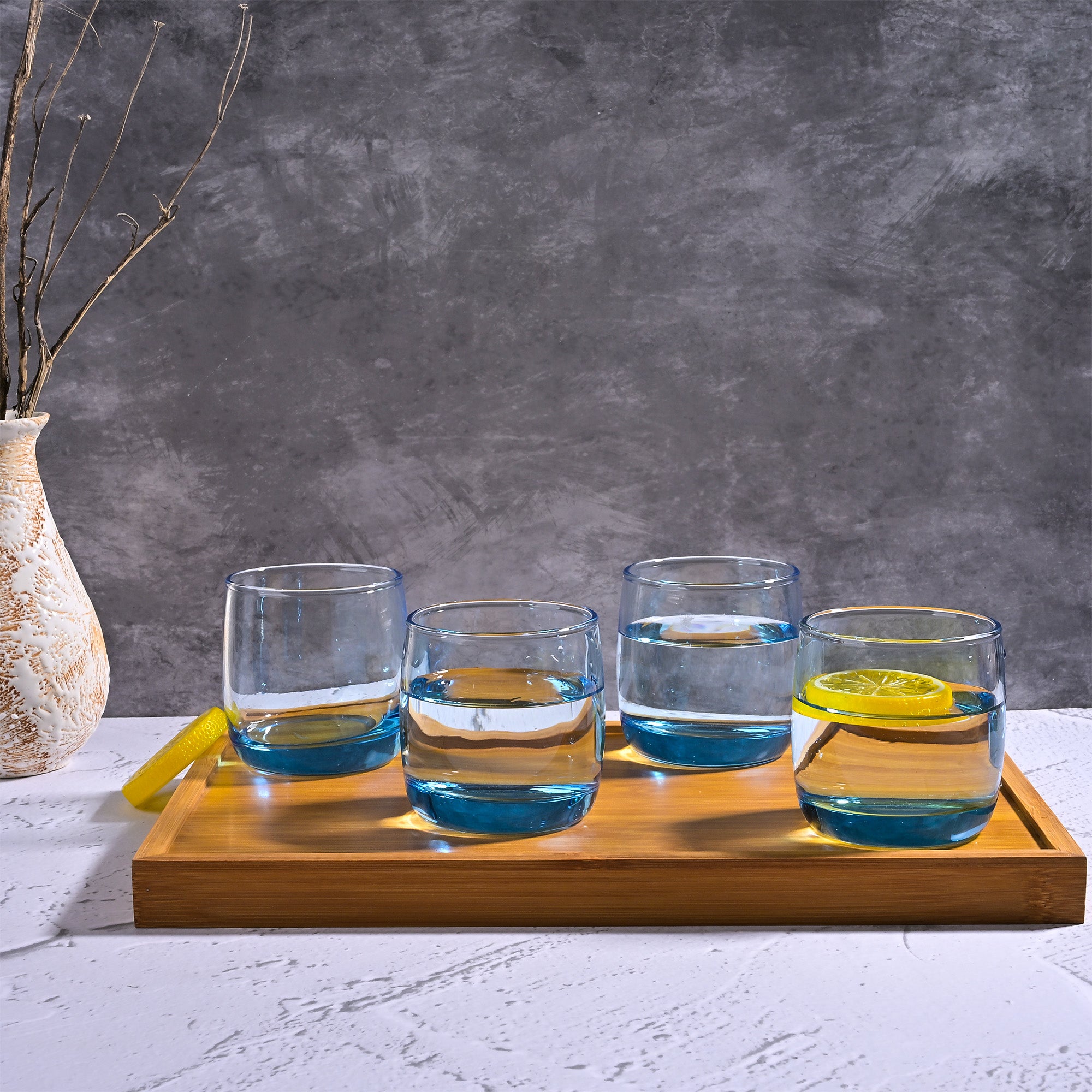 COD availableAdd a splash of fun to your dining experience with this 'Blue Tinted Glass Set of 4.' Each glass features a sturdy, clear bowl with a base tinted in Ocean blue so that every sip feels like a beach celebration. These glasses are perfect for serving juices, mocktails, or refreshing beverages. Their simple, colourful design will add a playful touch to your table.