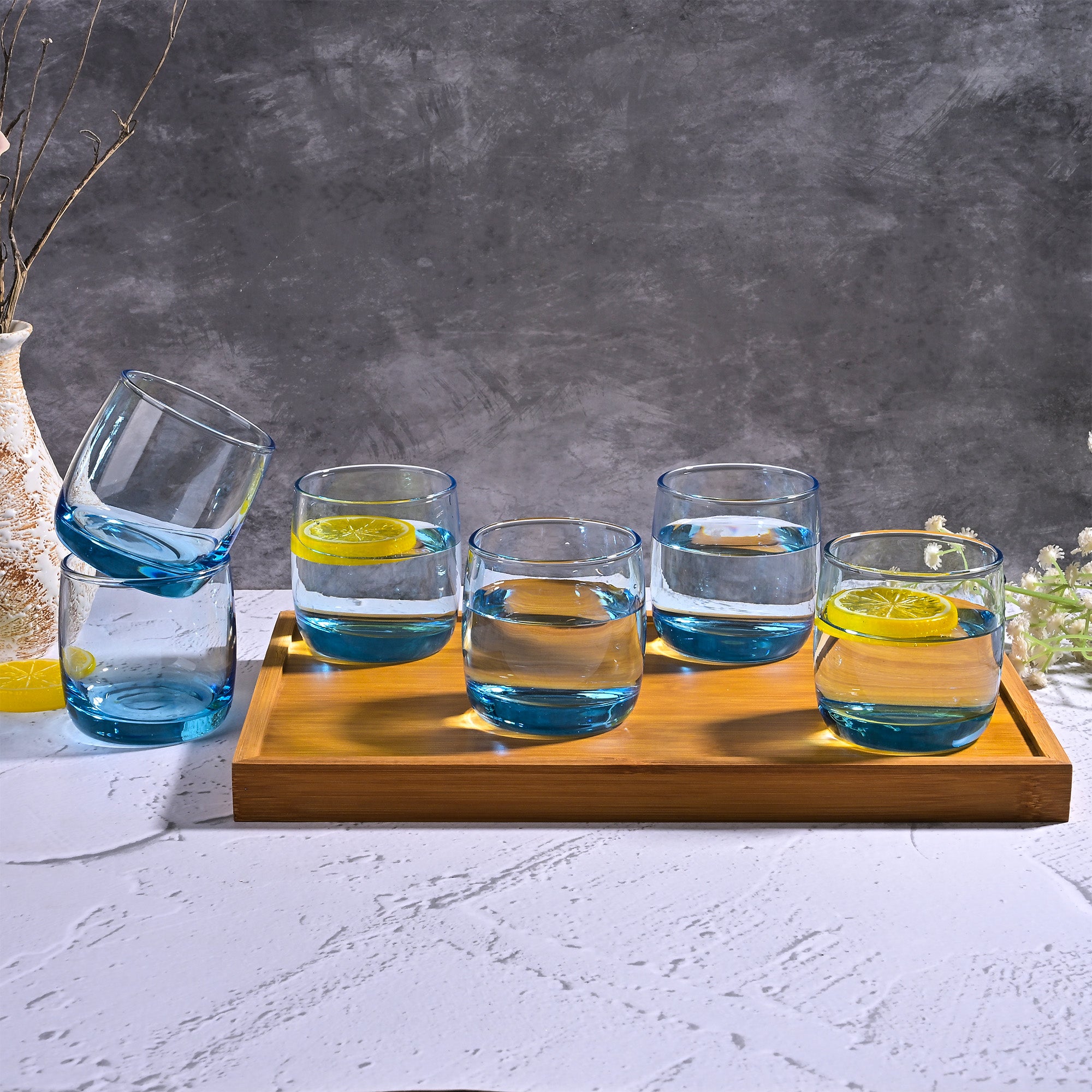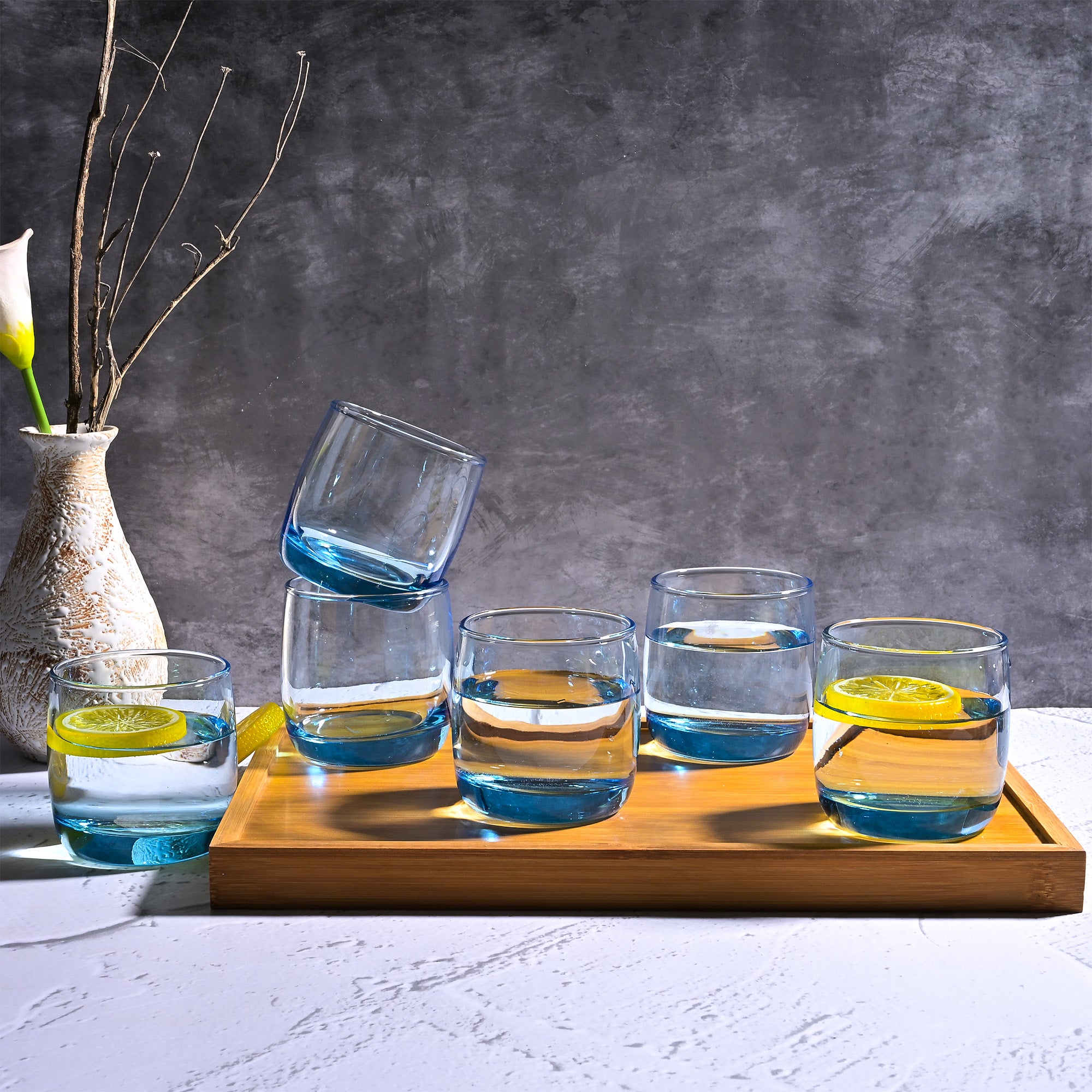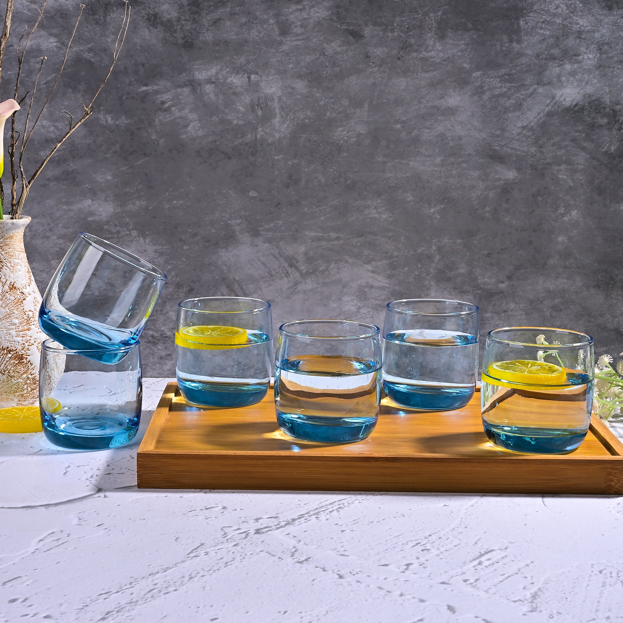 COD availableAdd a splash of fun to your dining experience with this 'Blue Tinted Juice Glass Set.' Each glass features a sturdy, clear bowl with a base tinted in Ocean blue so that every sip feels like a beach celebration. These glasses are perfect for serving juices, mocktails, or refreshing beverages. Their simple, colourful design will add a playful touch to your table.