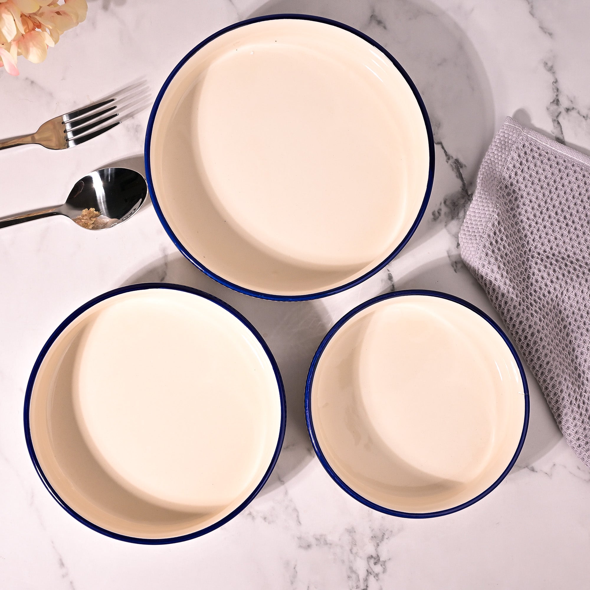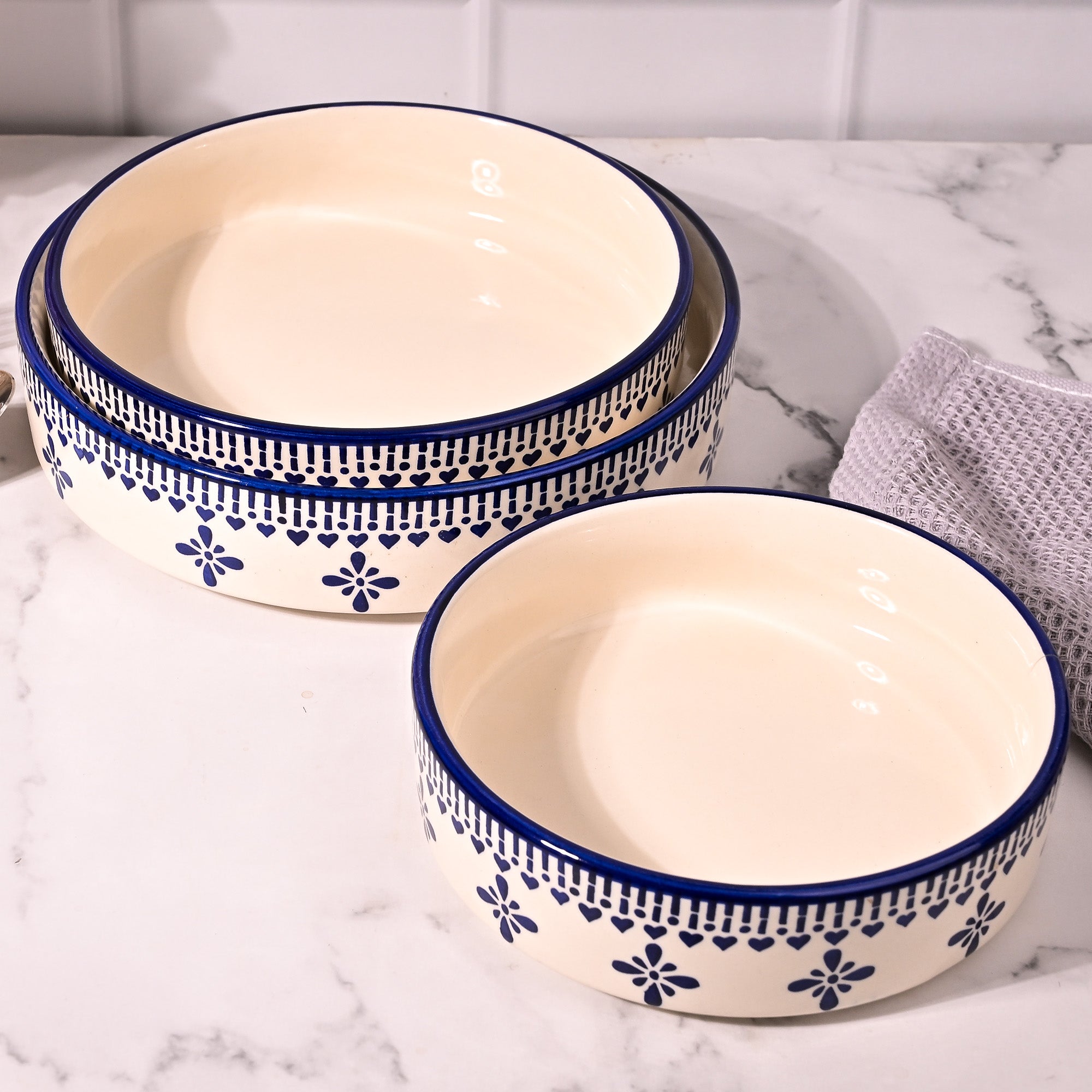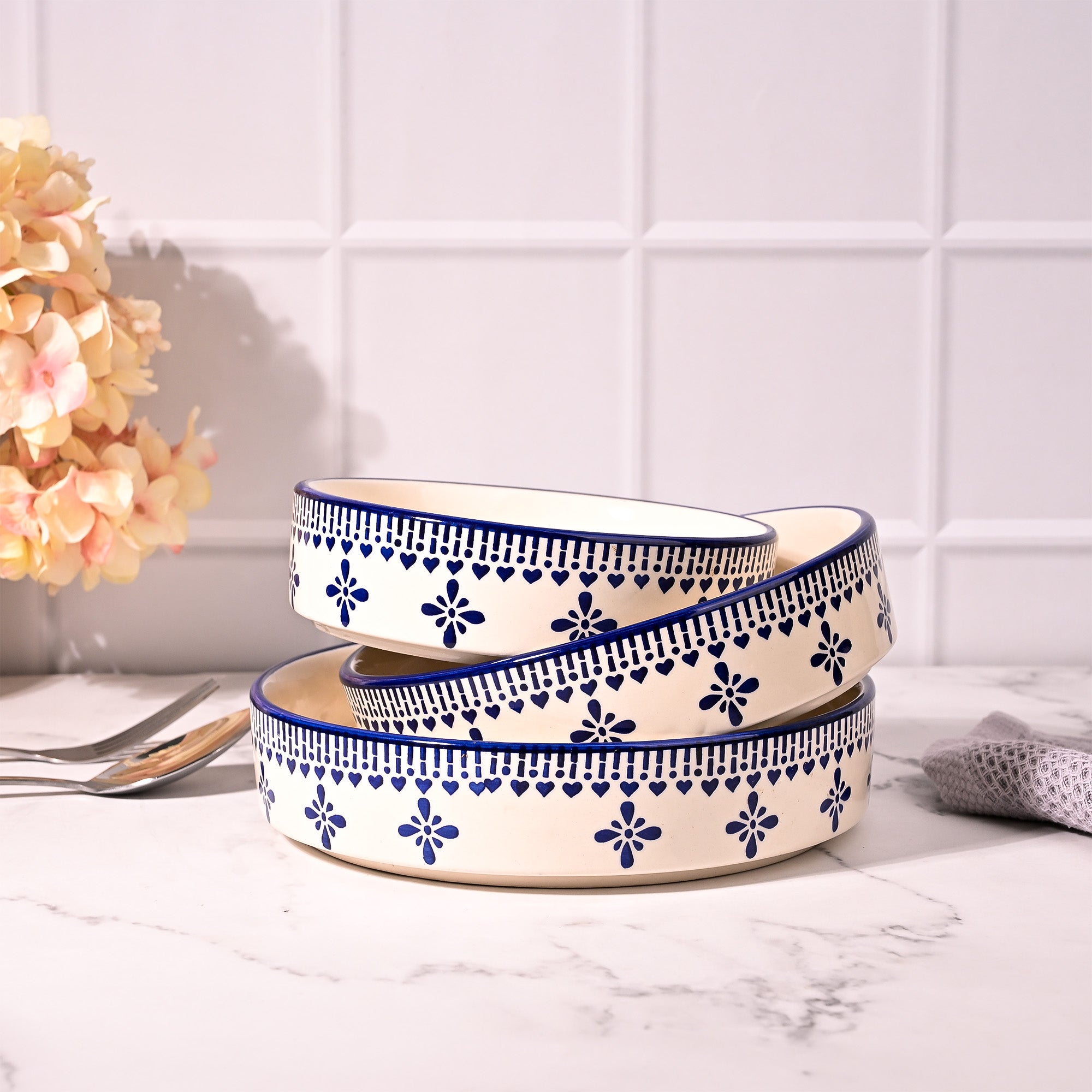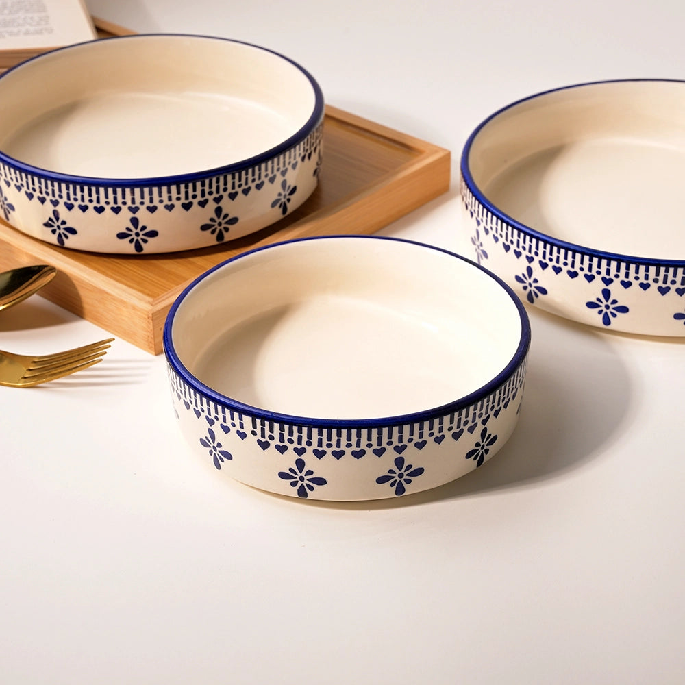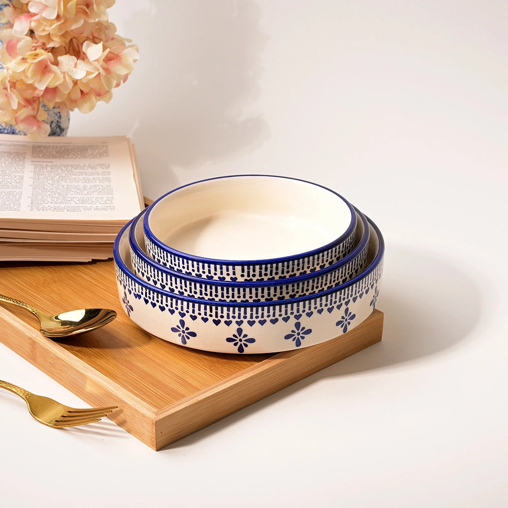 COD availableA bowl set that casually nails everything - look, feel and use. This Blue & White Ceramic Bowl Set carries a clean and calming vibe with its rich indigo pattern printed providing a timeless aura for your table. The smooth finish is just right in your hand, easy to hold, and easy to love. Plus, it's microwave and dishwasher-friendly, so you don't have to think twice before using it in everyday life. The best part? These bowls have a beautiful colour combination of blue and white and come in three super handy sizes Large, Medium, and Small, so you are always sorted for all occasions. From serving curries to salads or even snacks, and noodles. You've got the right size bowl for everything.