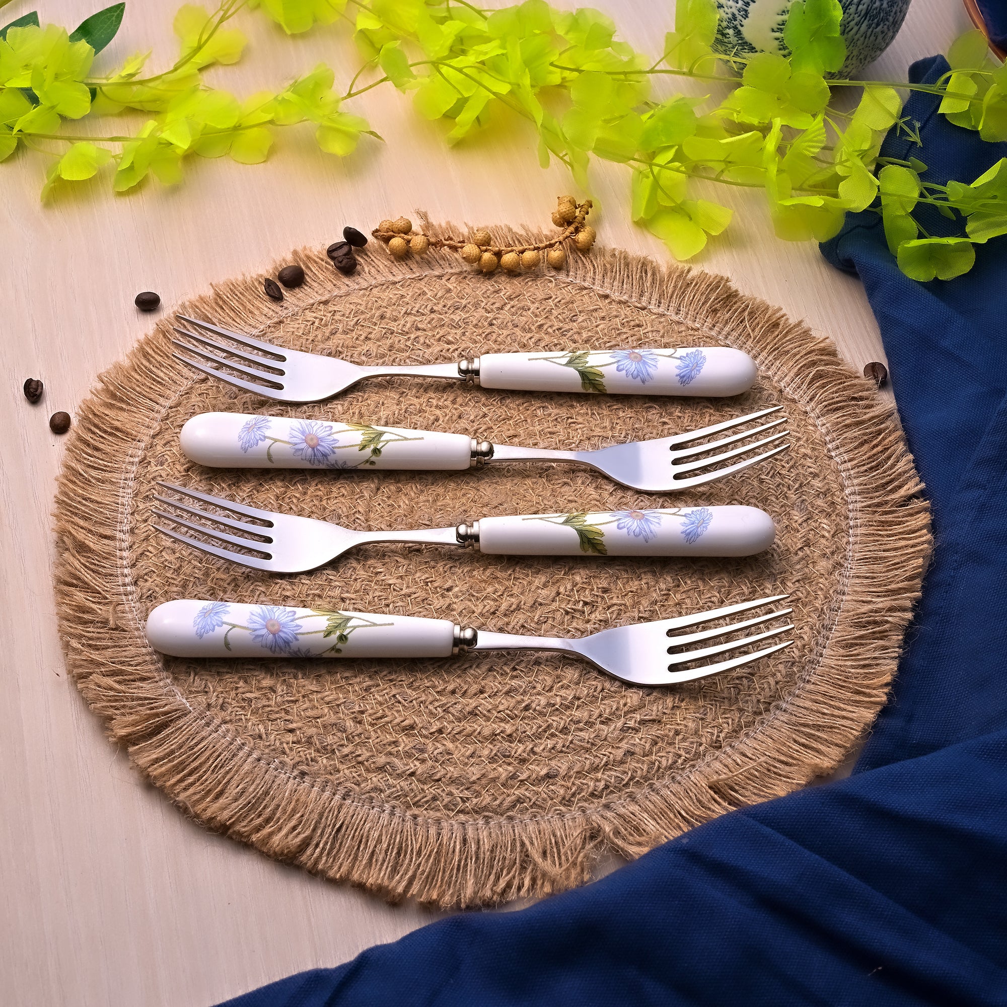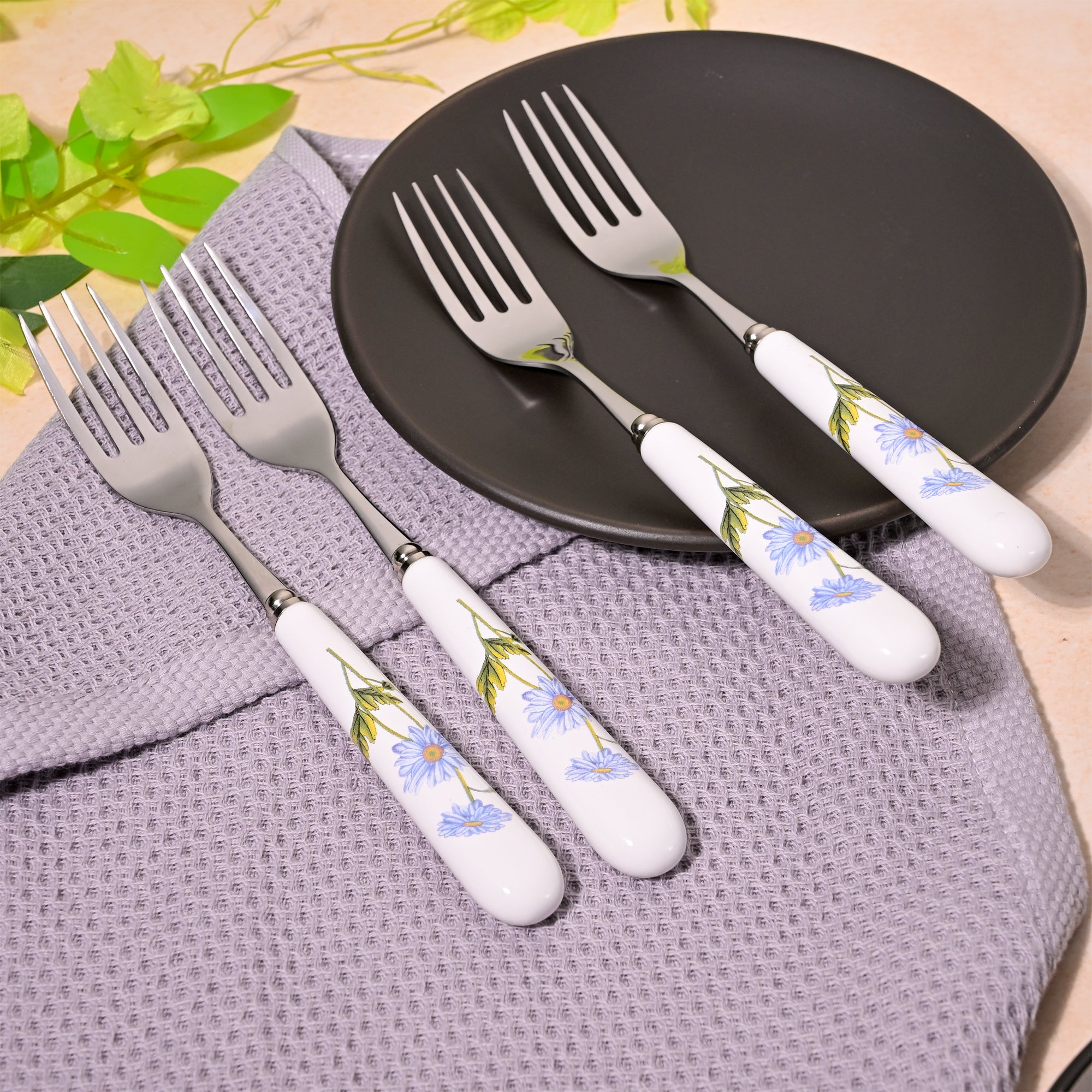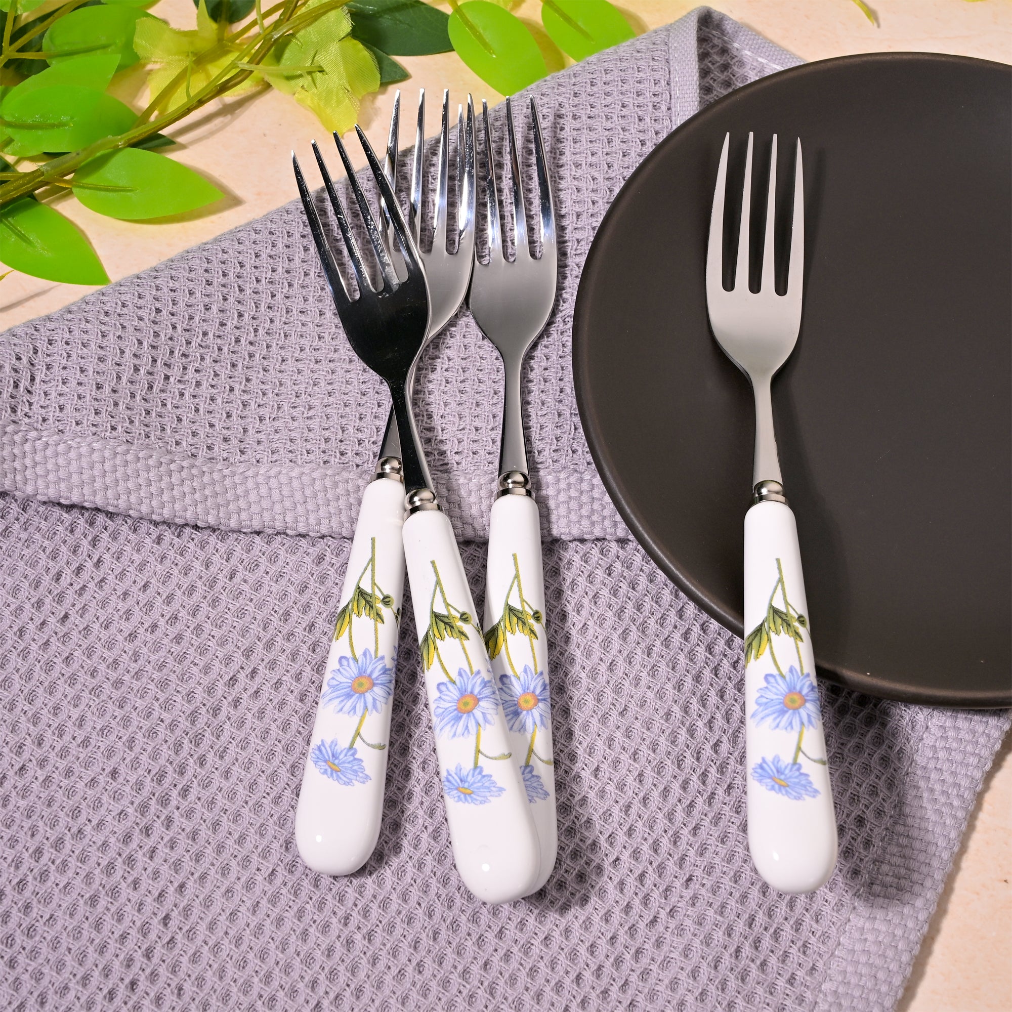 Ceramic Handled Daisies Design Forks (Set of 4)