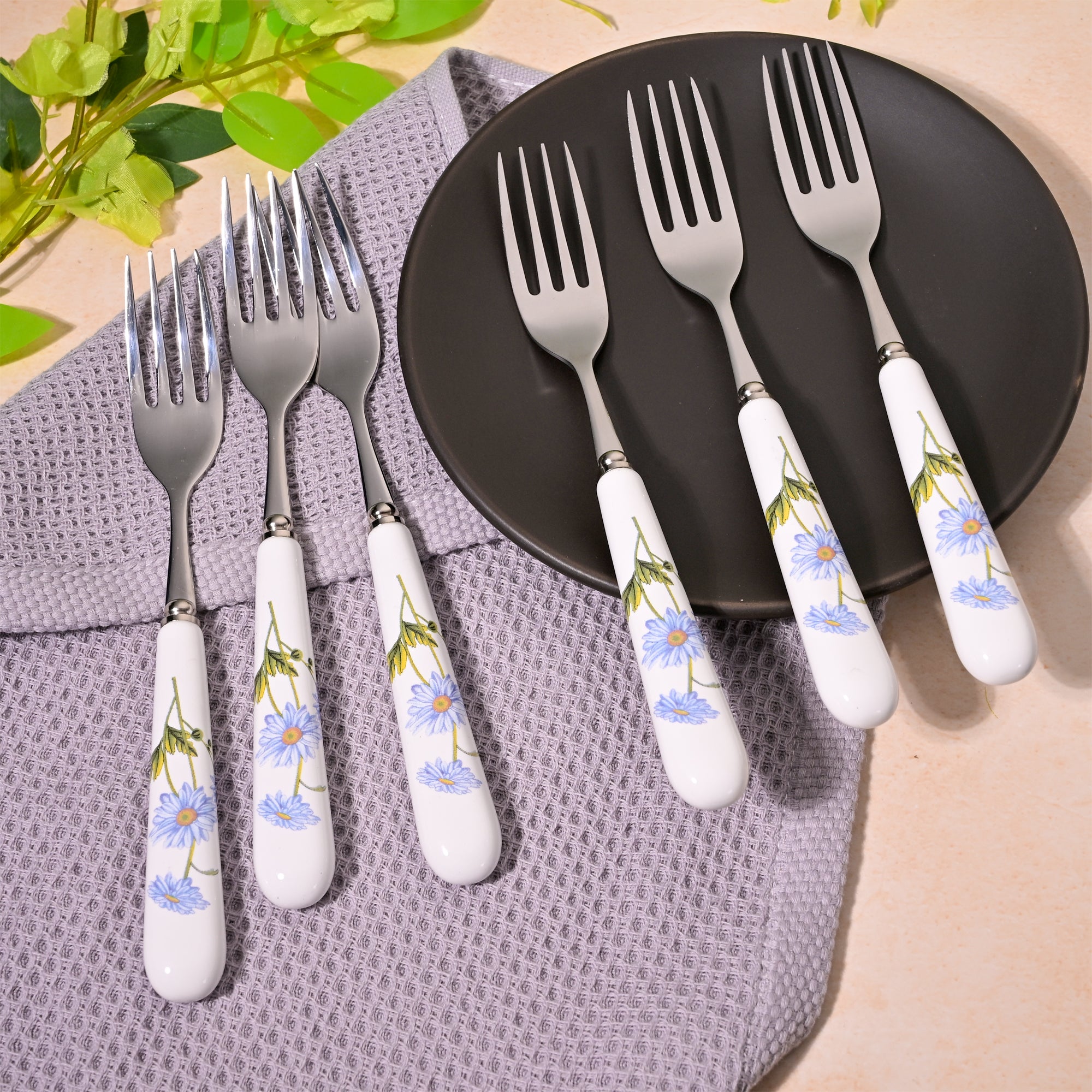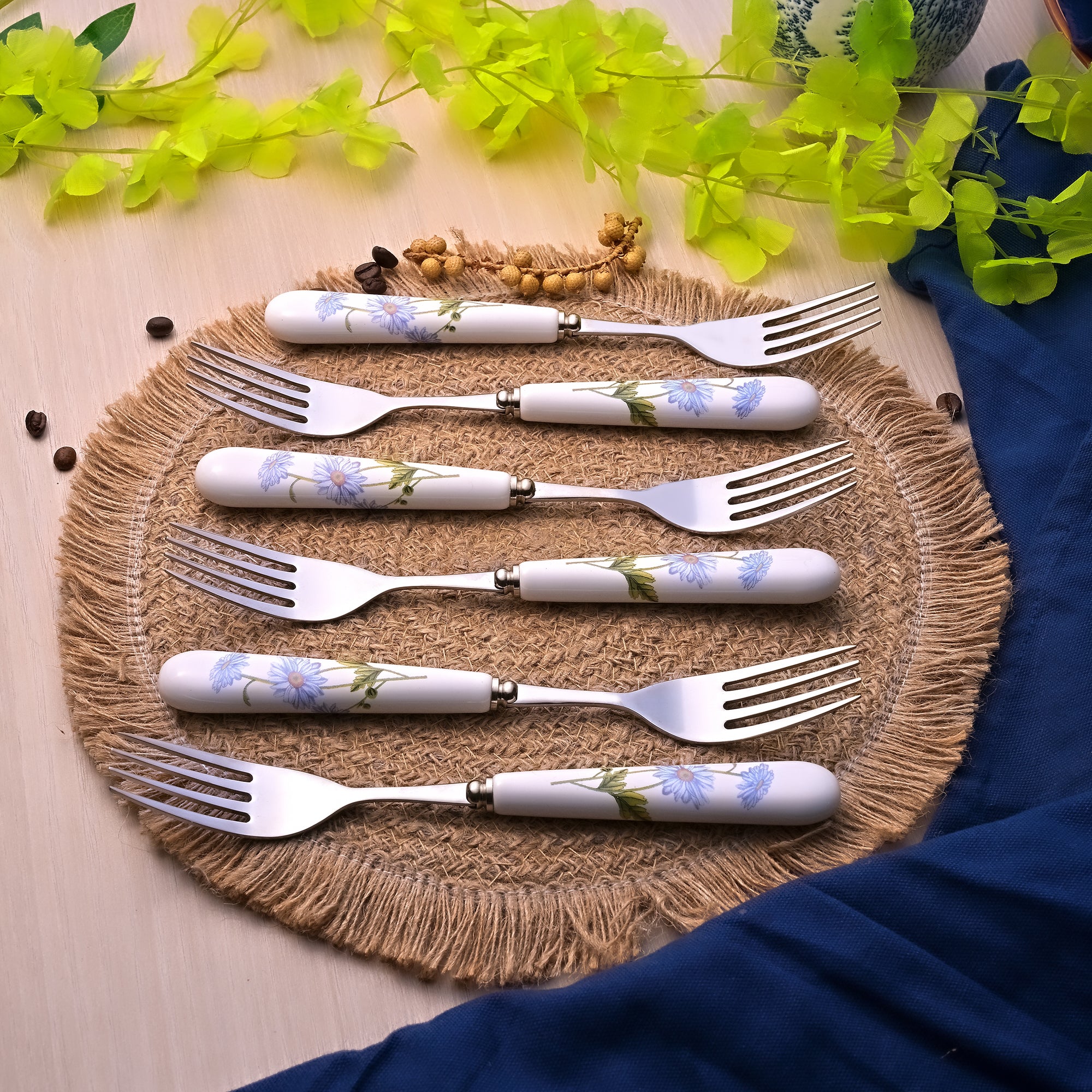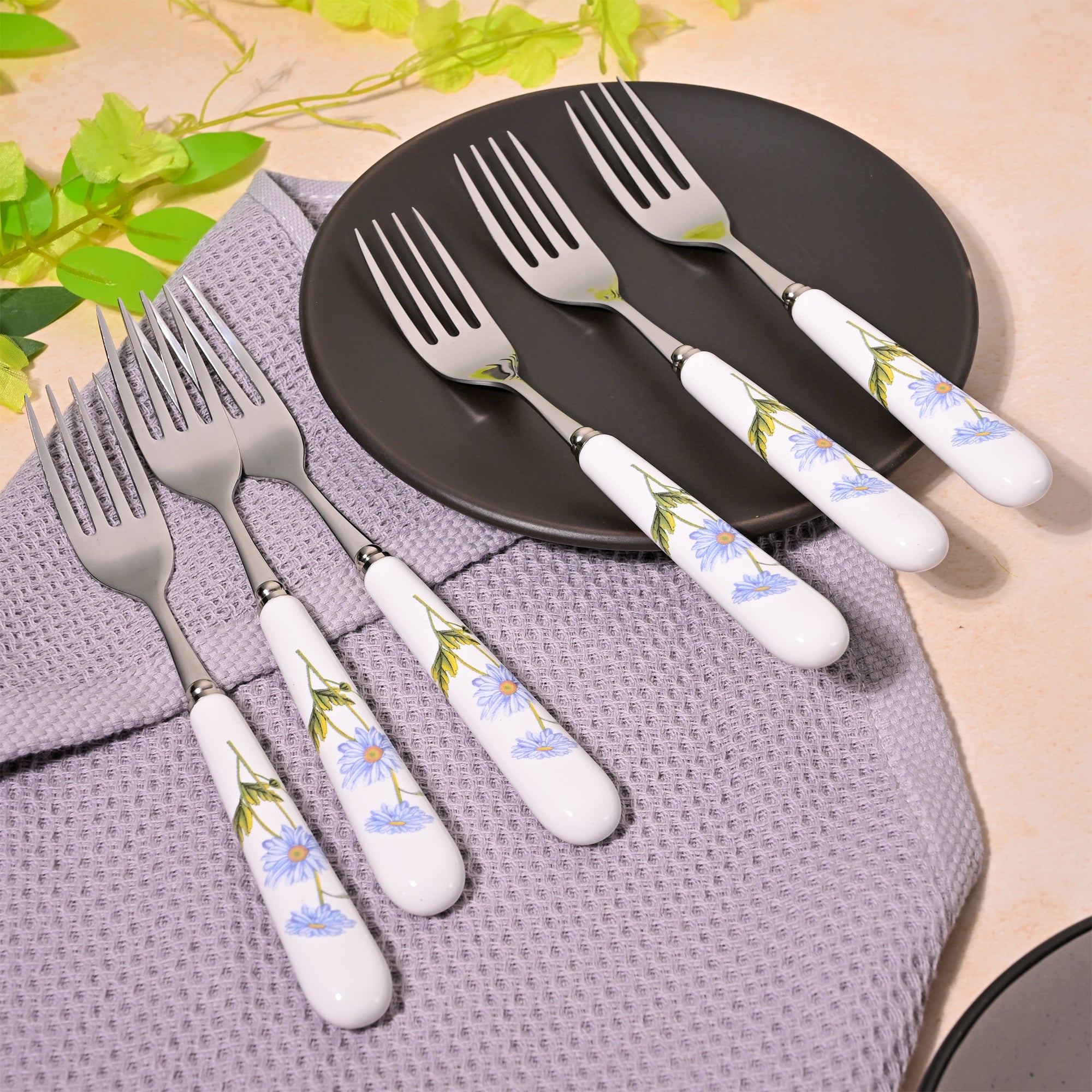 Ceramic Handled Daisies Design Forks (Set of 6)