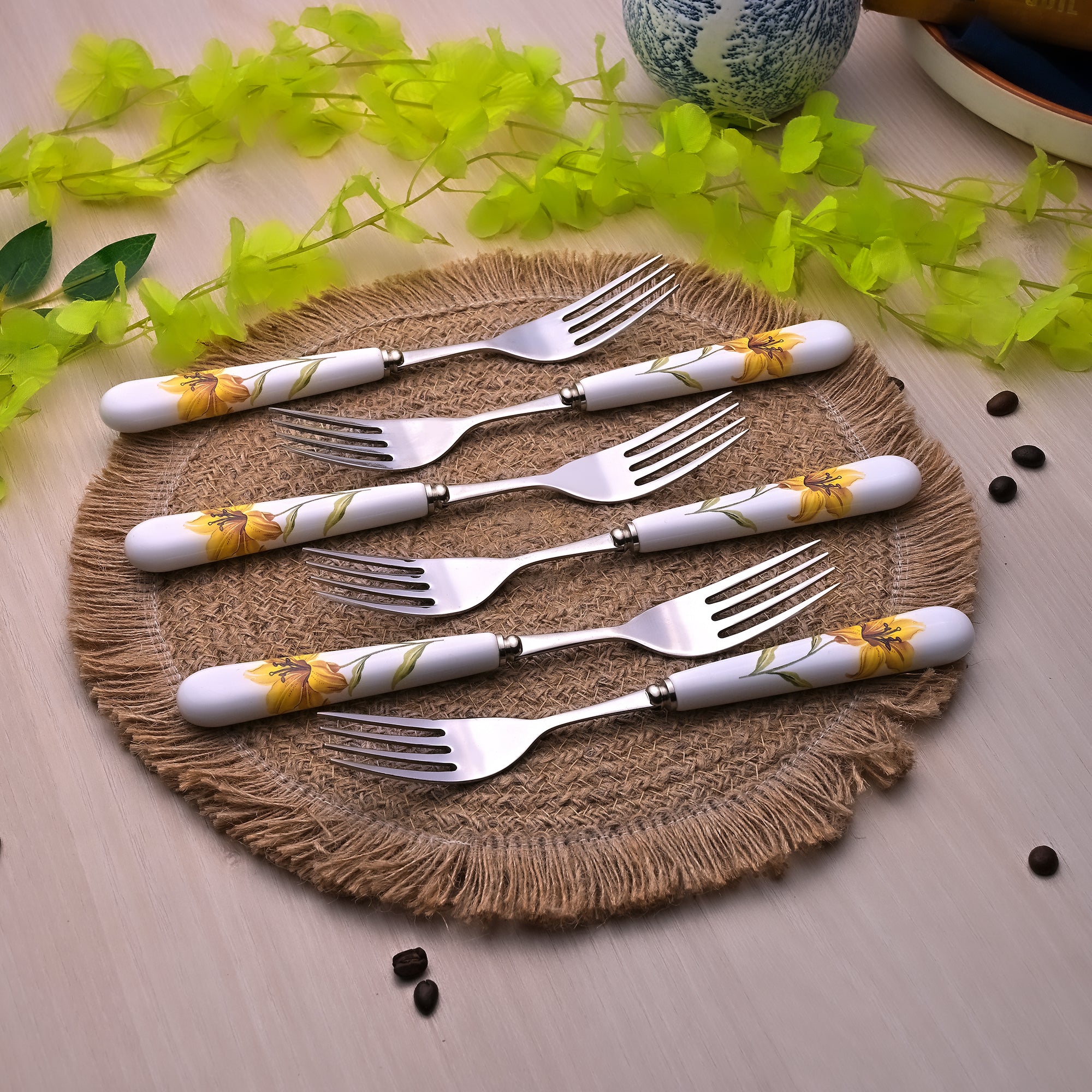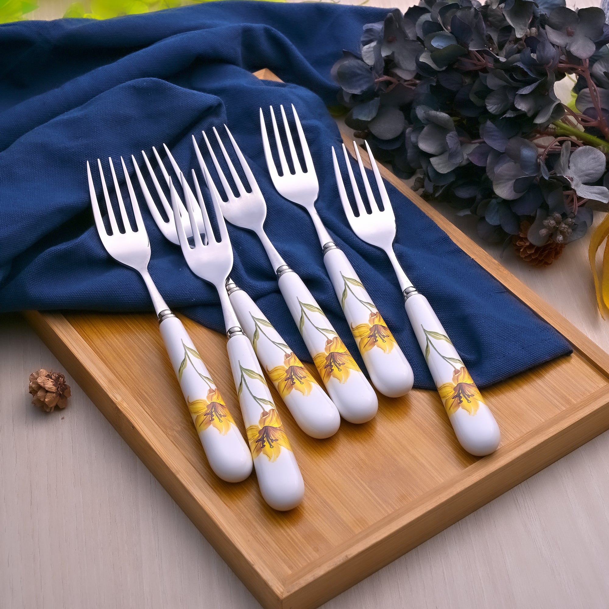 Ceramic & Steel Sunray Floral Forks (Set of 6)