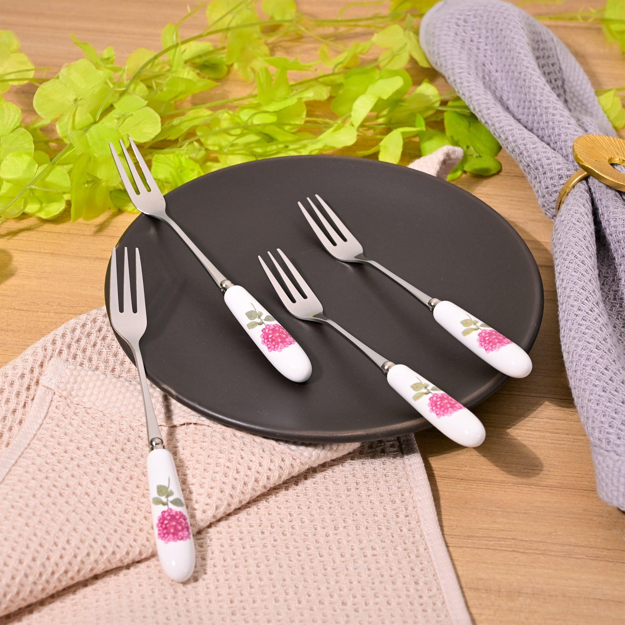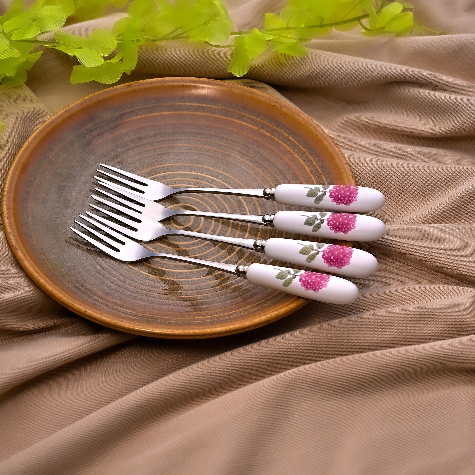 Chic Ceramic Ruffled Pink Forks (Set of 4)