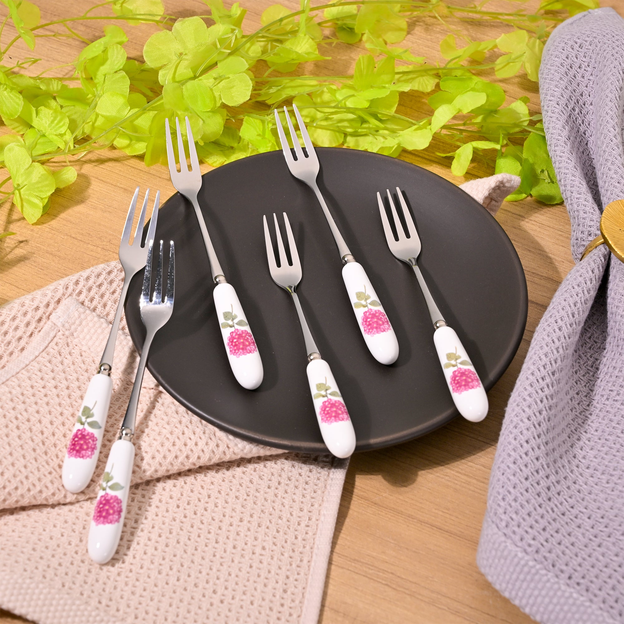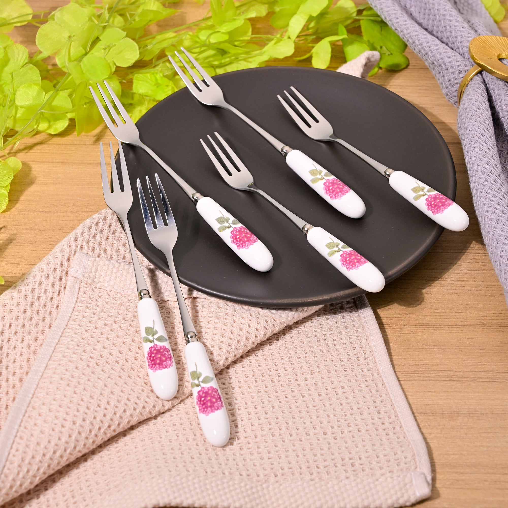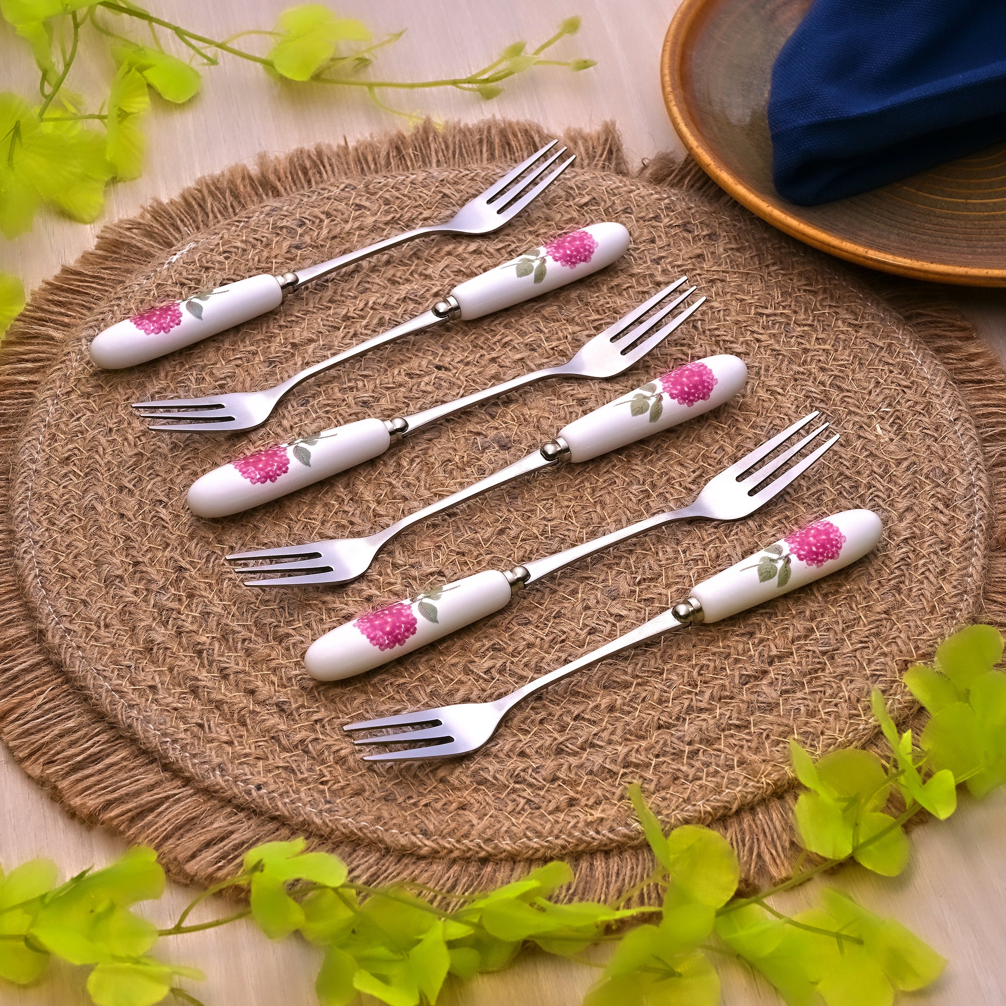 Chic Ceramic Ruffled Pink Forks (Set of 6)