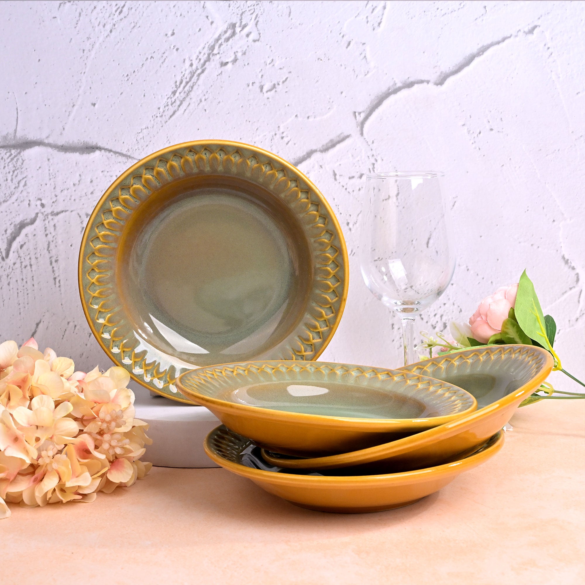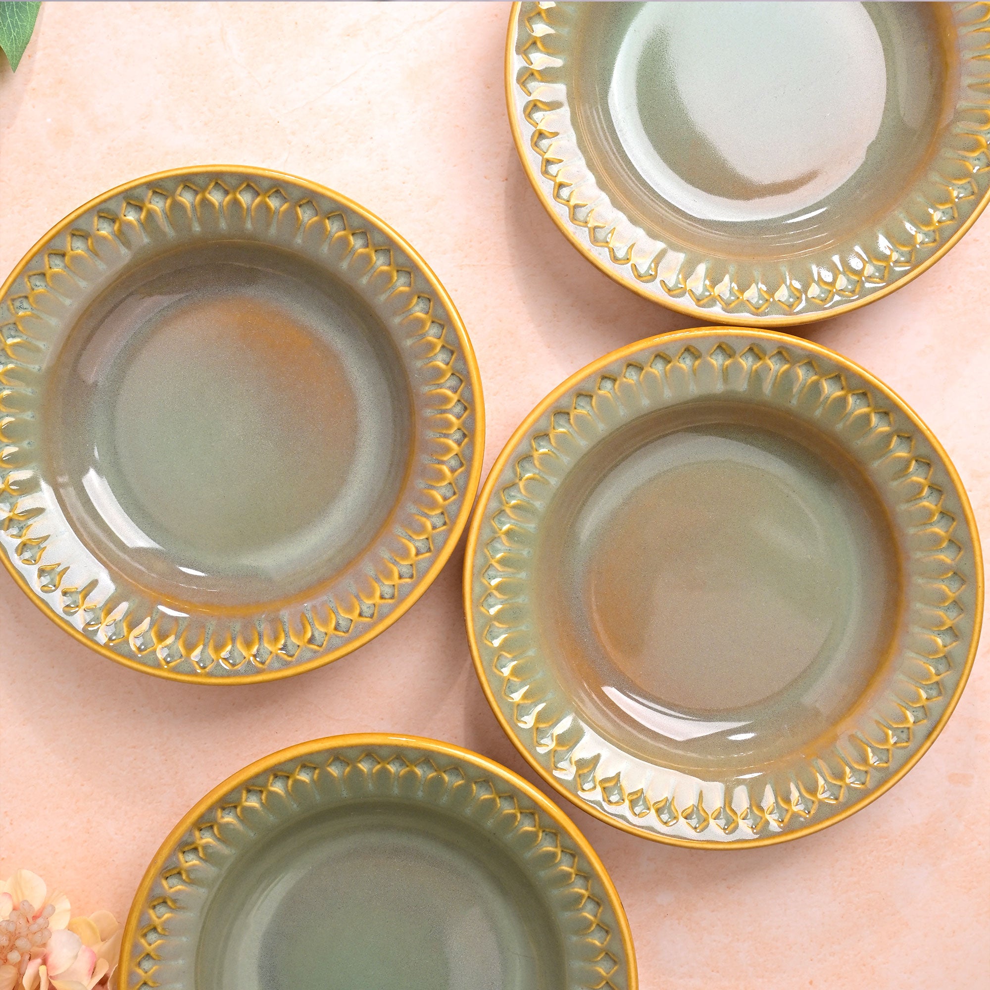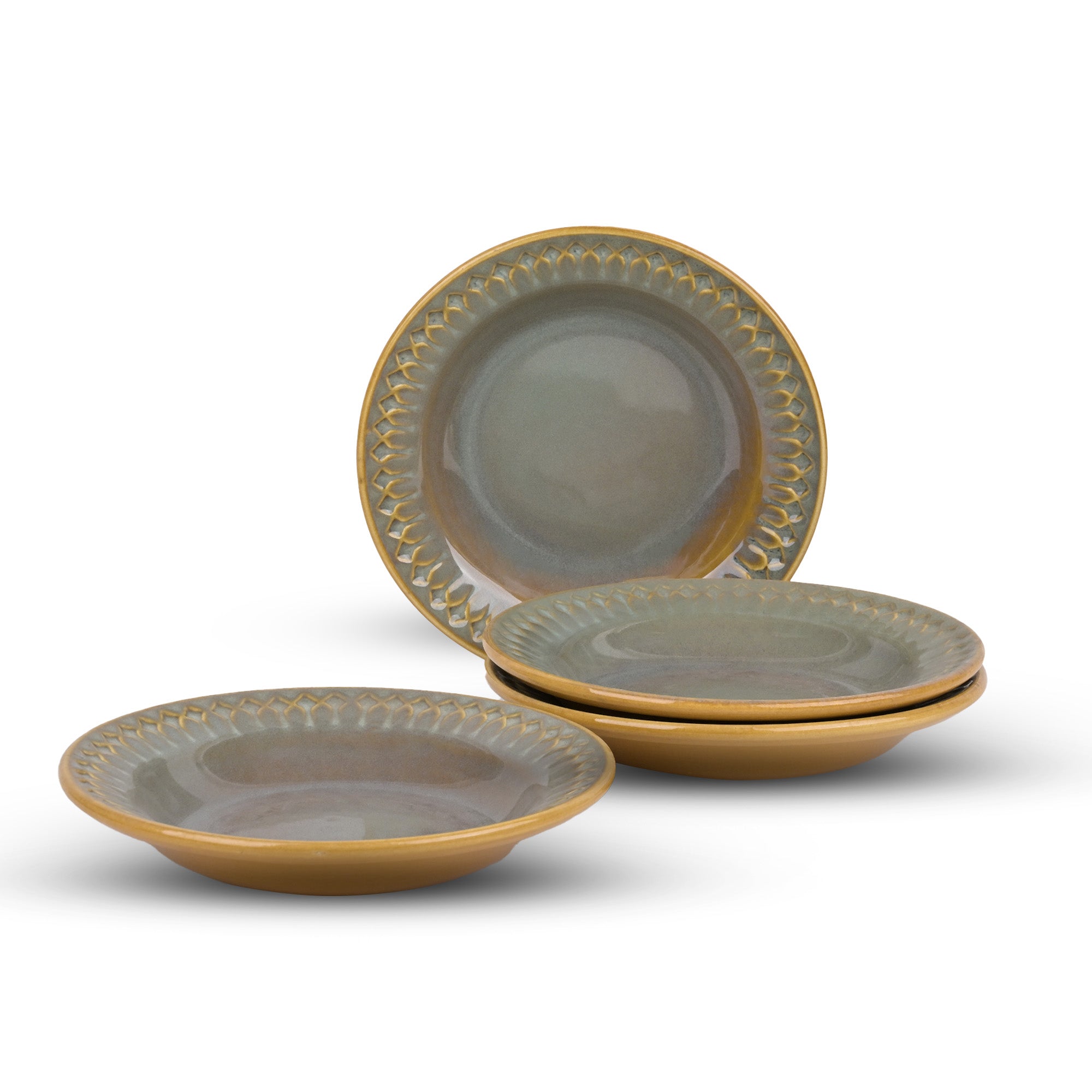 Chic Embossed Ceramic Pasta Plates Set of 4 (7.5 inch)