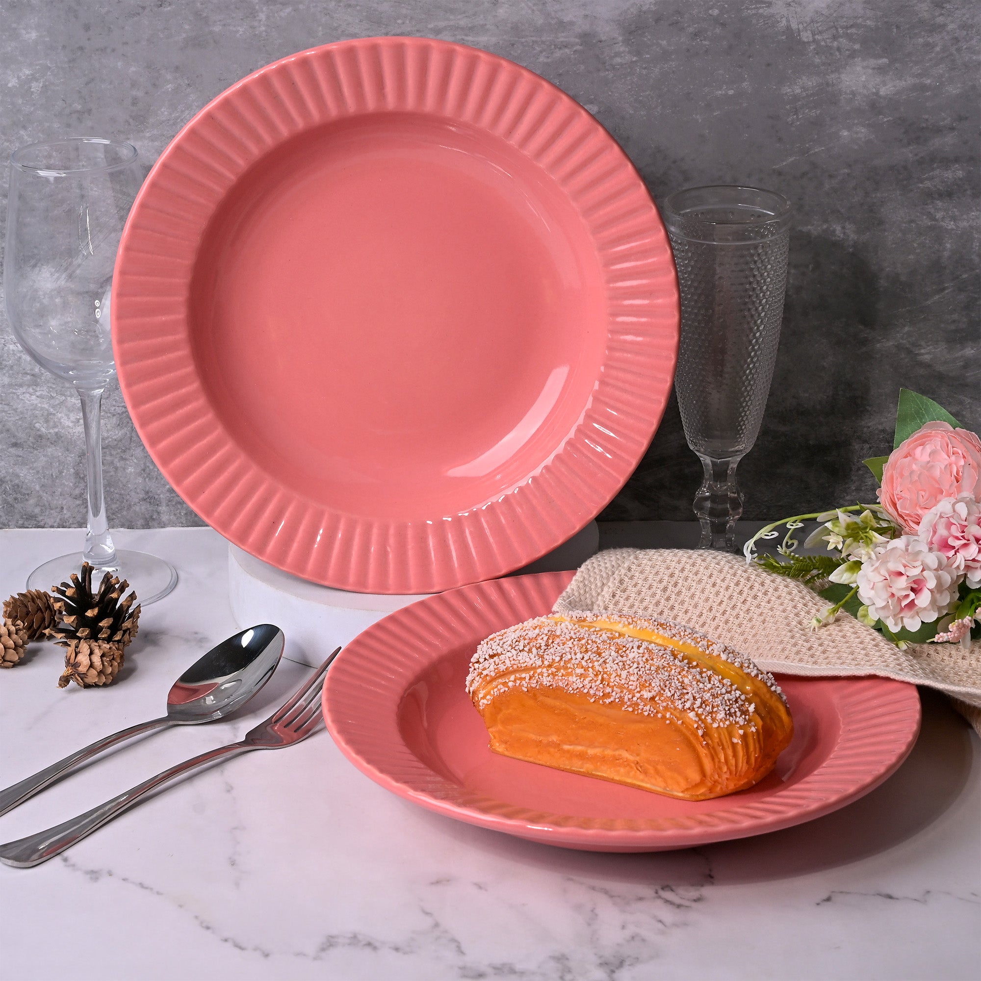 Classic Pink Ceramic Pasta Plate Set of 2 (10 inch)