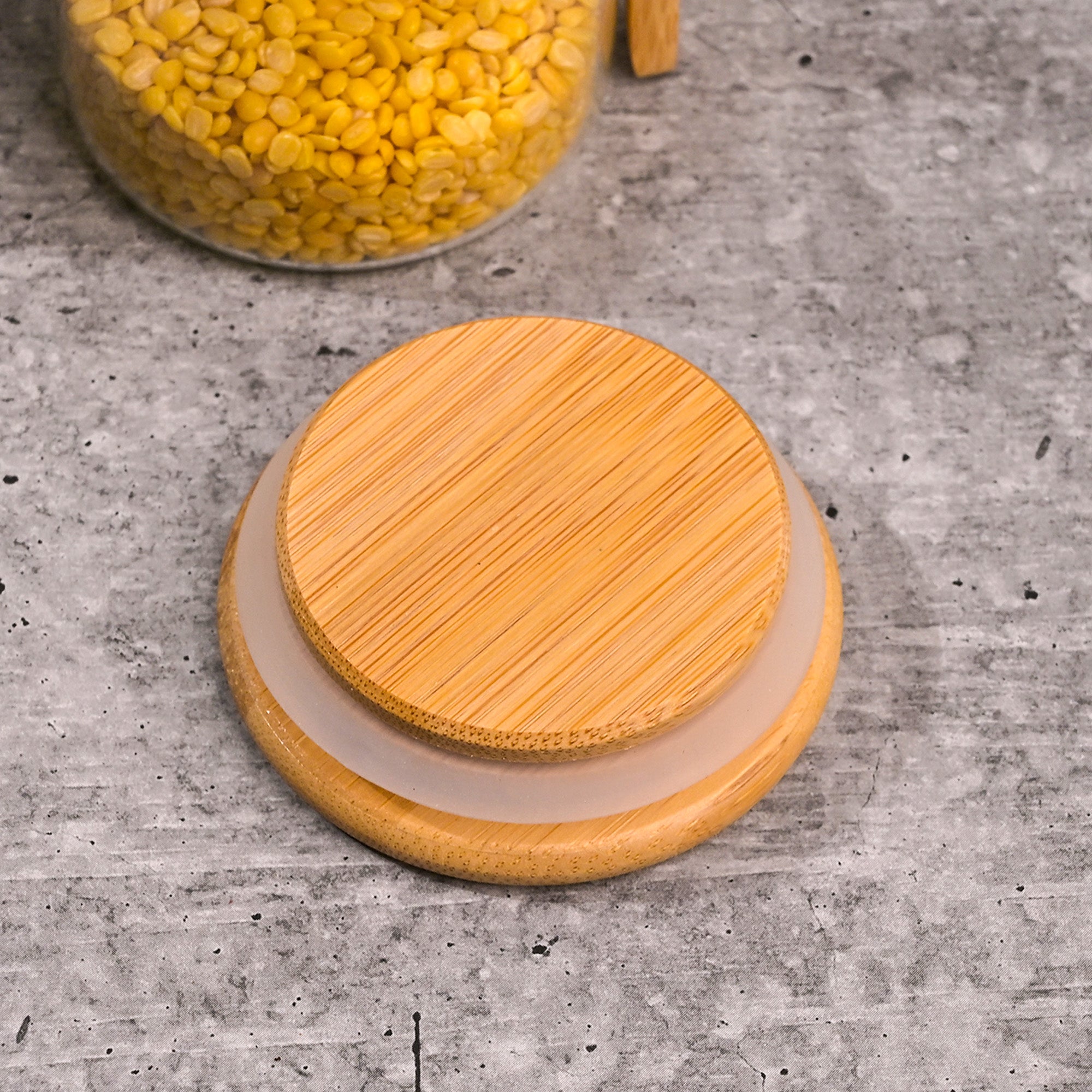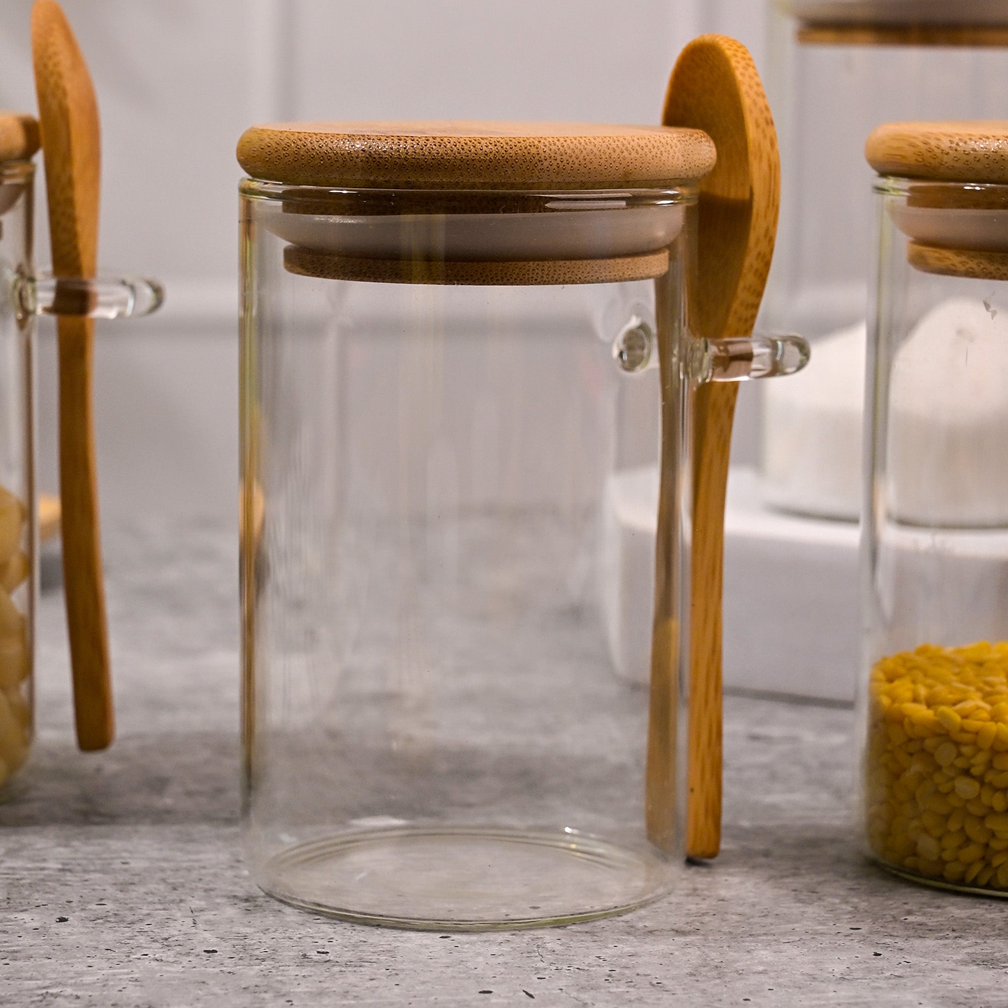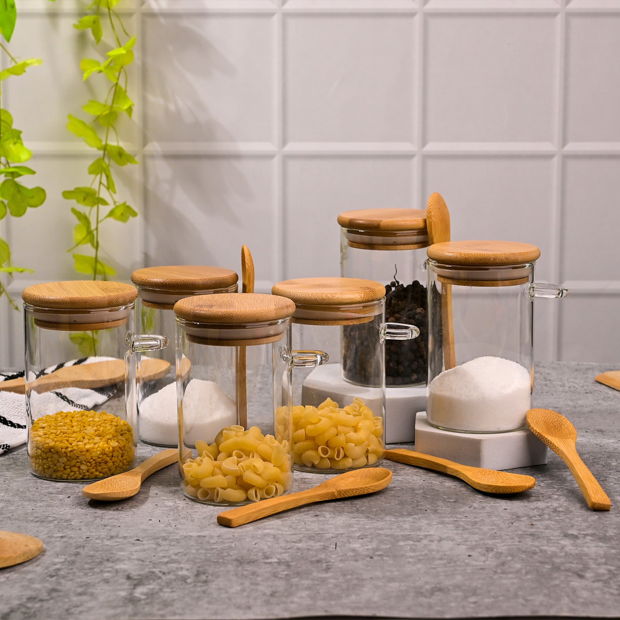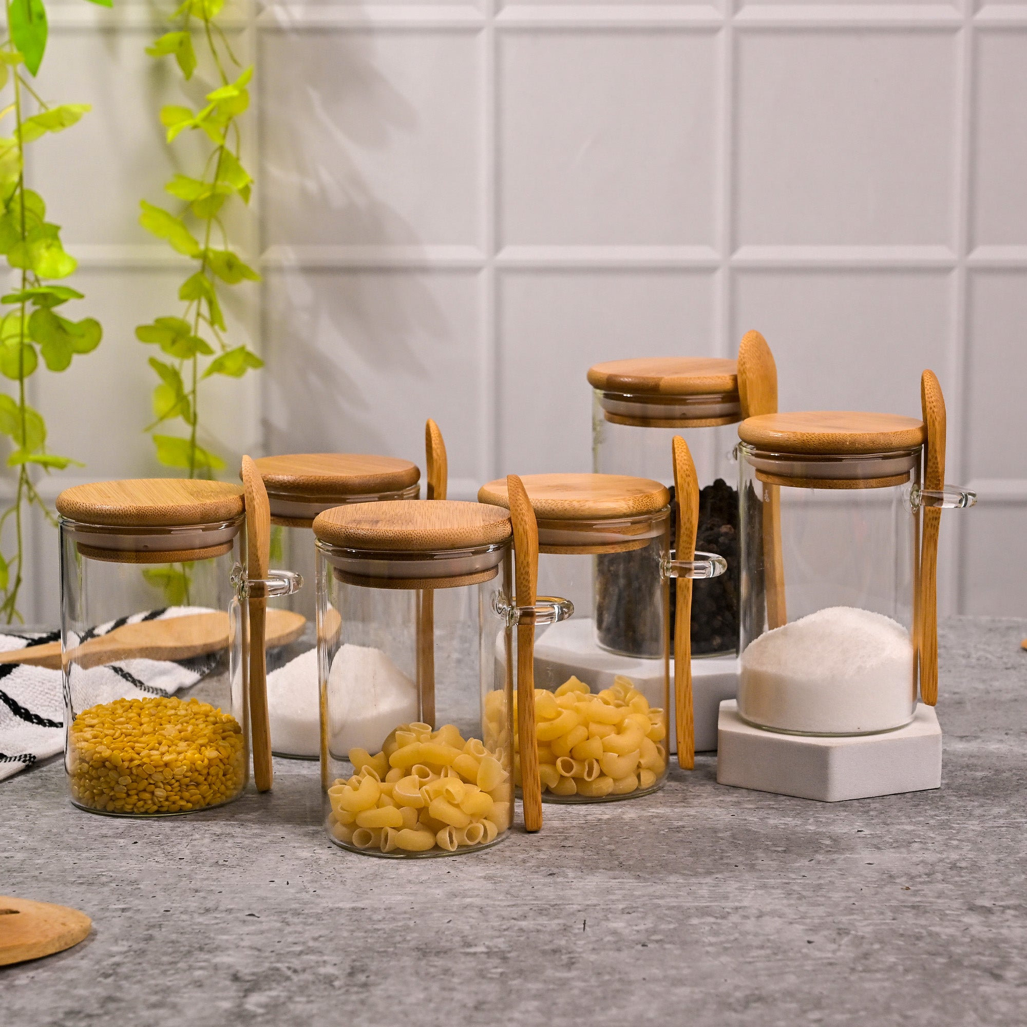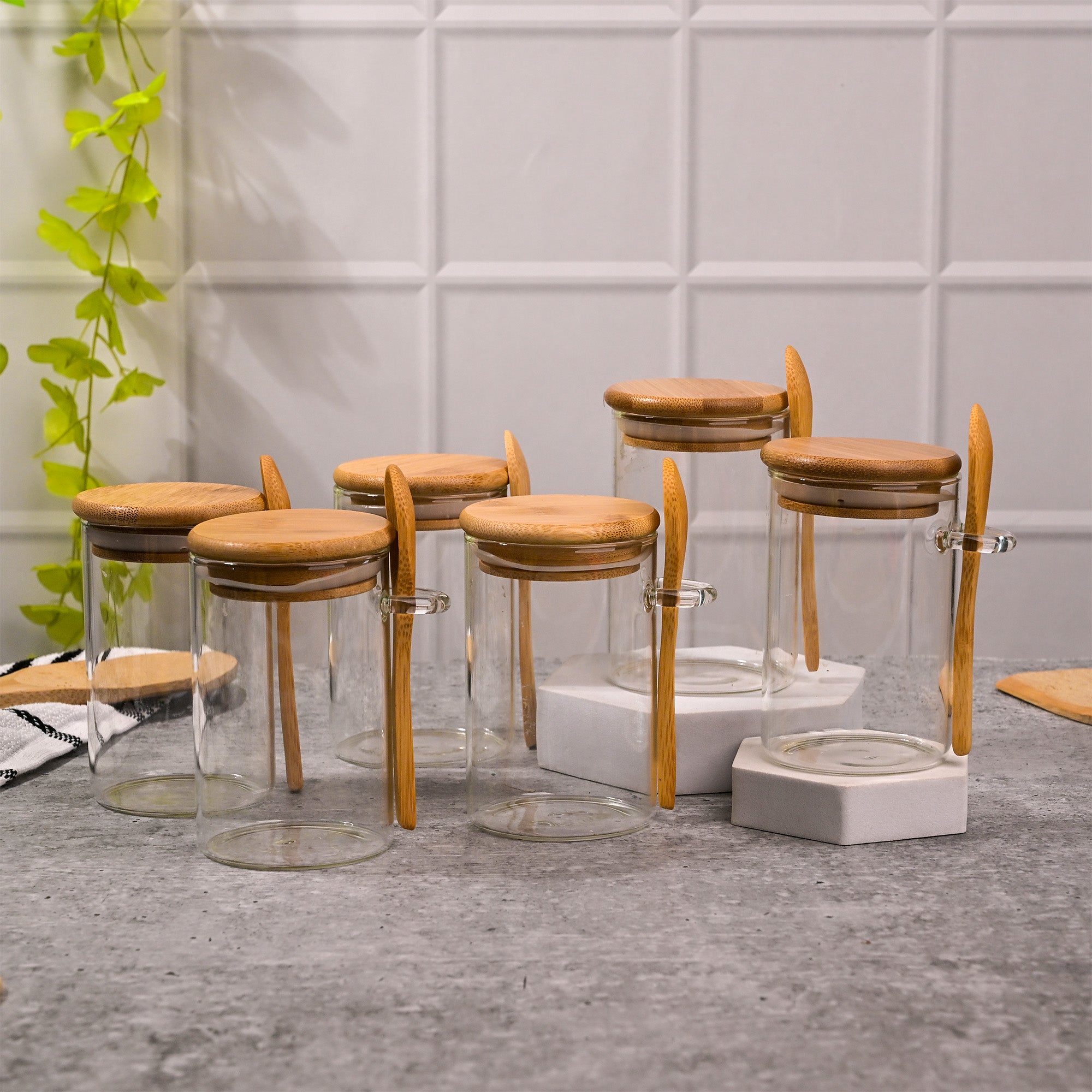 Classy Glass Cup with Wooden Lid and Spoon Set of 6 (300ml)