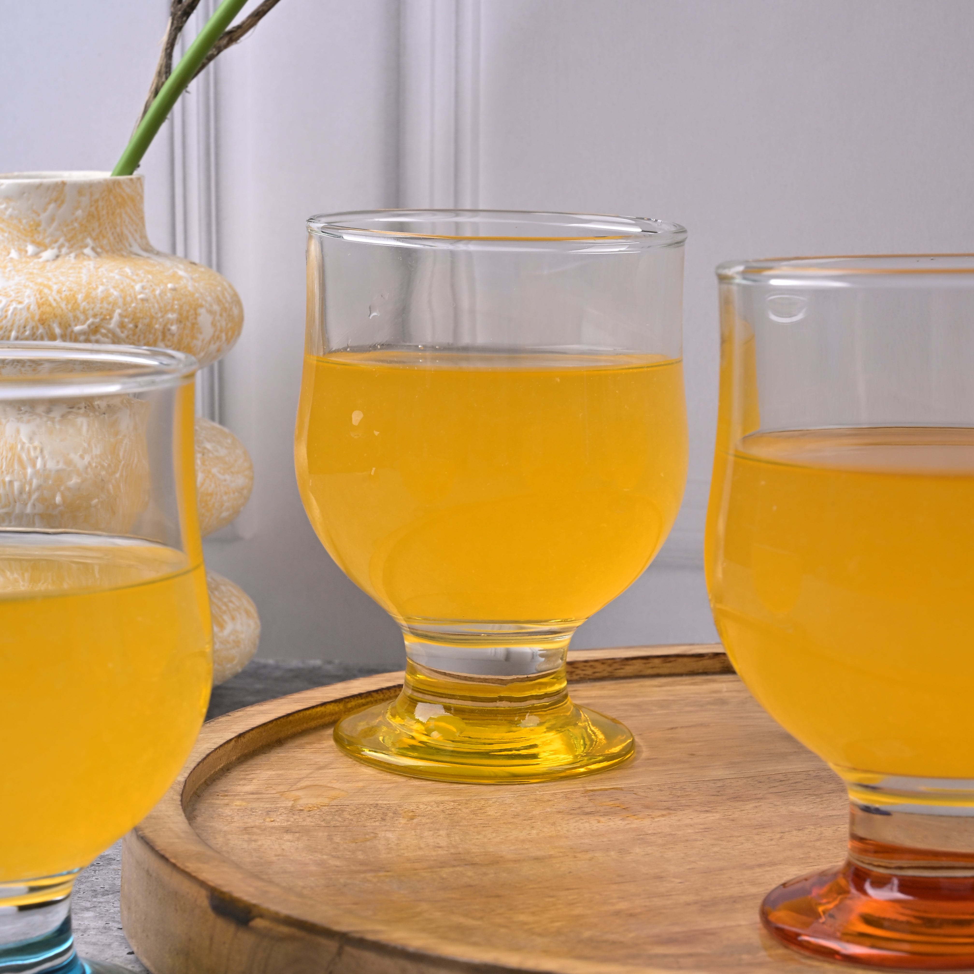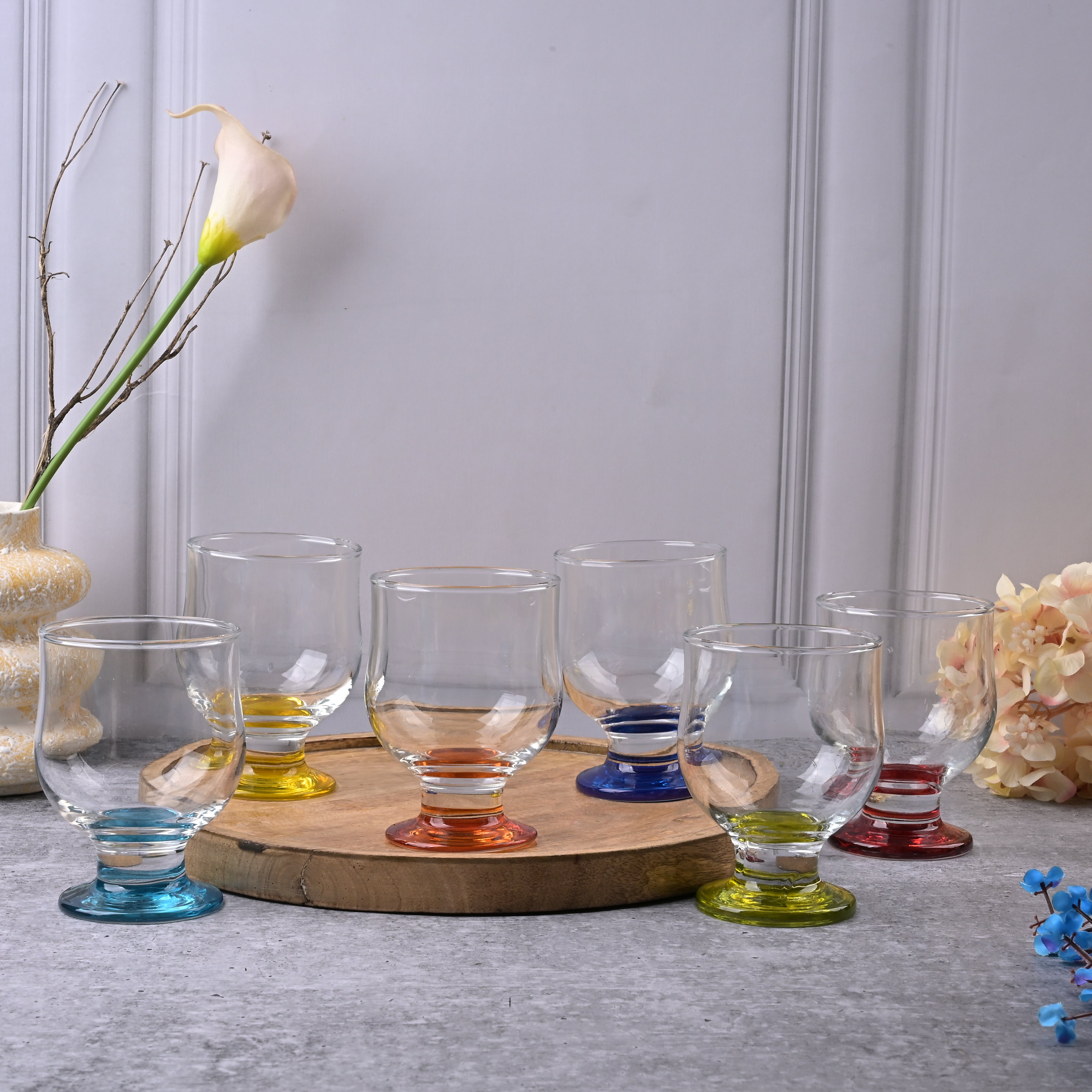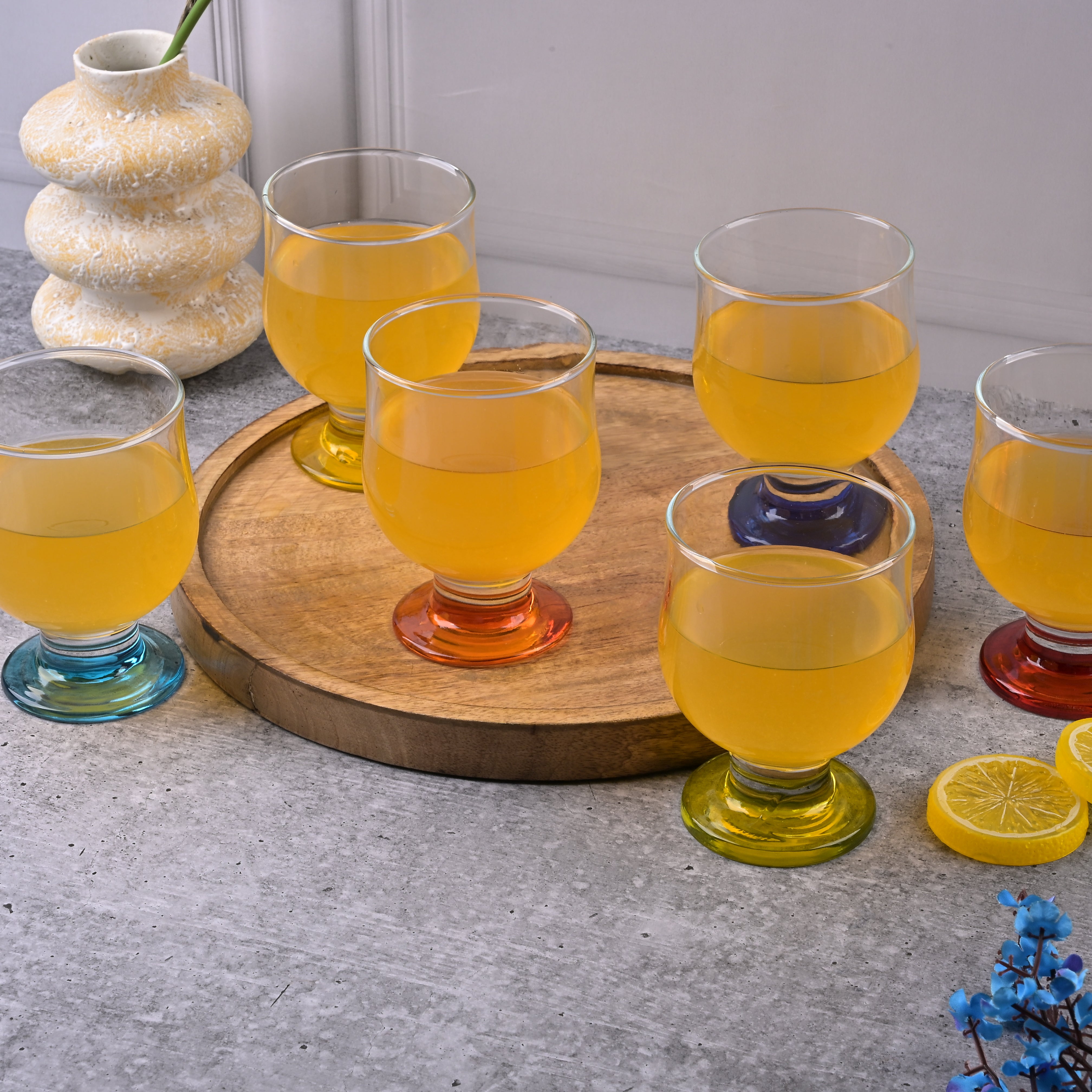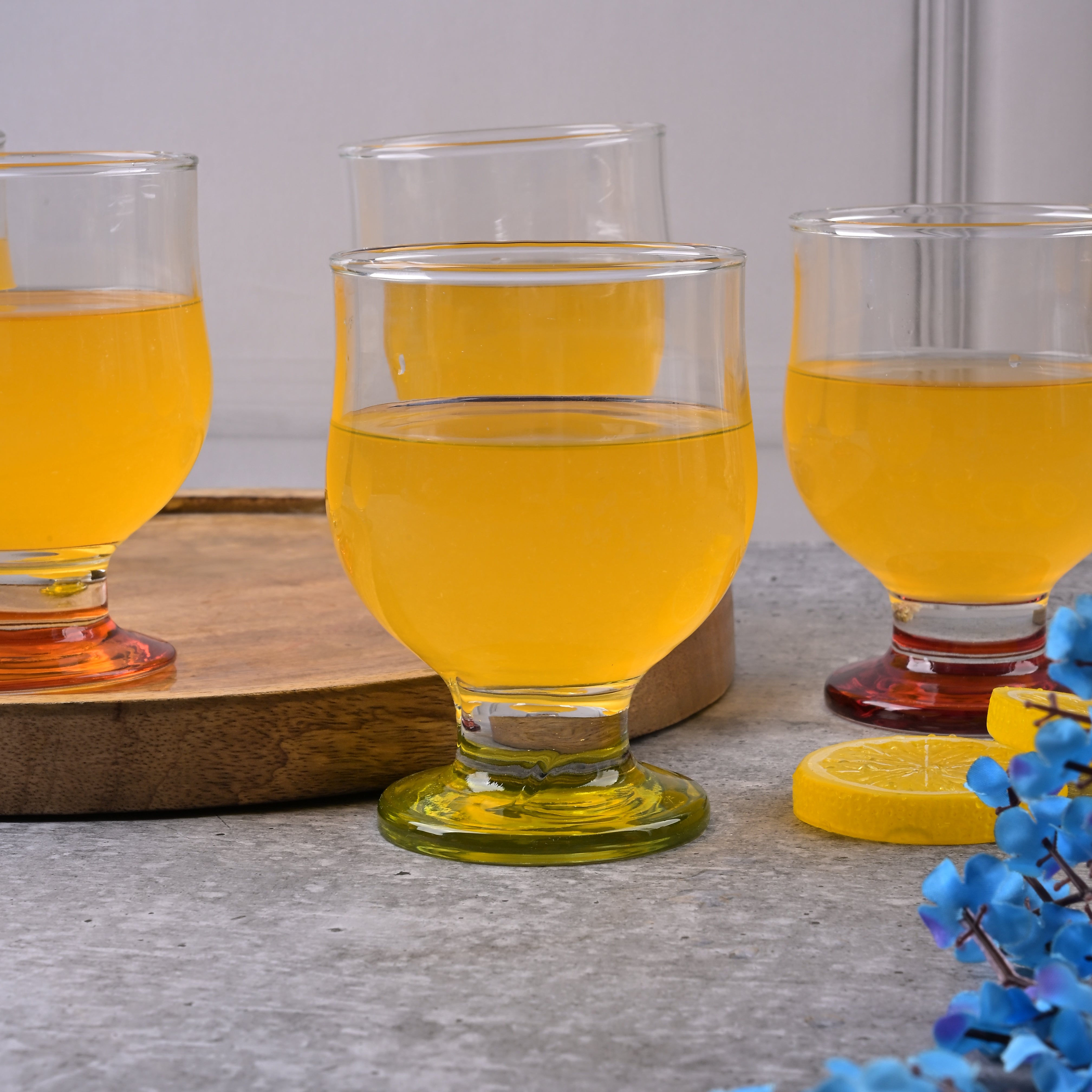 COD availableAdd a splash of fun to your dining experience with this 'Crystal Clear Color Pop Goblet Set of 6'. Each glass features a sturdy, clear bowl with a base tinted in bright blue, orange, green, and more so that every sip feels like a celebration. These goblets are perfect for serving juices, mocktails, or refreshing beverages. Their simple, colourful design will add a playful touch to your table.