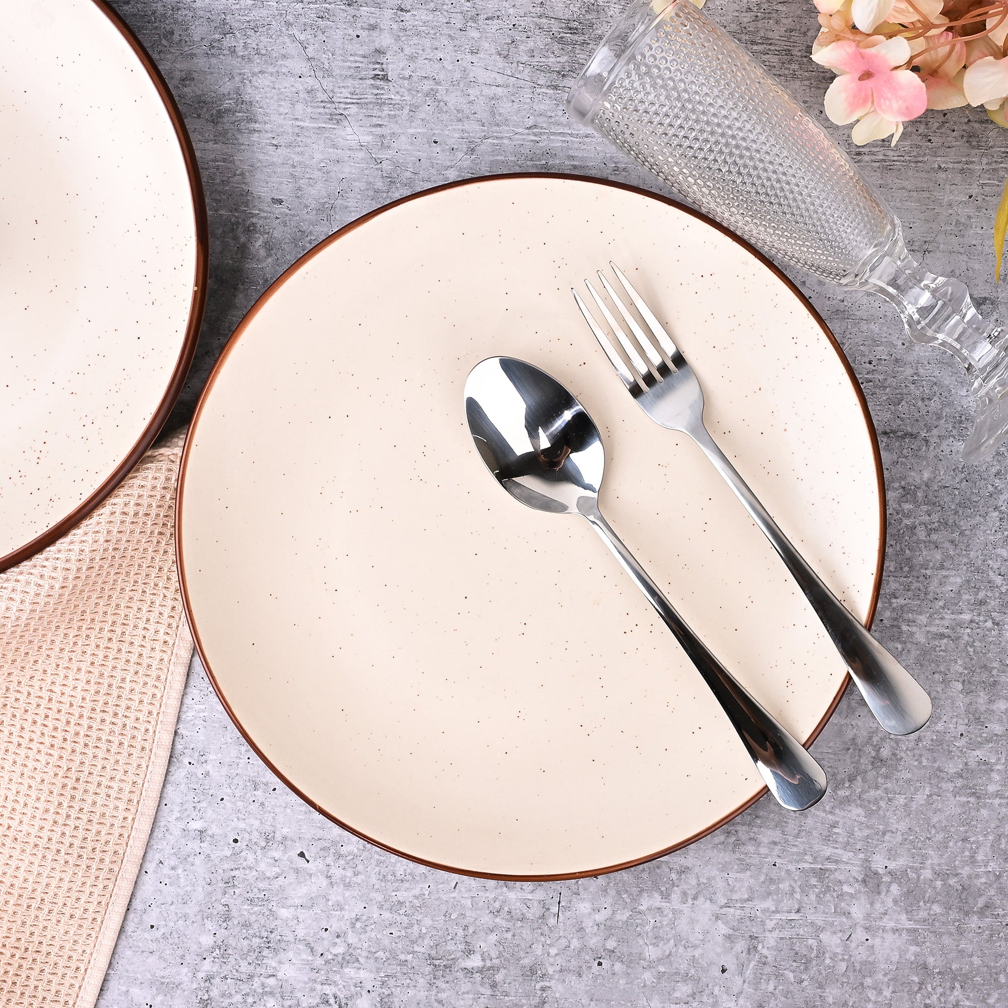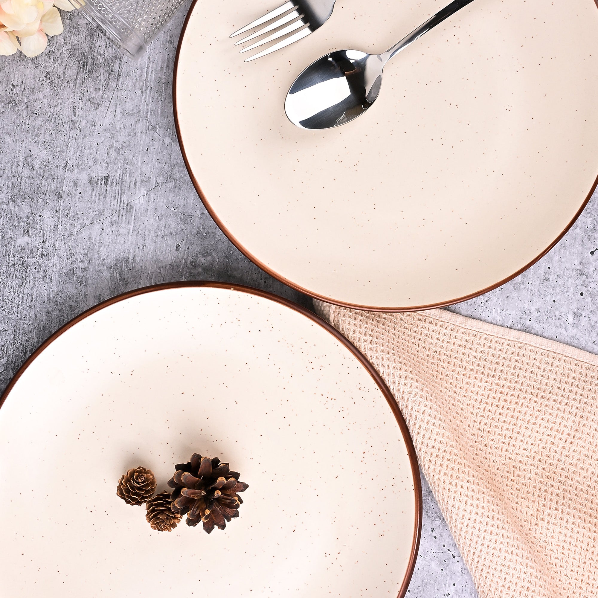 COD availableCan you imagine a plate that feels like a piece of moonlight? These Dotted Black-Rimmed Dinner Plates bring the classy vibe right to the table. Their soft base flecked with black dots and sleek black rims make them stylish without being over the top. Perfect for serving your everyday meals, whether it's rice and curry, pasta, or anything you love. These plates are made with good-quality ceramic; you can use them almost daily, and they will serve you nicely without losing their charm, as they are elegant enough for special moments. Add this set to your collection to bring a sprinkle of moonlight magic to every meal.