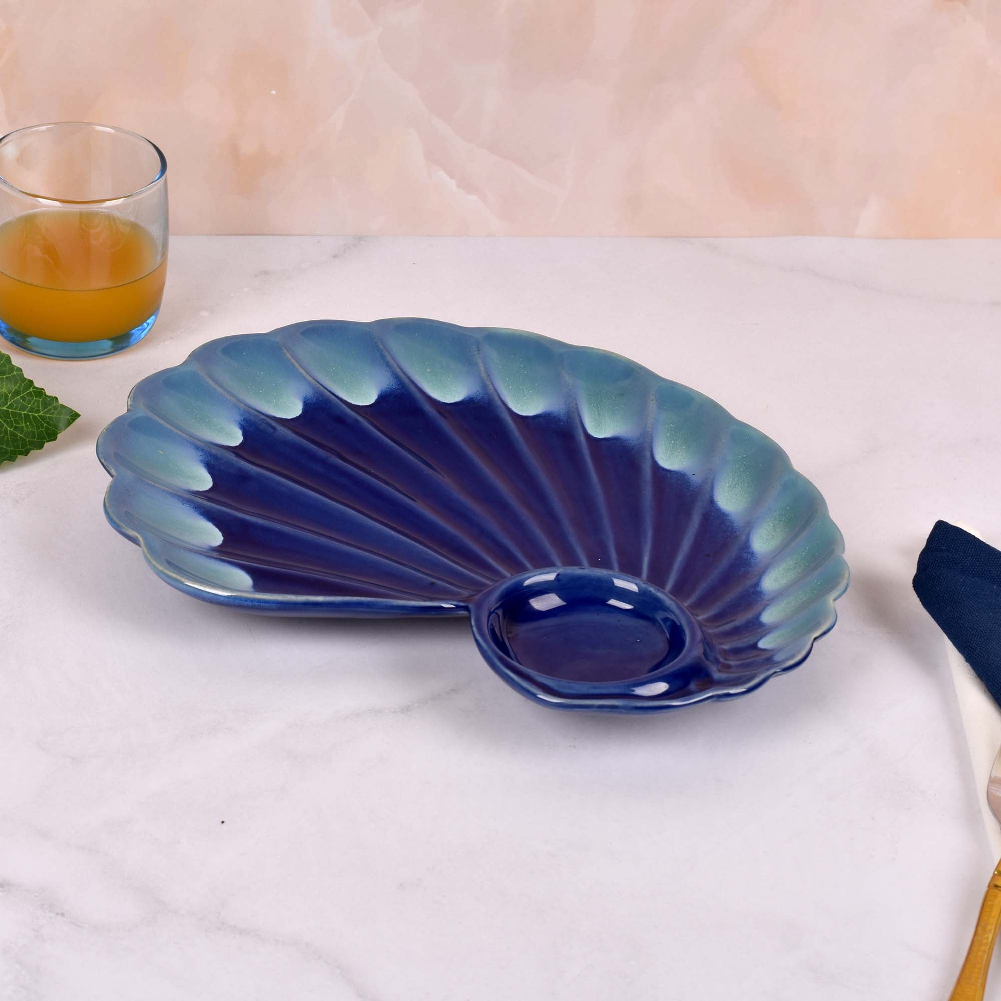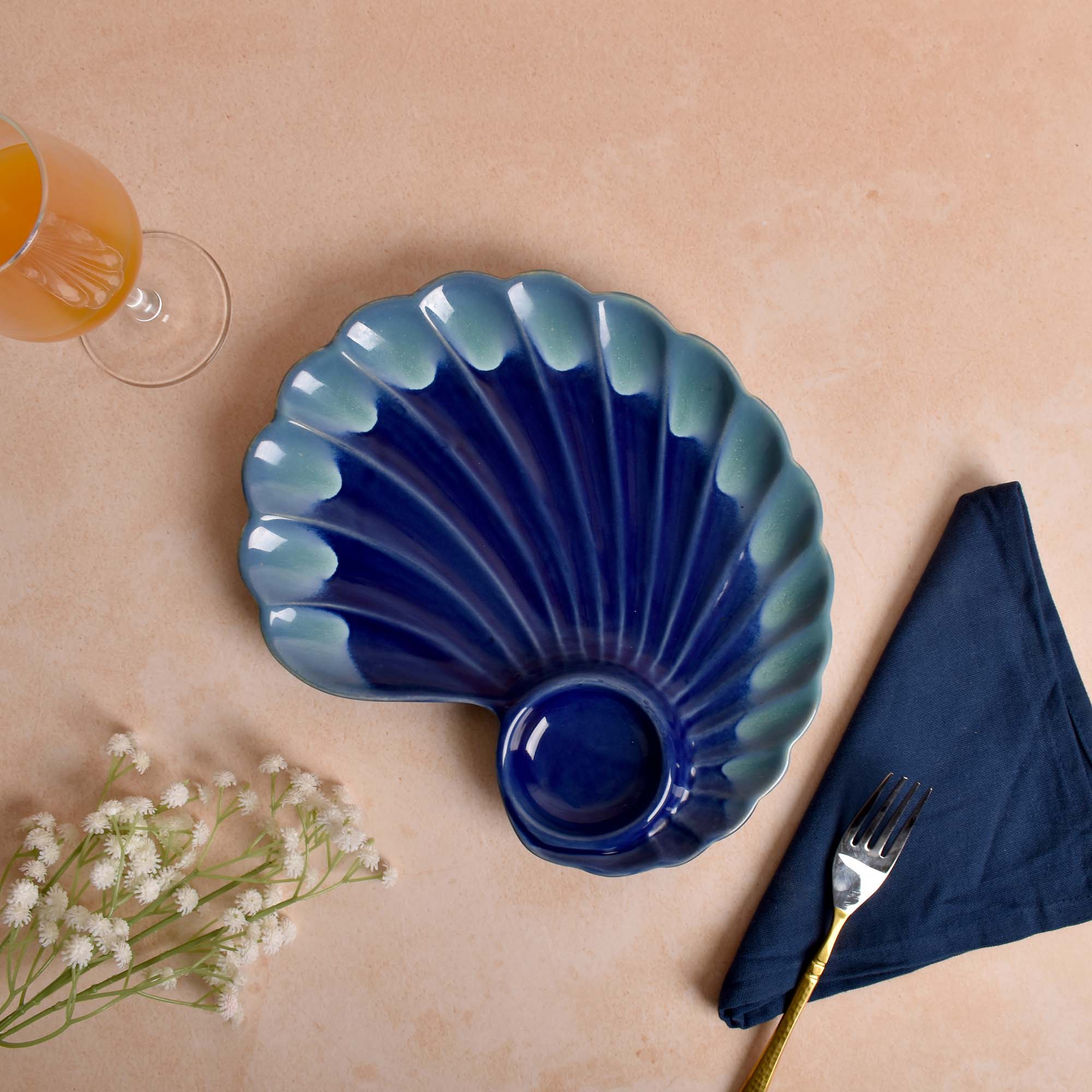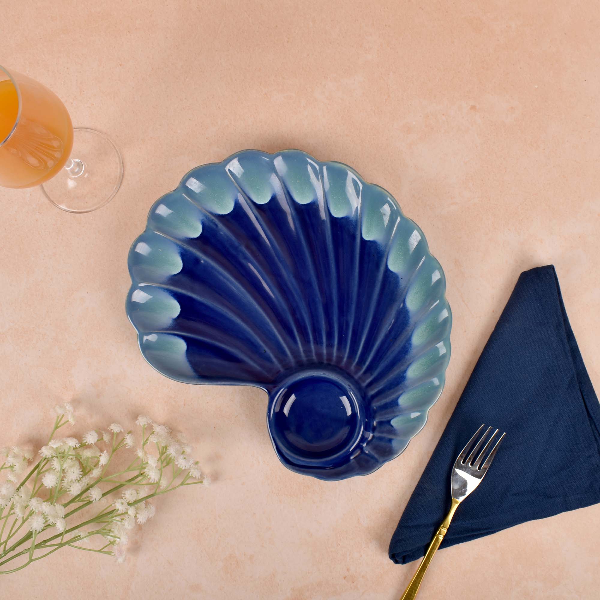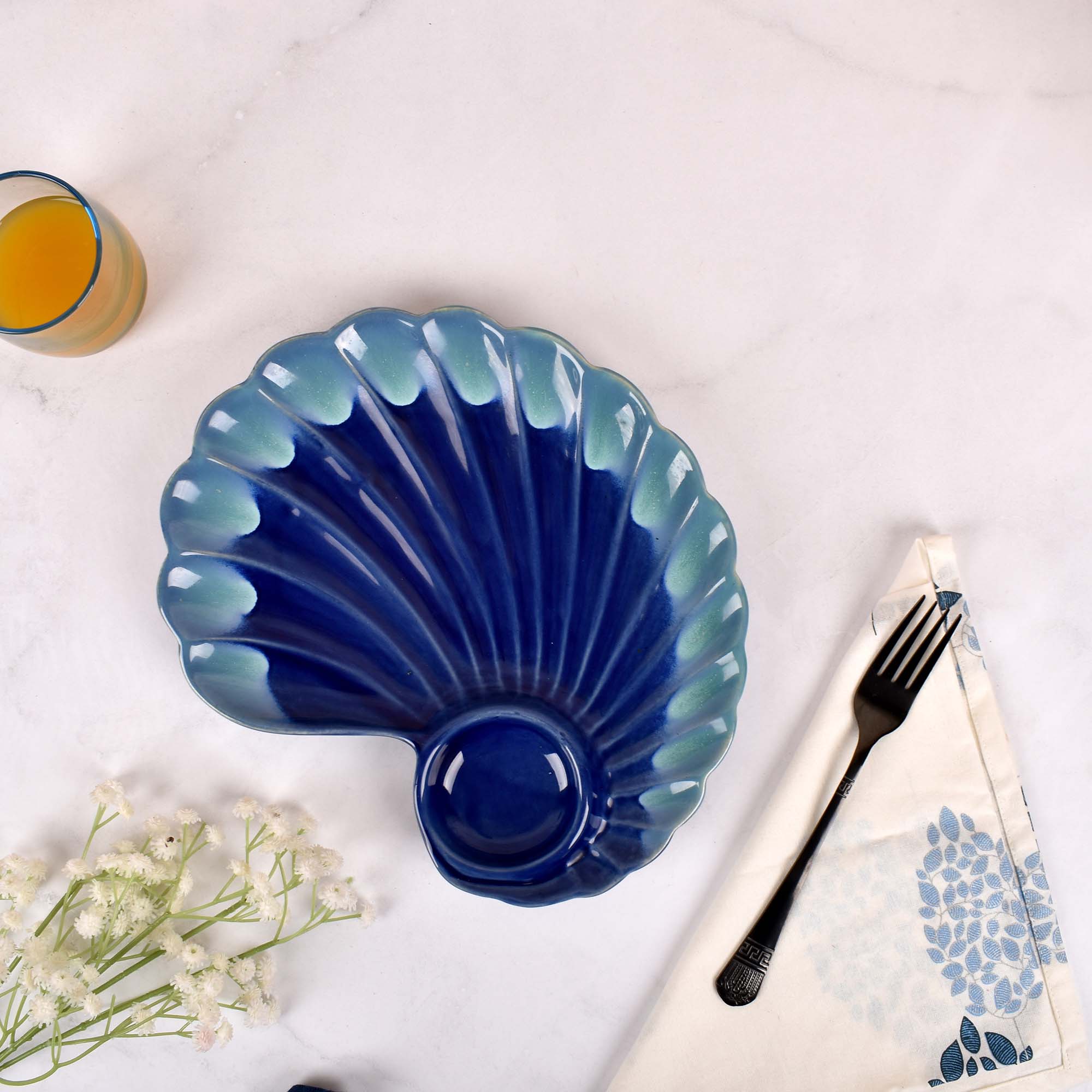 COD availablePresent your staters on something that is just as special as the moment itself. This precisely handcrafted Dual Tone Shell Platter features a deep blue glaze with sky-blue edges that create depth in every curvature. The result? A colour palette that feels both class and rich, perfect for modern spaces that are earthy but not quite rustic. Not only does its flowing leaf-like form add charm to the dining set, but it also offers the perfect amount of space to serve dry snacks, sweets, cookies, or fruit. This platter is going to make your bites worthy of styling whether you're hosting guests or indulging in quiet nights.