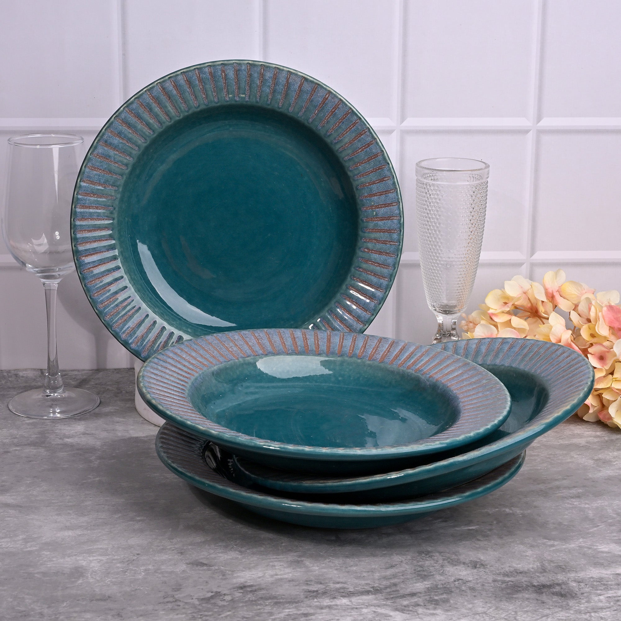 Elegant Aqua Blue Ceramic Snack Plate Set of 4 (9.5 inch)