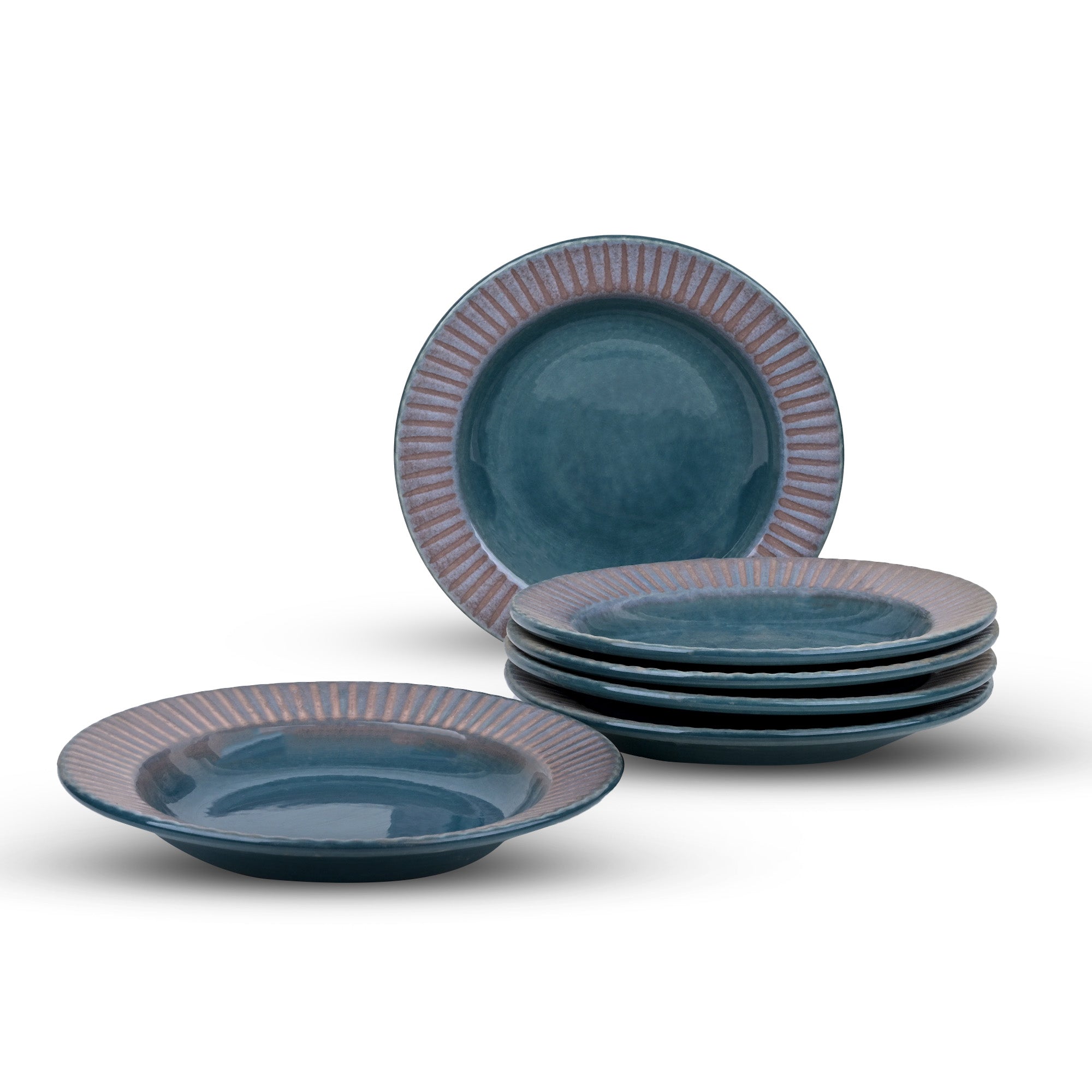 Elegant Aqua Blue Ceramic Snack Plate Set of 6 (9.5 inch)
