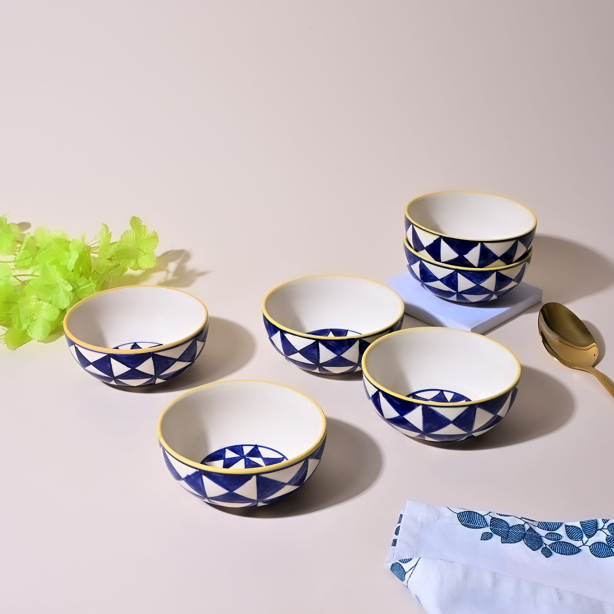COD availableAdd a touch of charm to your table with this Elegant Artisan Handcrafted Bowl. This bowl features a bold hand-painted geometric pattern in deep indigo and white, combining artful tradition with current trends. The bright yellow rim completes this stunning bowl, making every meal seem table ready. This bowl is handmade by skilled hands in a high-quality durable ceramic, strong enough for everyday use. It’s also beautiful enough to stand out at your social gatherings. It will be the star of the party whether you use it for snacks, fruits or desserts. This bowl is microwave-safe and easy to clean!