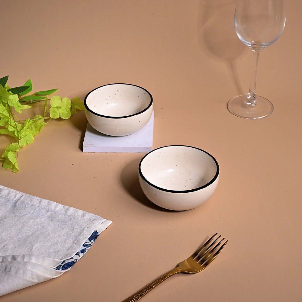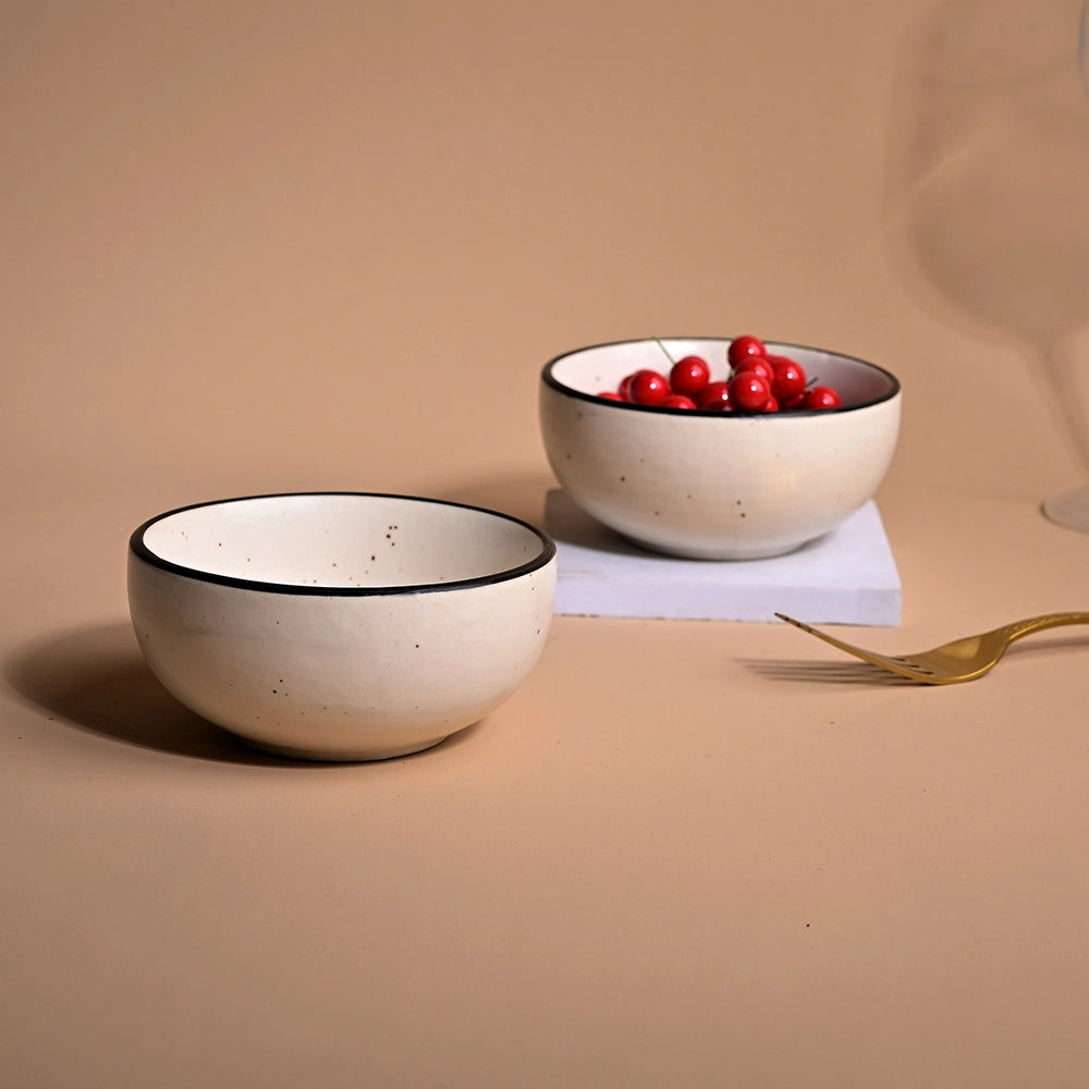 COD availableHighlight your desserts, snacks, and fruits in this Elegant Black Matte Finish Ceramic Bowl. The soft cream colour will make the food look fresh and bright. It is made from high-quality ceramic, so it will not only look good but also last for a long time. The great part is the black rims and little black dots above which makes this bowl simple yet modern. These bowls can be used for serving sweets, dry snacks, and packed salads. It will always match your style whether it is for the guests or evening tea snacks!