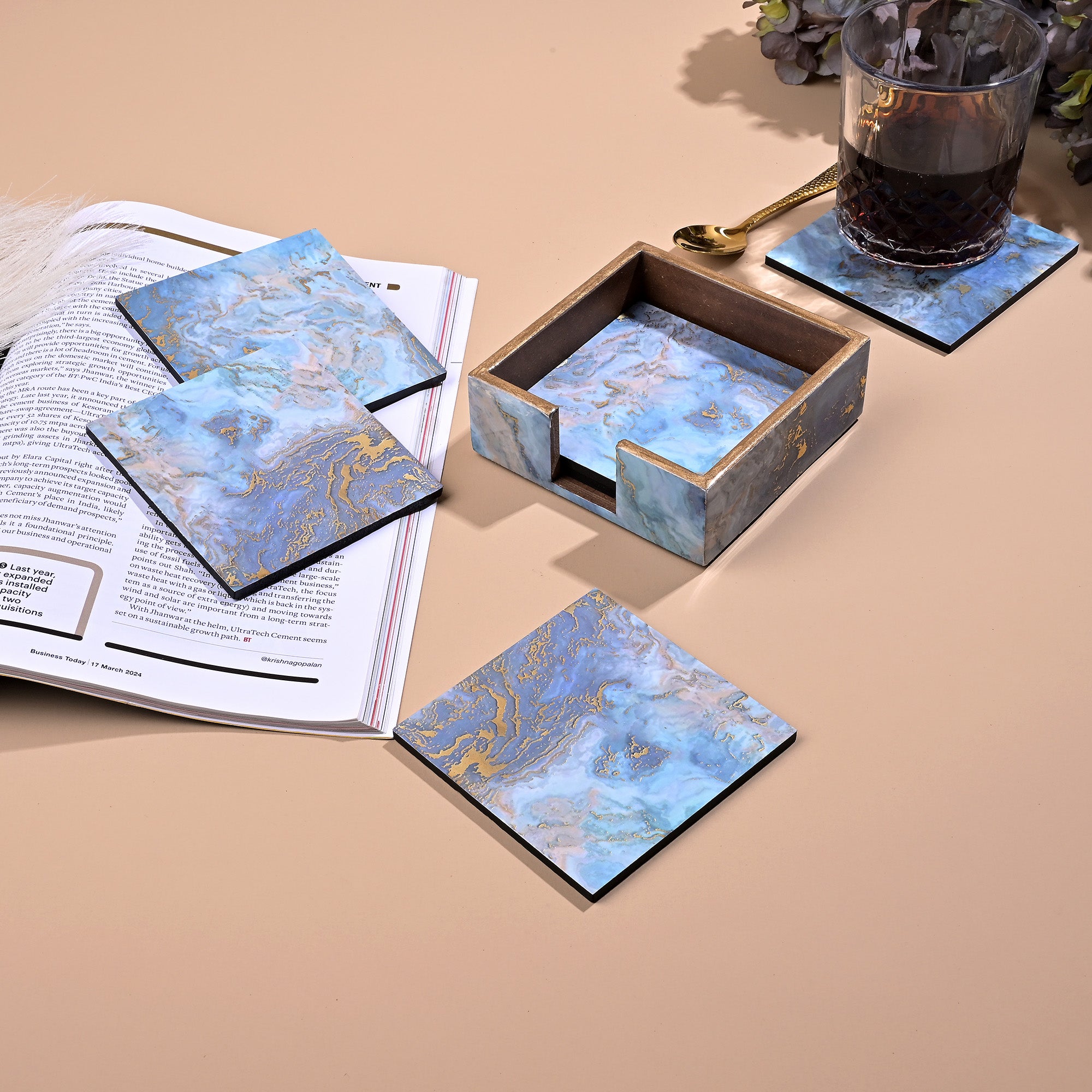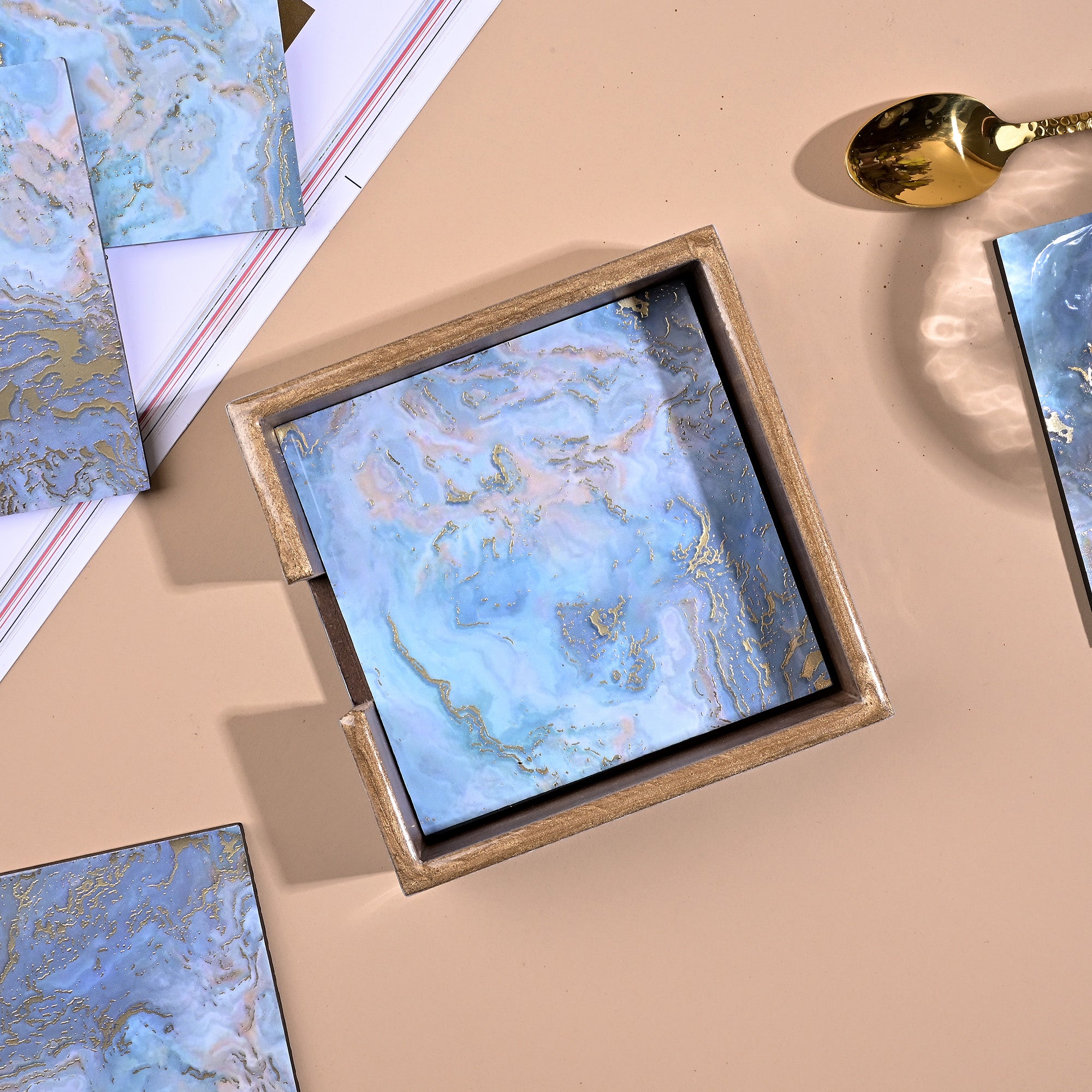 Elegant Blue Wooden Table Coasters (Set of 6)