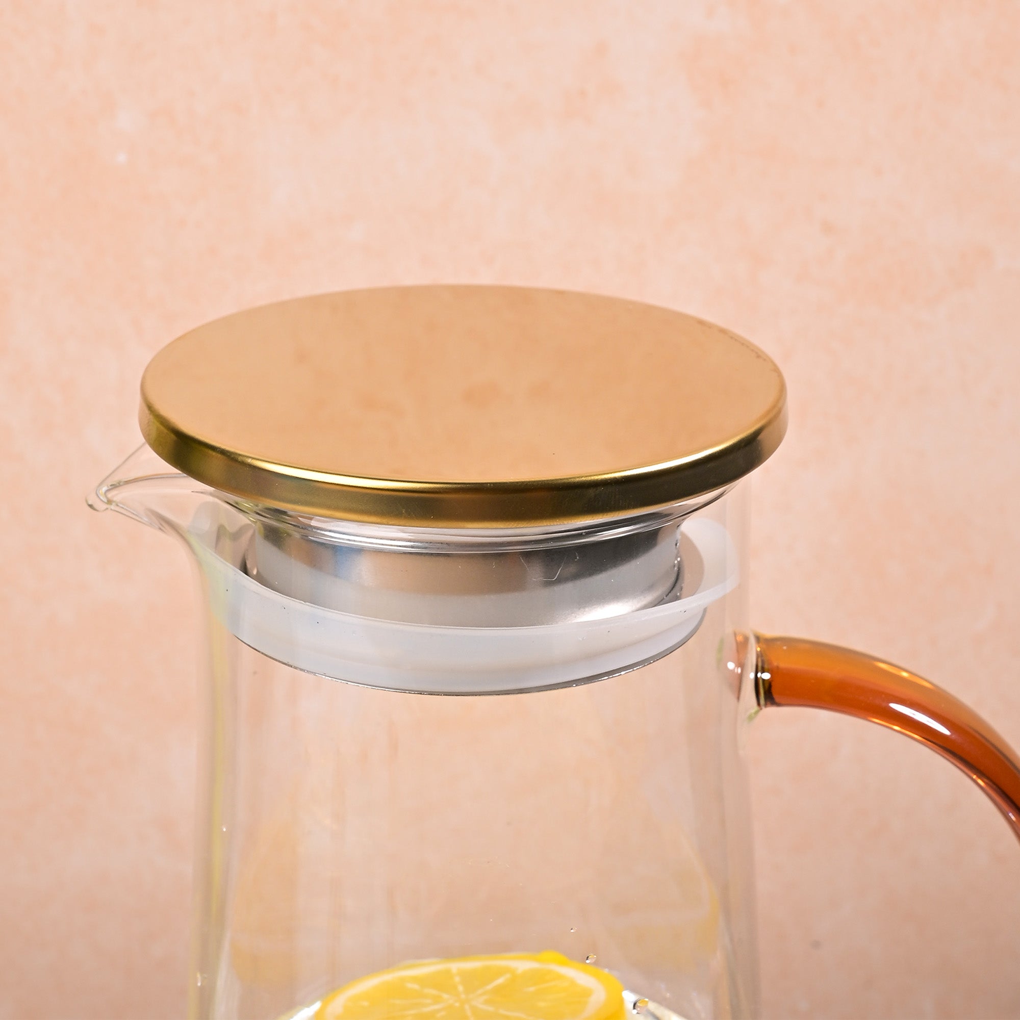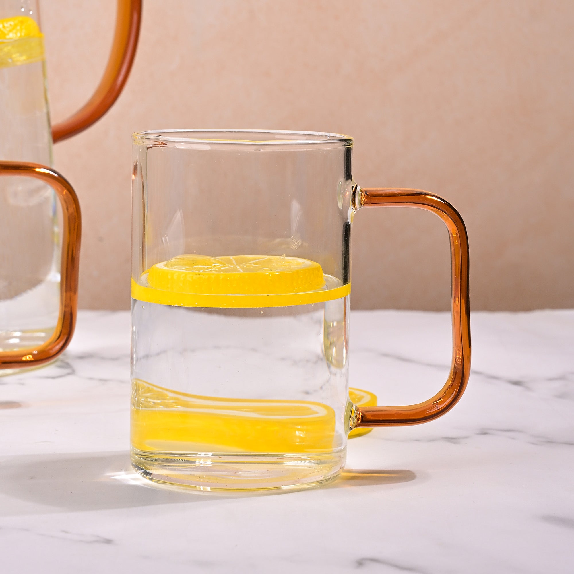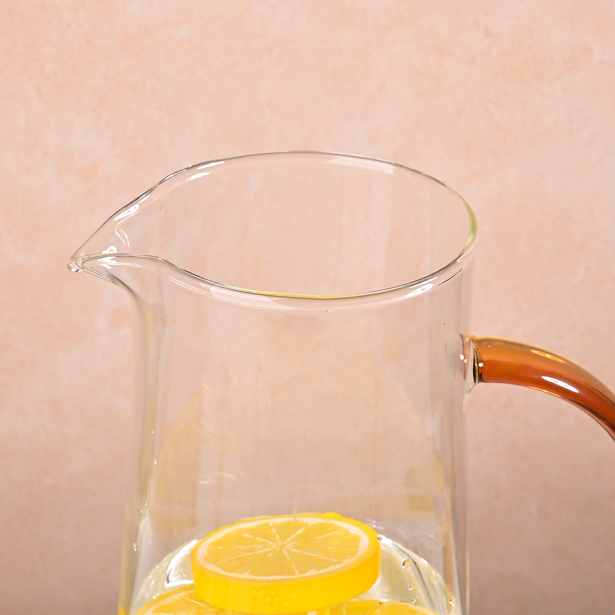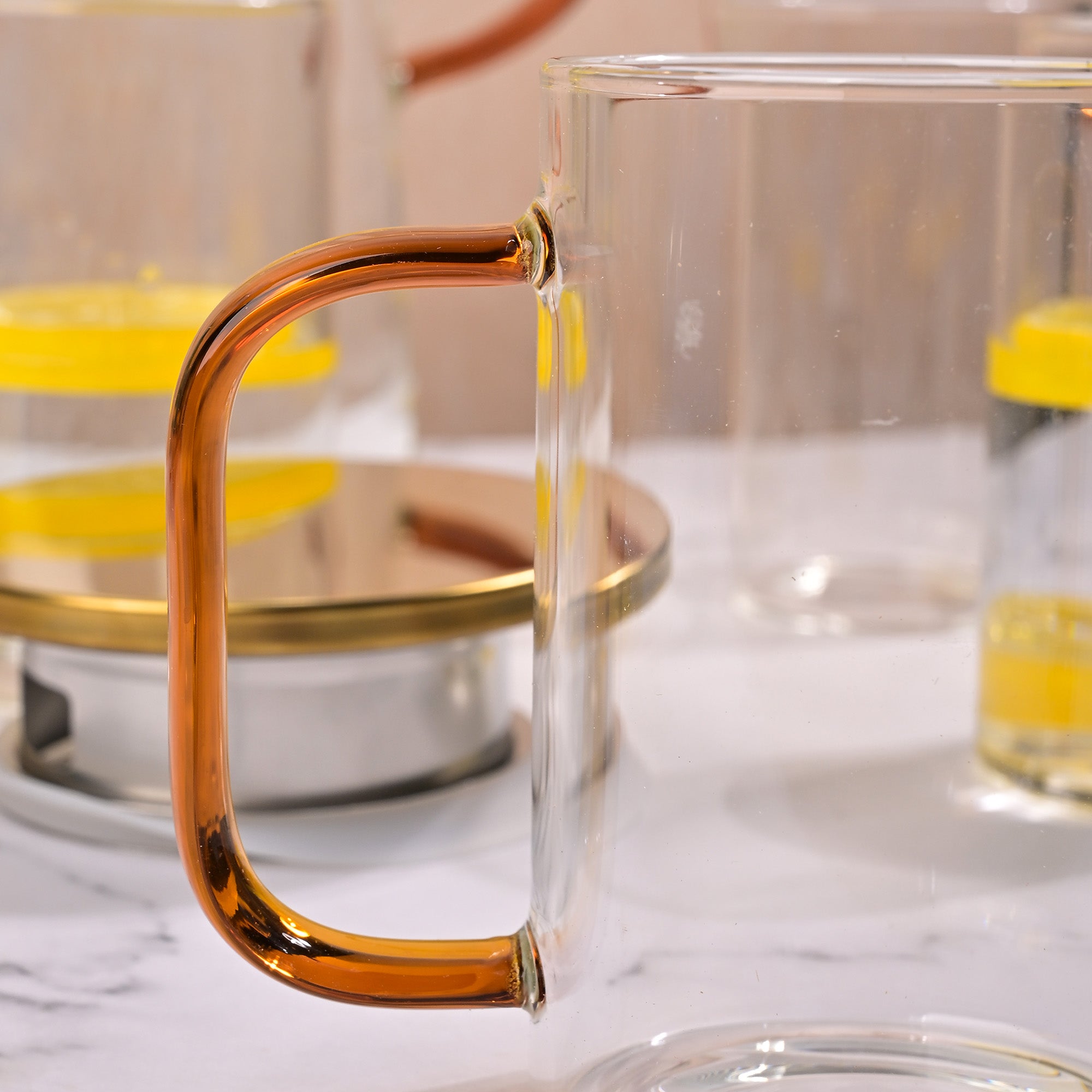 COD availableBrighten up your table with this 'Elegant Glass Pitcher and Mug Set' with tray featuring bold amber handles and a matching lid. Its sleek, cylindrical shape is perfect for serving water, iced tea, or juice, while the clear glass beautifully displays colourful drinks. The amber handles add a splash of colour and ensure a comfortable grip, making this carafe both practical and eye-catching. Perfect for brunches or casual gatherings, it lets you pour with style and makes every drink feel special.