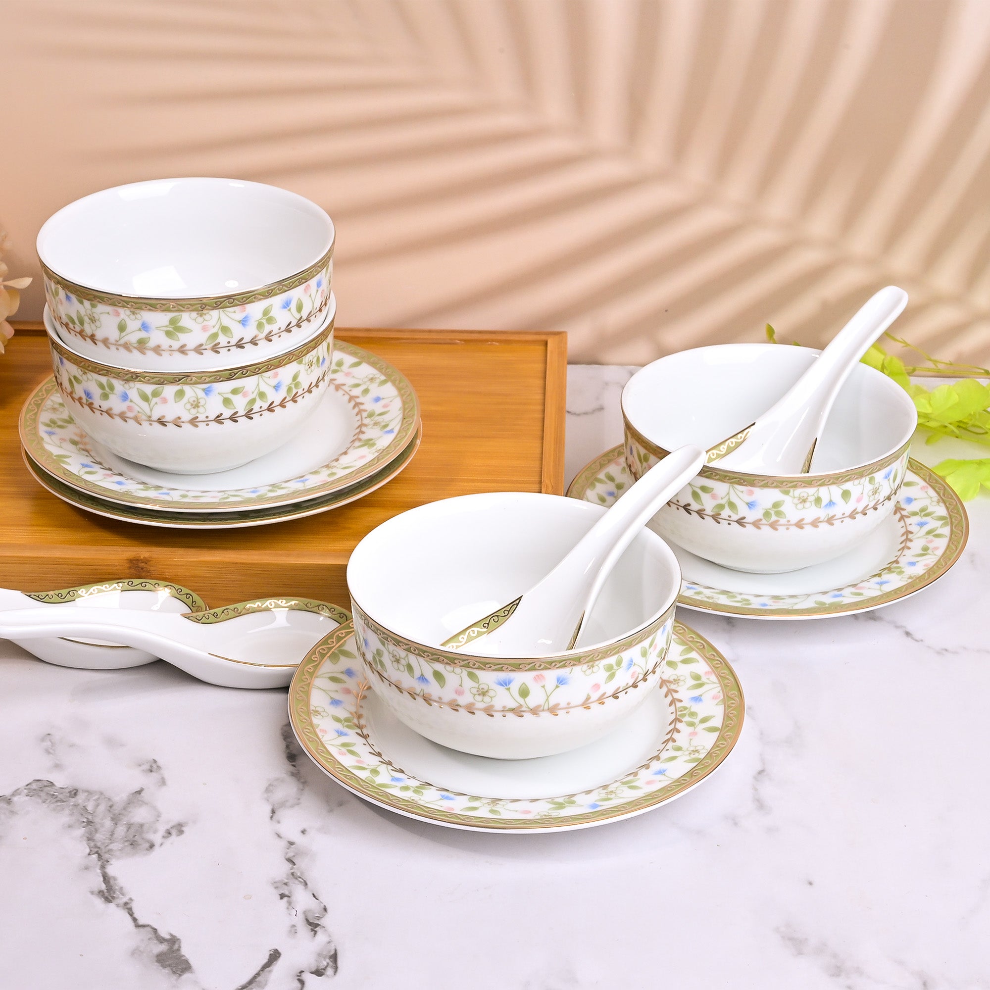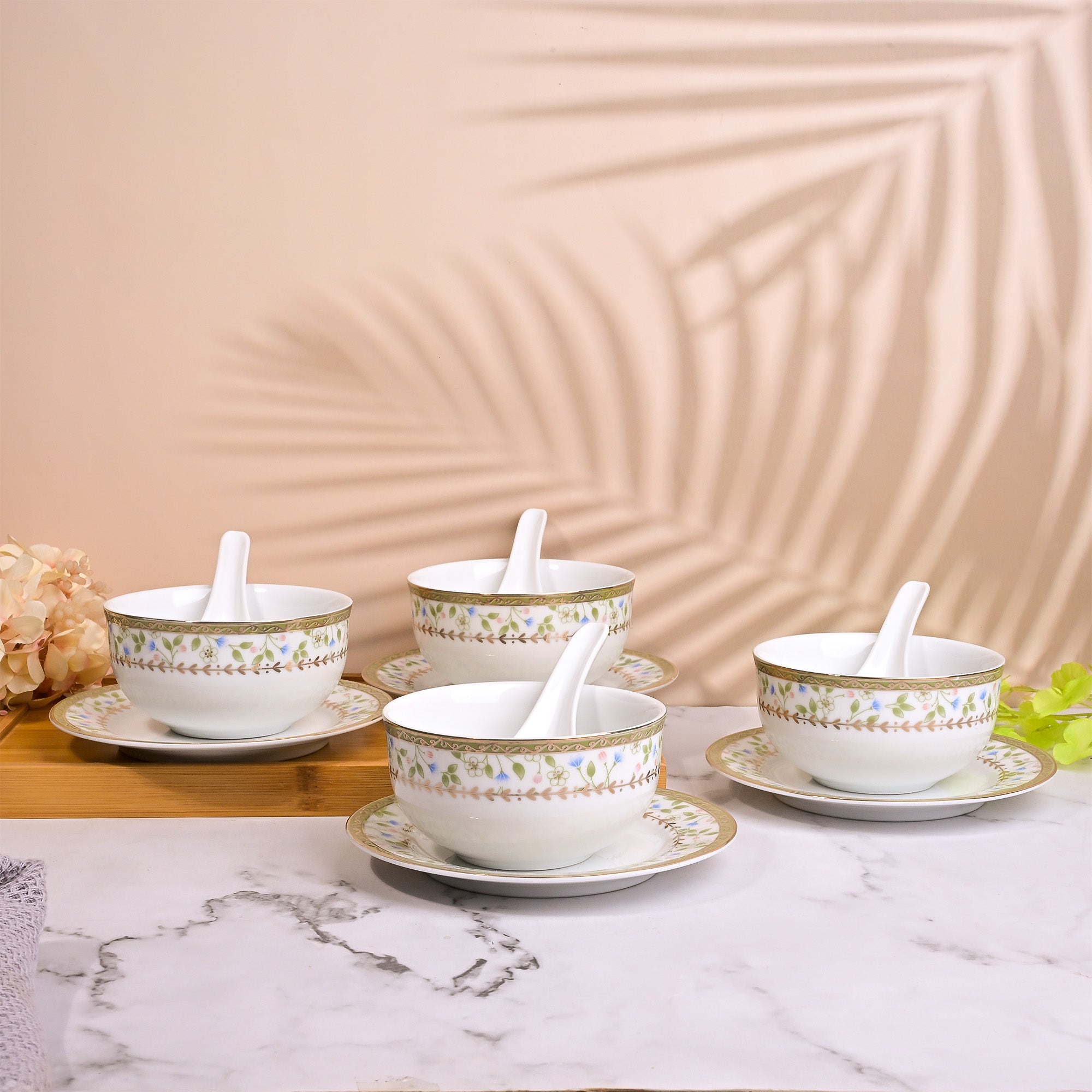 Elegant Porcelain Bowl and Spoon (Set of 4)