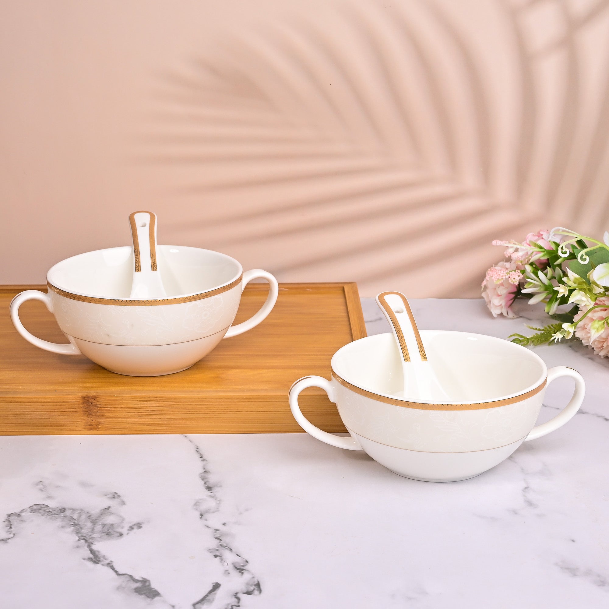 COD availableEnjoying soup is great, but enjoying it in a bowl that feels comfortable to hold? Even better. Meet our Elegant Porcelain White Bowl with Spoon Set thoughtfully designed with an easy-to-hold handle and a charming design. Made from durable porcelain, this set is built to last. The golden detailing on the rim and spoon handle adds a classy touch that instantly elevates your table. Perfect for soup, noodles, or even a quick microwave mug cake, this bowl is truly multi-functional. So go ahead, bring home this practical beauty and make everyday moments feel a little more special.