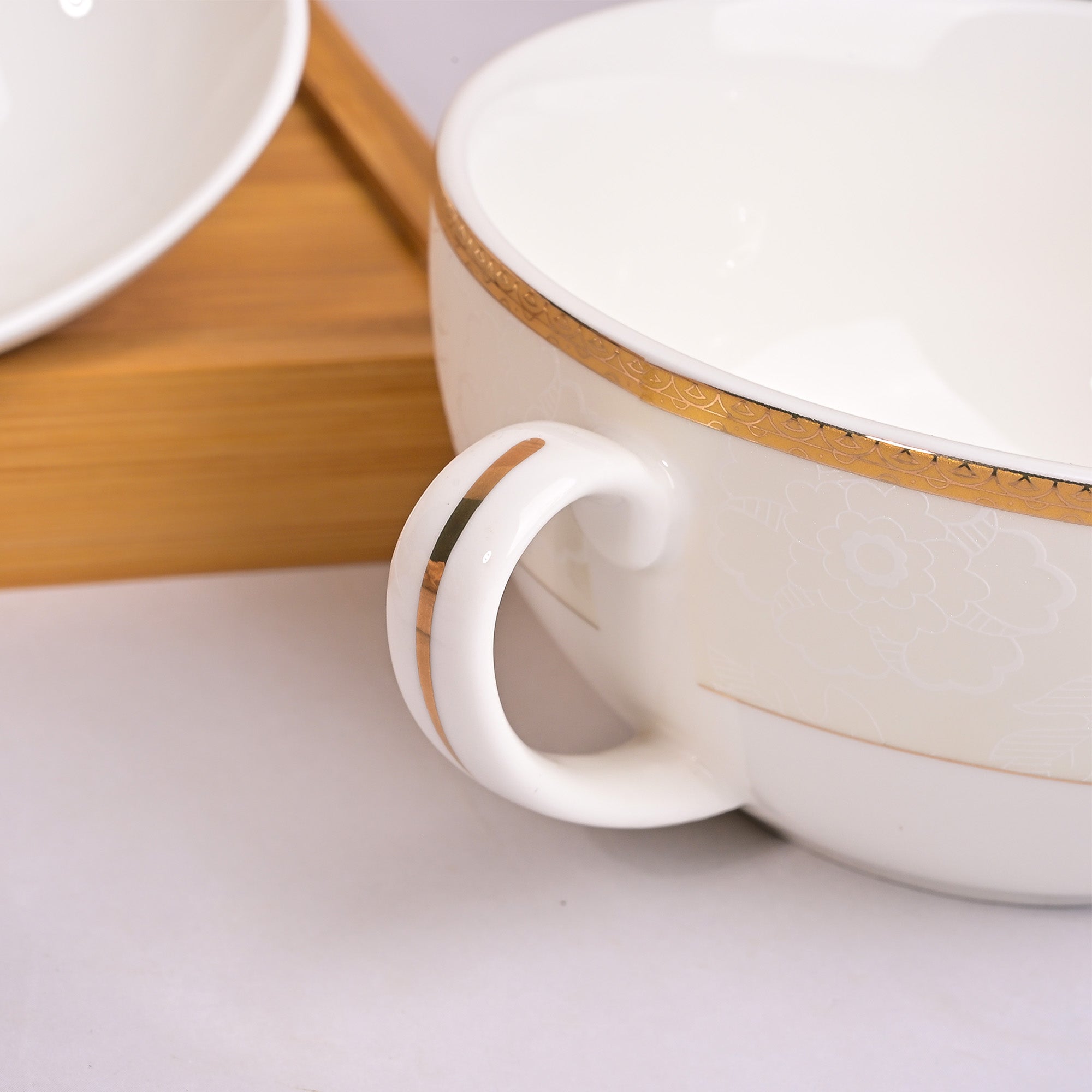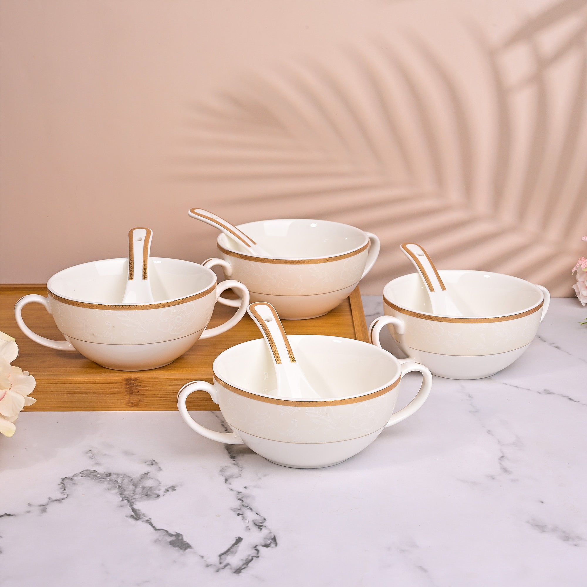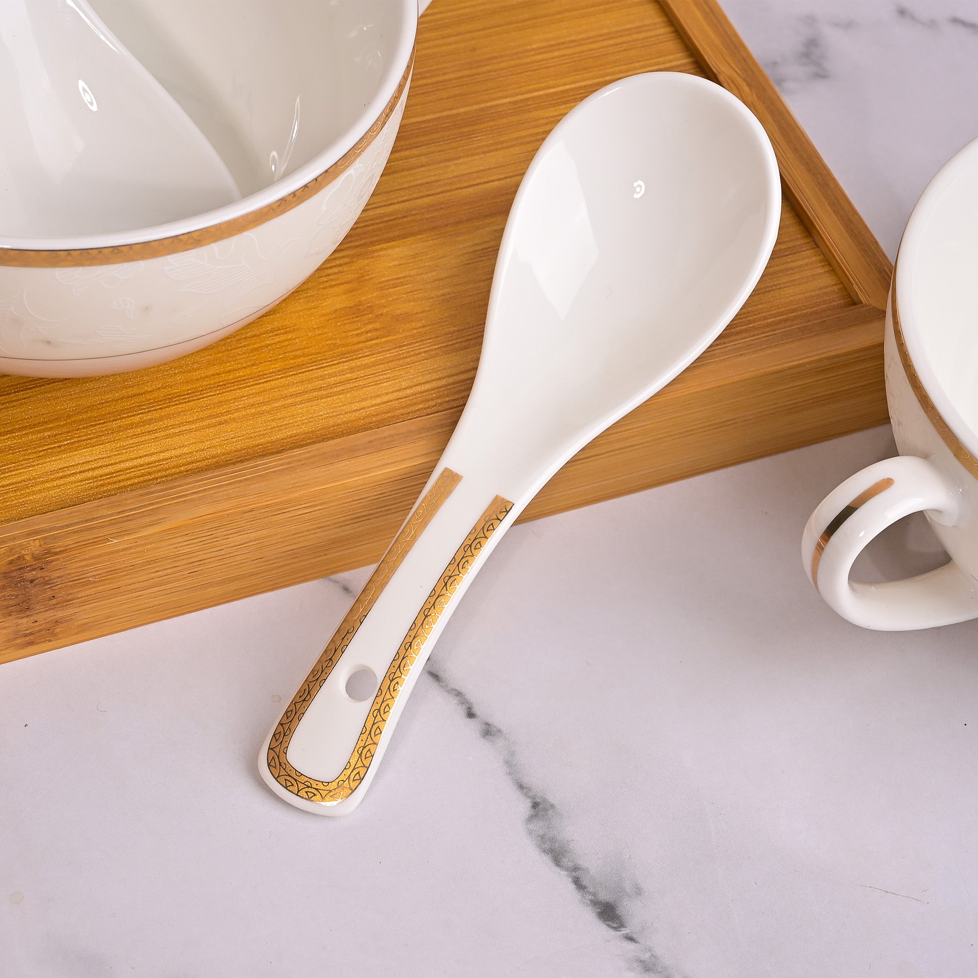 COD availableEnjoying soup is great, but enjoying it in a bowl that feels comfortable to hold? Even better. Meet our Elegant Porcelain White Bowl with Spoon Set thoughtfully designed with an easy-to-hold handle and a charming design. Made from durable porcelain, this set is built to last. The golden detailing on the rim and spoon handle adds a classy touch that instantly elevates your table. Perfect for soup, noodles, or even a quick microwave mug cake, this bowl is truly multi-functional. So go ahead, bring home this practical beauty and make everyday moments feel a little more special.