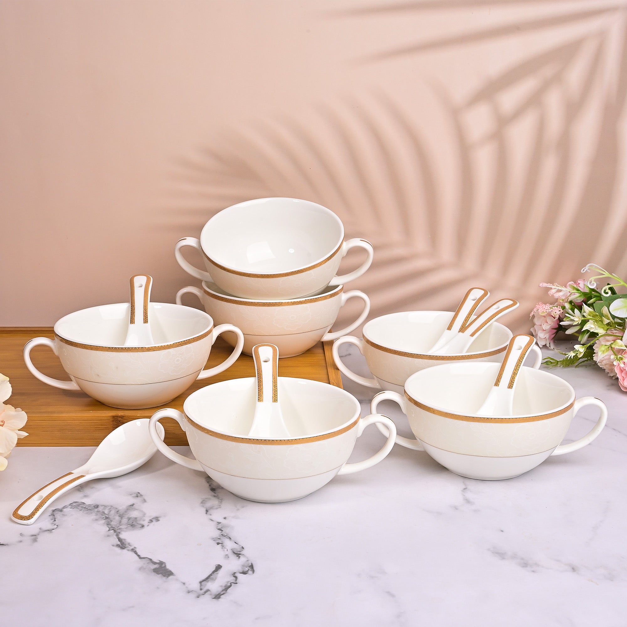 Elegant Porcelain White Bowl with Spoon (Set of 6)