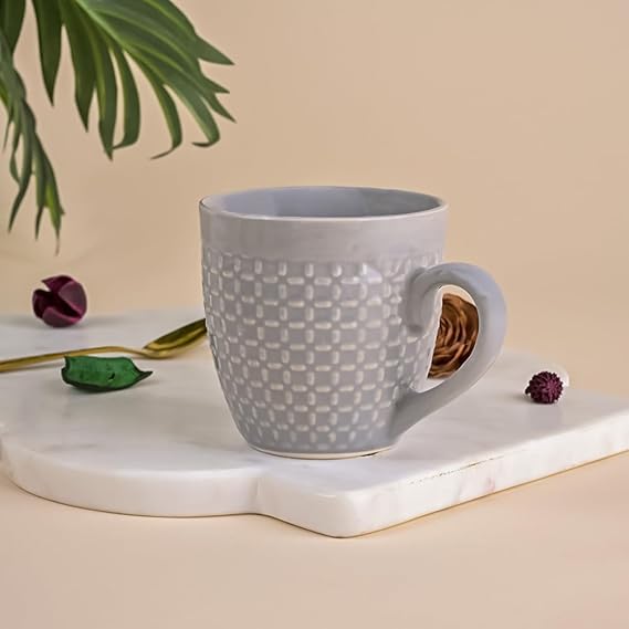 Elegant Sculpted Grey Ceramic Tea Cup (Set of 2)
