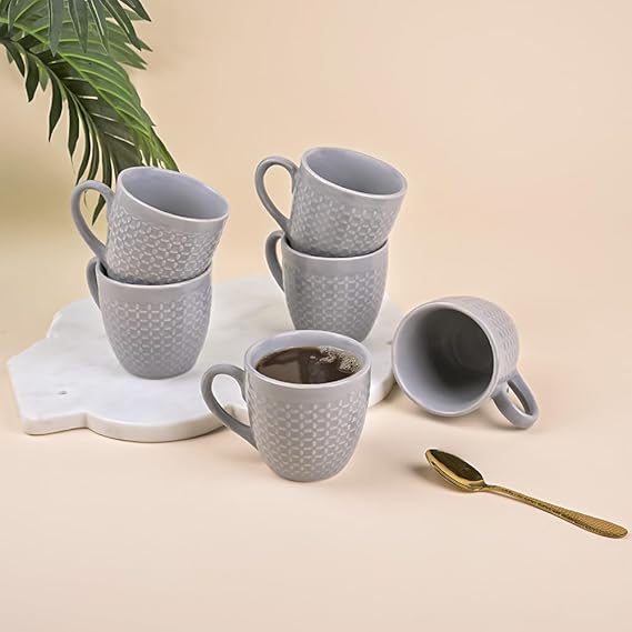 Elegant Sculpted Grey Ceramic Tea Cup (Set of 4)