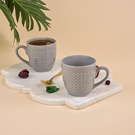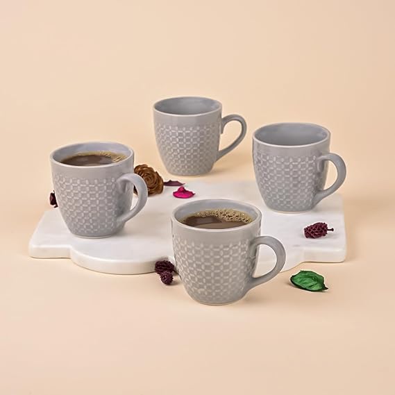 Elegant Sculpted Grey Ceramic Tea Cup (Set of 6)